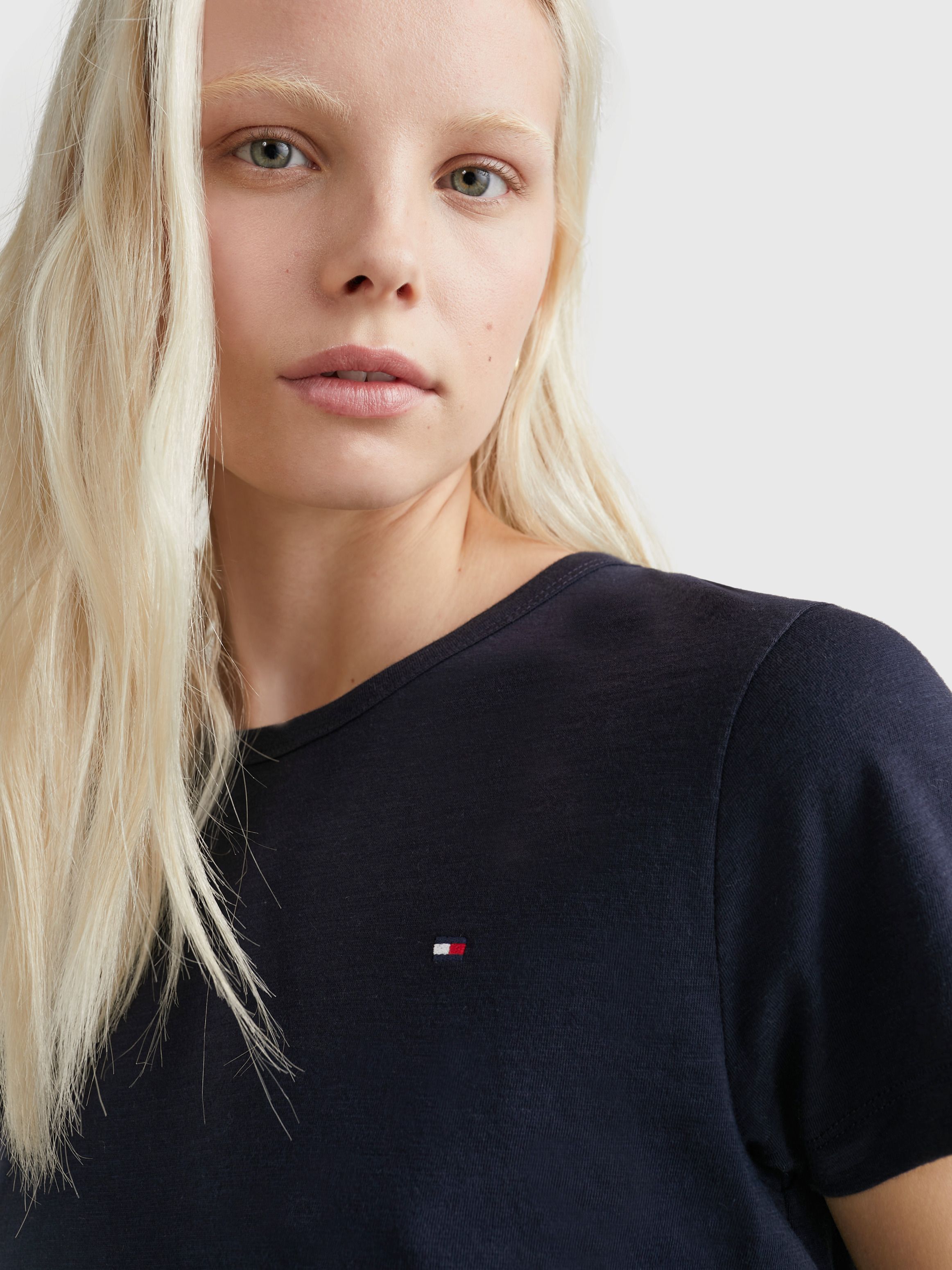 • Pure organic cotton slub jersey • Crew neck • Tommy Hilfiger branding • Tommy Hilfiger flag embroidery on chest