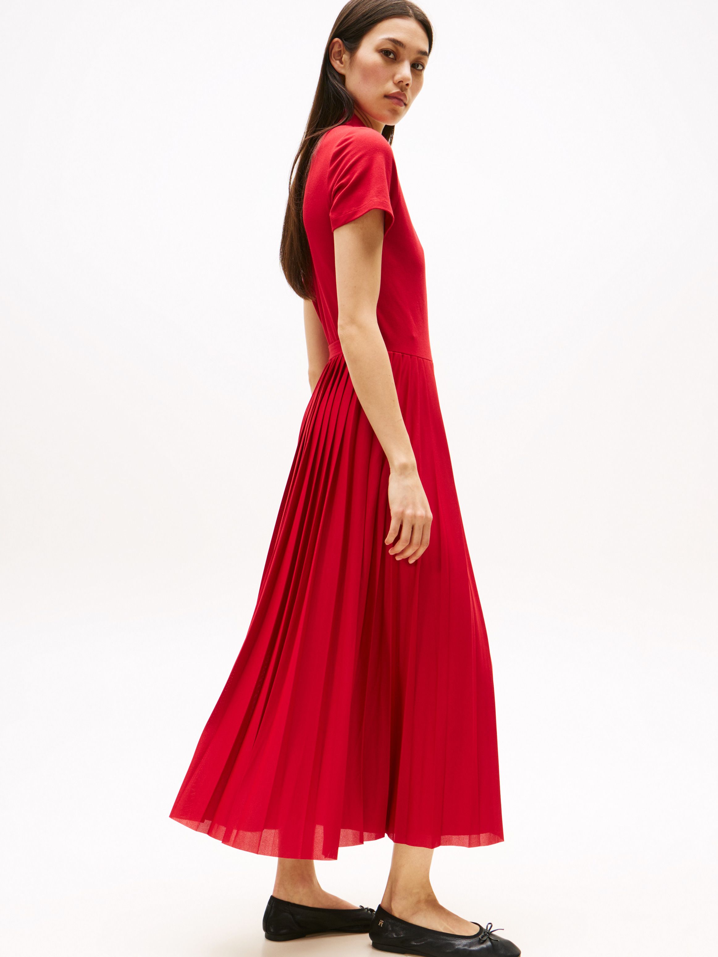The fusion of styles in this polo dress creates a flowing silhouette that can adapt to a formal or relaxed setting.