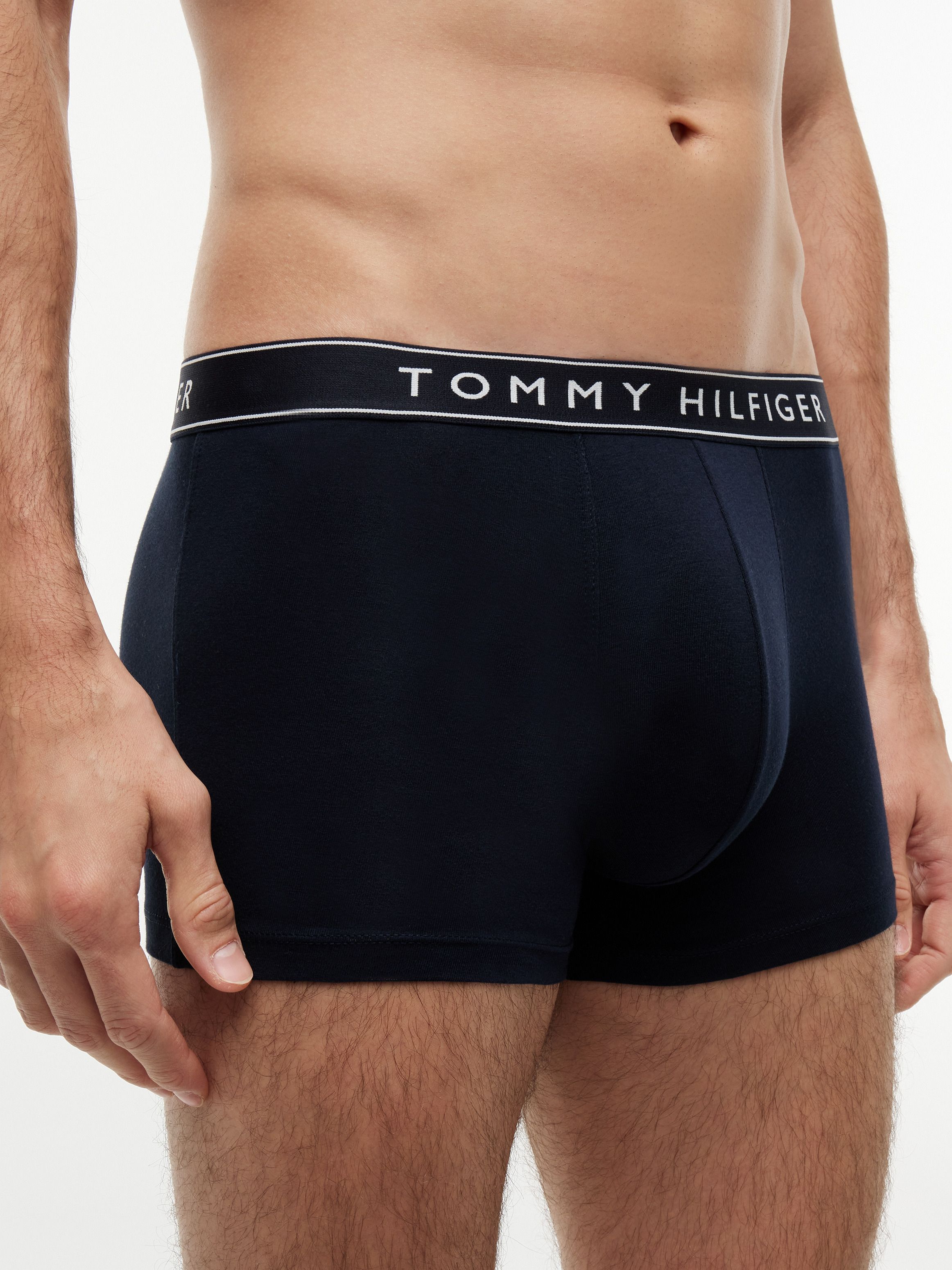 • Stretch cotton • 3-pack • Tommy Hilfiger repeat logo elasticated waistband • Tommy Hilfiger branding