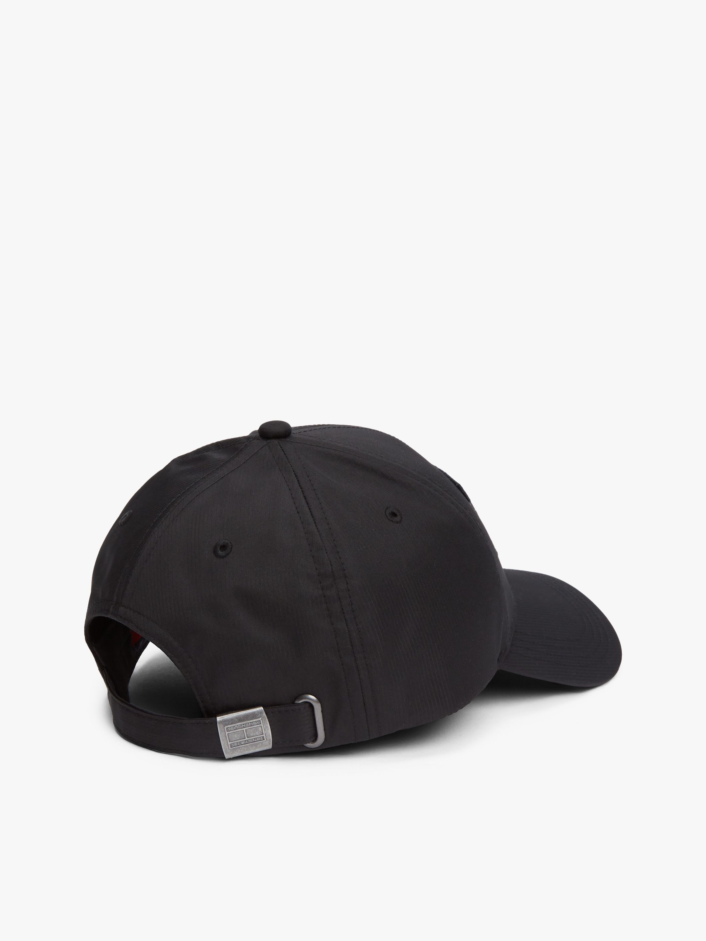 • Ripstop fabric • Textured finish • Button on crown • Ventilation eyelets • Textured stitching on brim • Metal adjuster on back • Tommy badge embossed on adjuster • Oversized Tommy badge on front • Tommy Jeans branding