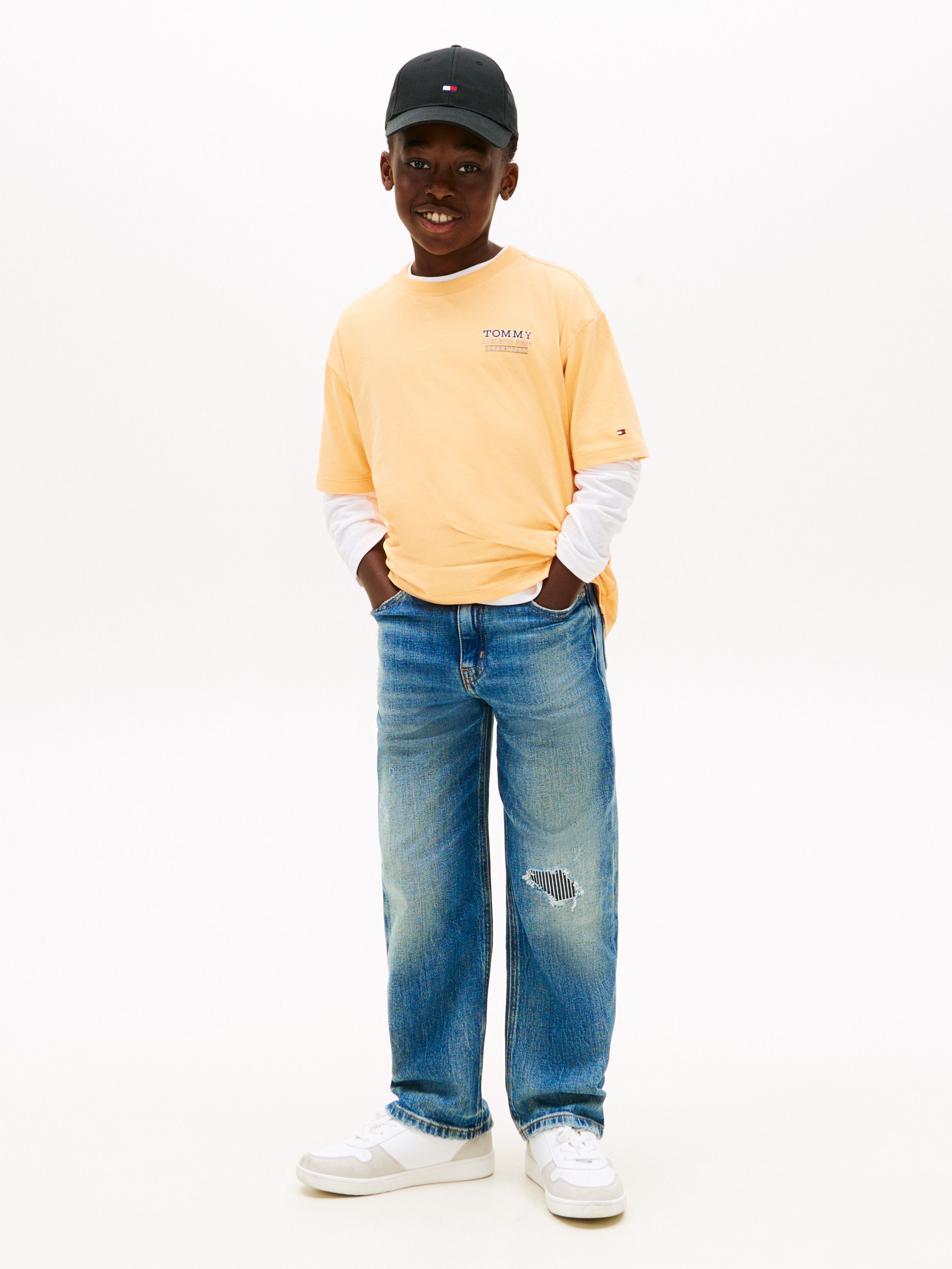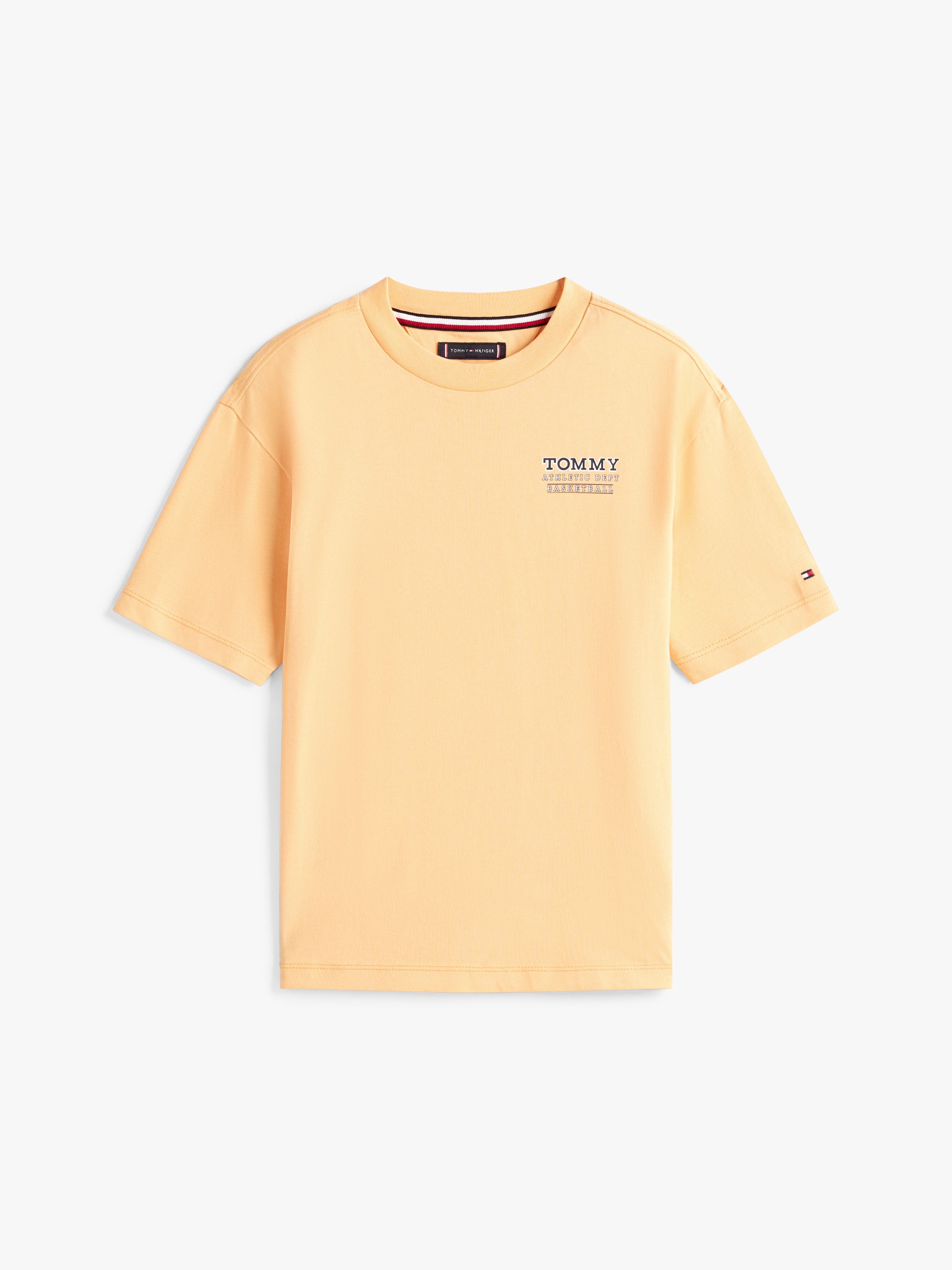 • Pure cotton jersey • Basketball graphic on back • Crew neck • Signature tape inside neckline • Tommy Hilfiger logo on chest • Tommy Hilfiger branding • Tommy Hilfiger flag embroidery on sleeve