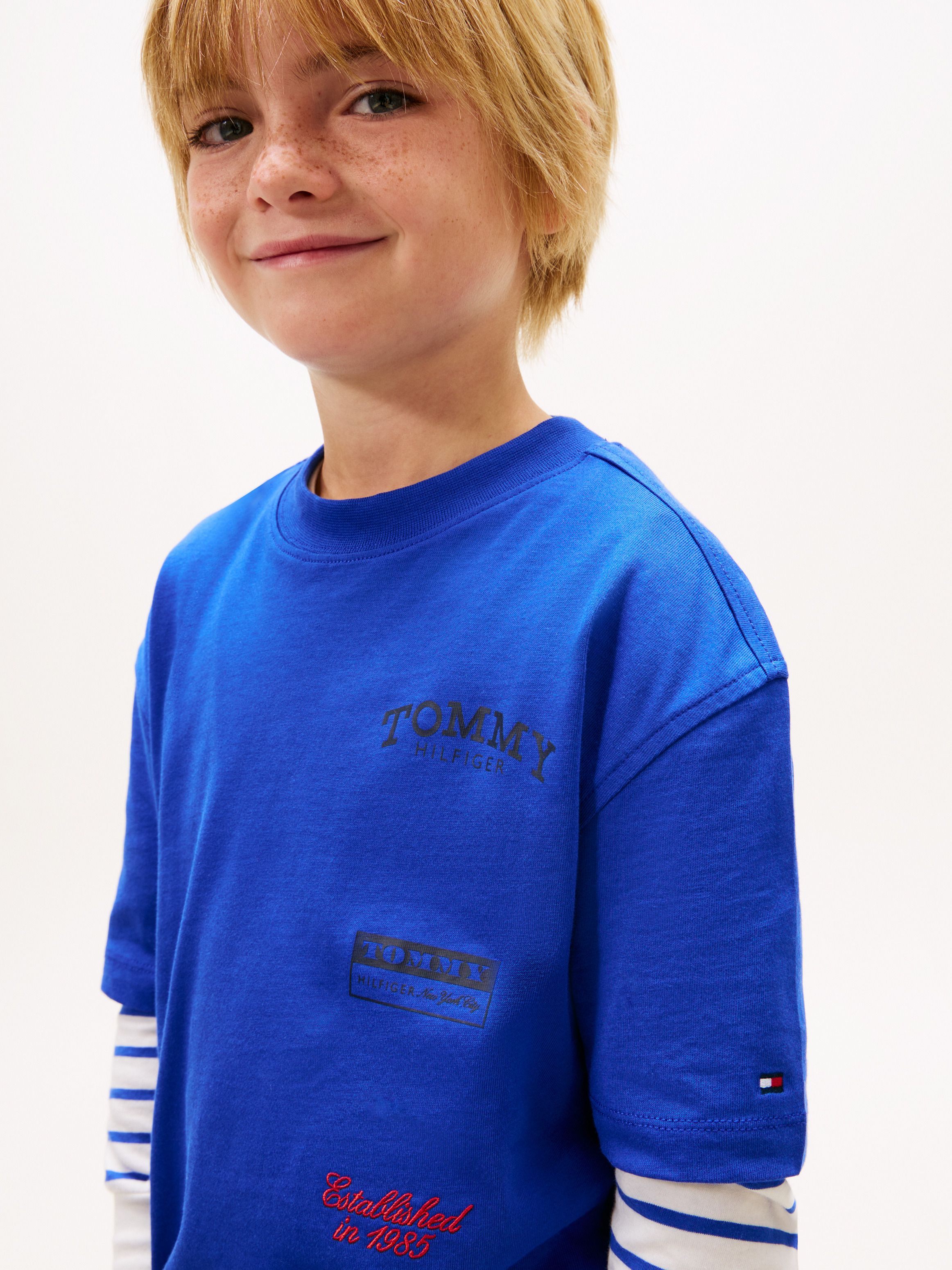• Pure cotton jersey • Silky finish • Crew neck • Tommy Hilfiger multi logo print on front • Tommy Hilfiger outdoors logo on back • Tommy Hilfiger branding • Tommy Hilfiger flag embroidery on sleeve