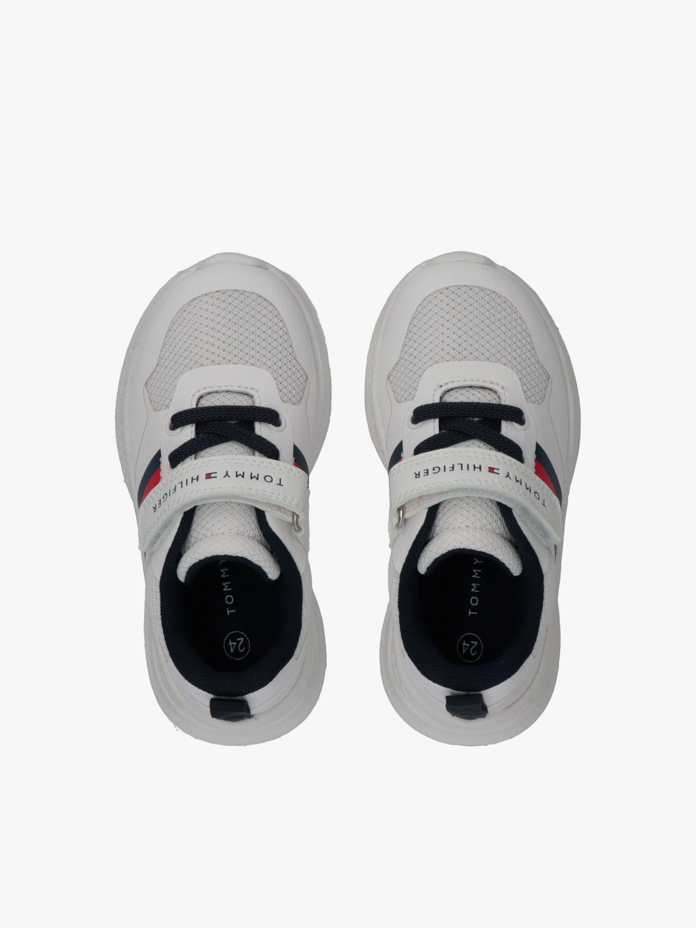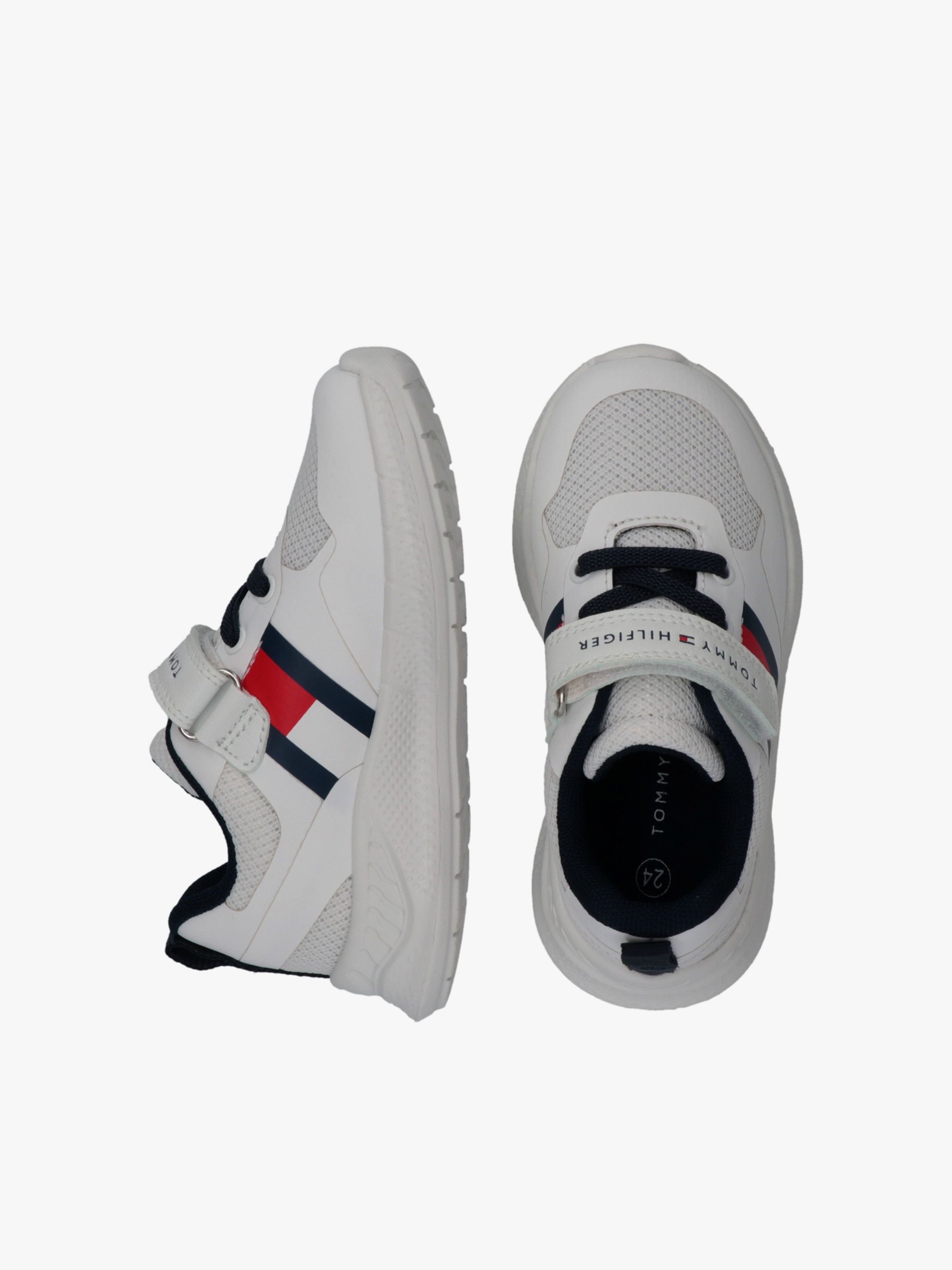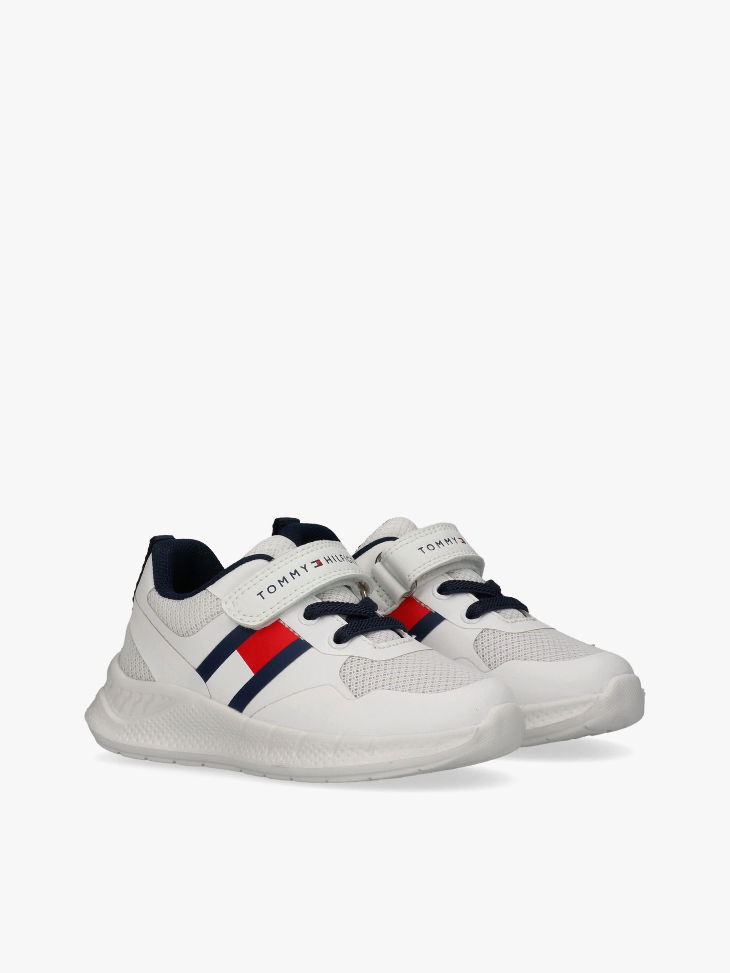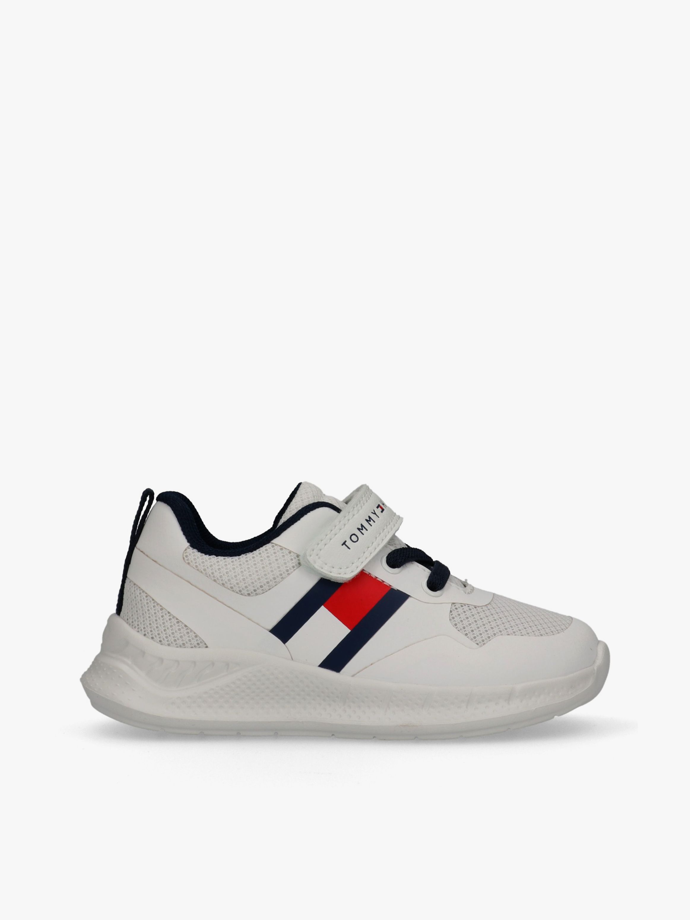 Tommy Hilfiger kids’ sneakers inspired by modern athletic style. The breathable upper is enhanced with the iconic flag detail, while the lightweight running sole delivers comfort and support. Velcro fastening ensures a secure and easy fit for everyday wear.