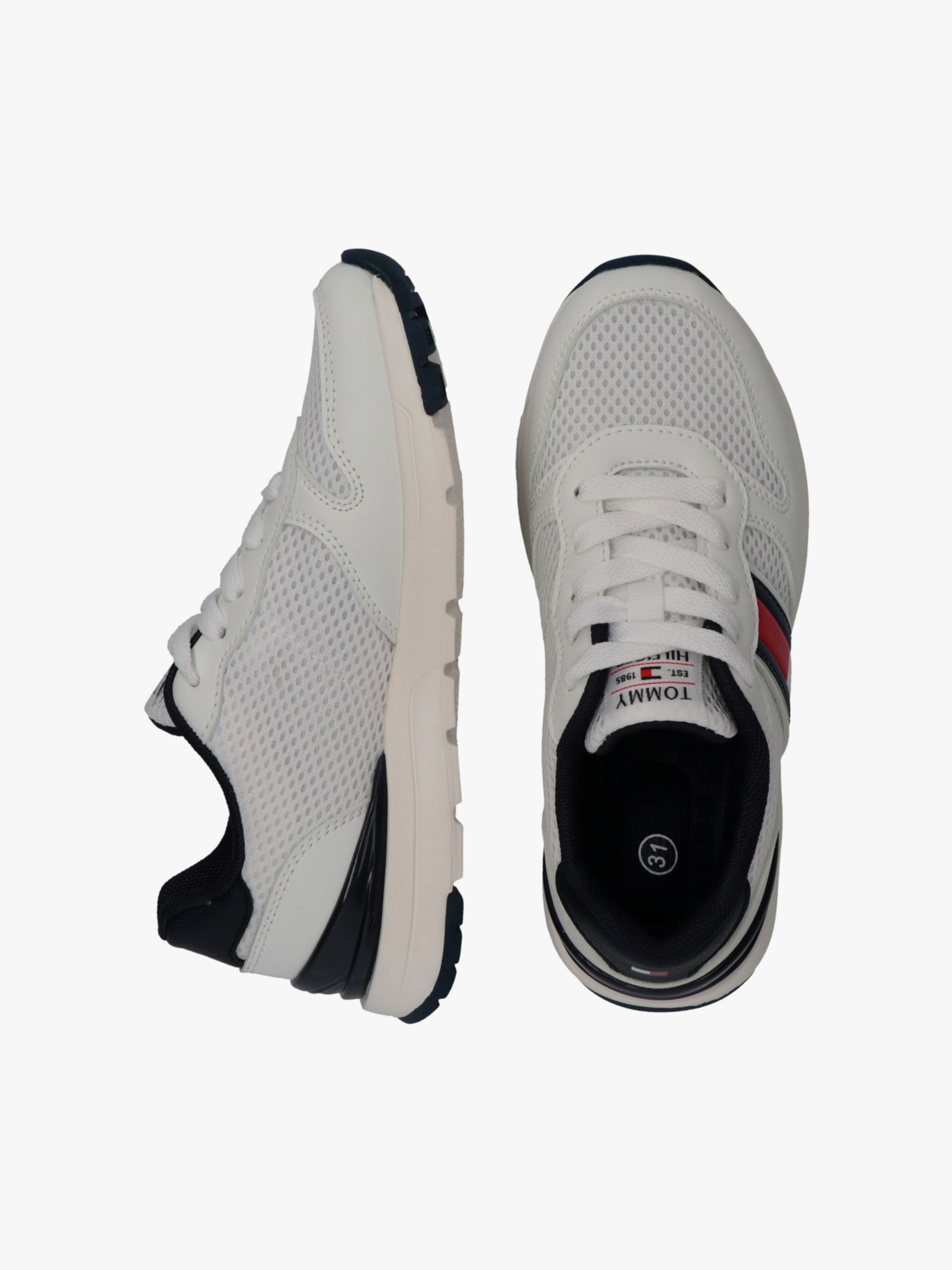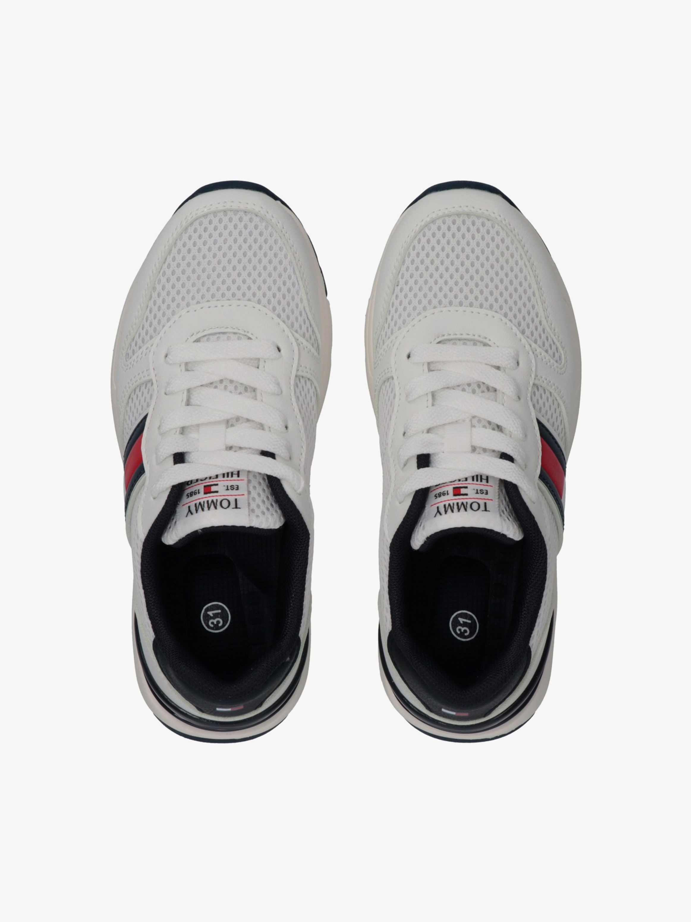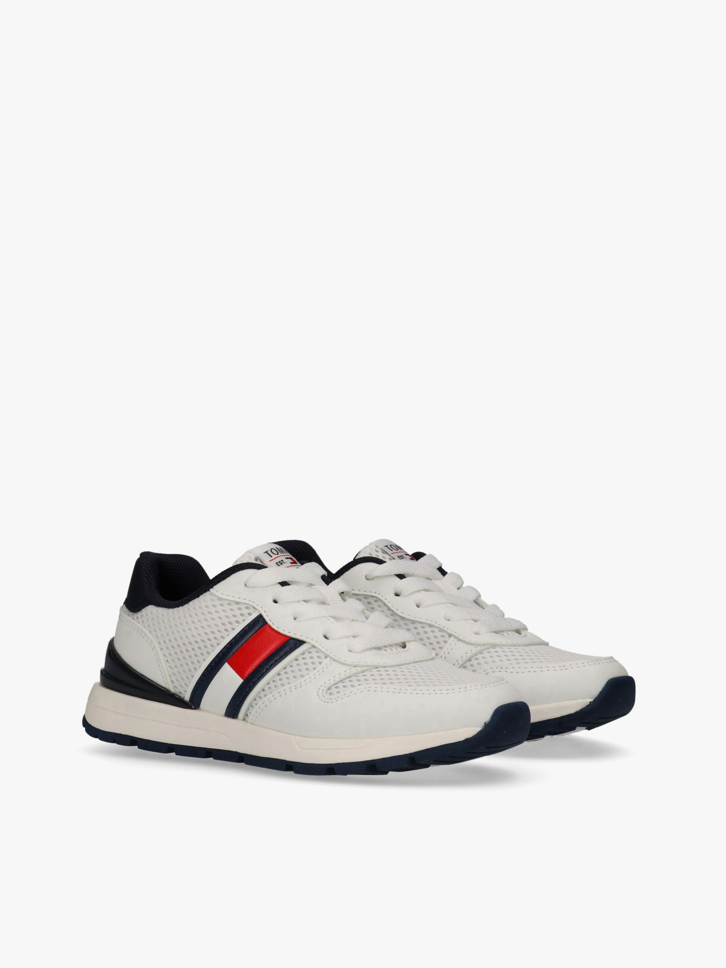 Tommy Hilfiger kids’ running-inspired sneakers designed for everyday comfort and movement. The breathable mesh upper enhances airflow, while iconic flag details add a signature touch. Finished with a cushioned sole and lace-up closure, ideal for active days and casual wear.