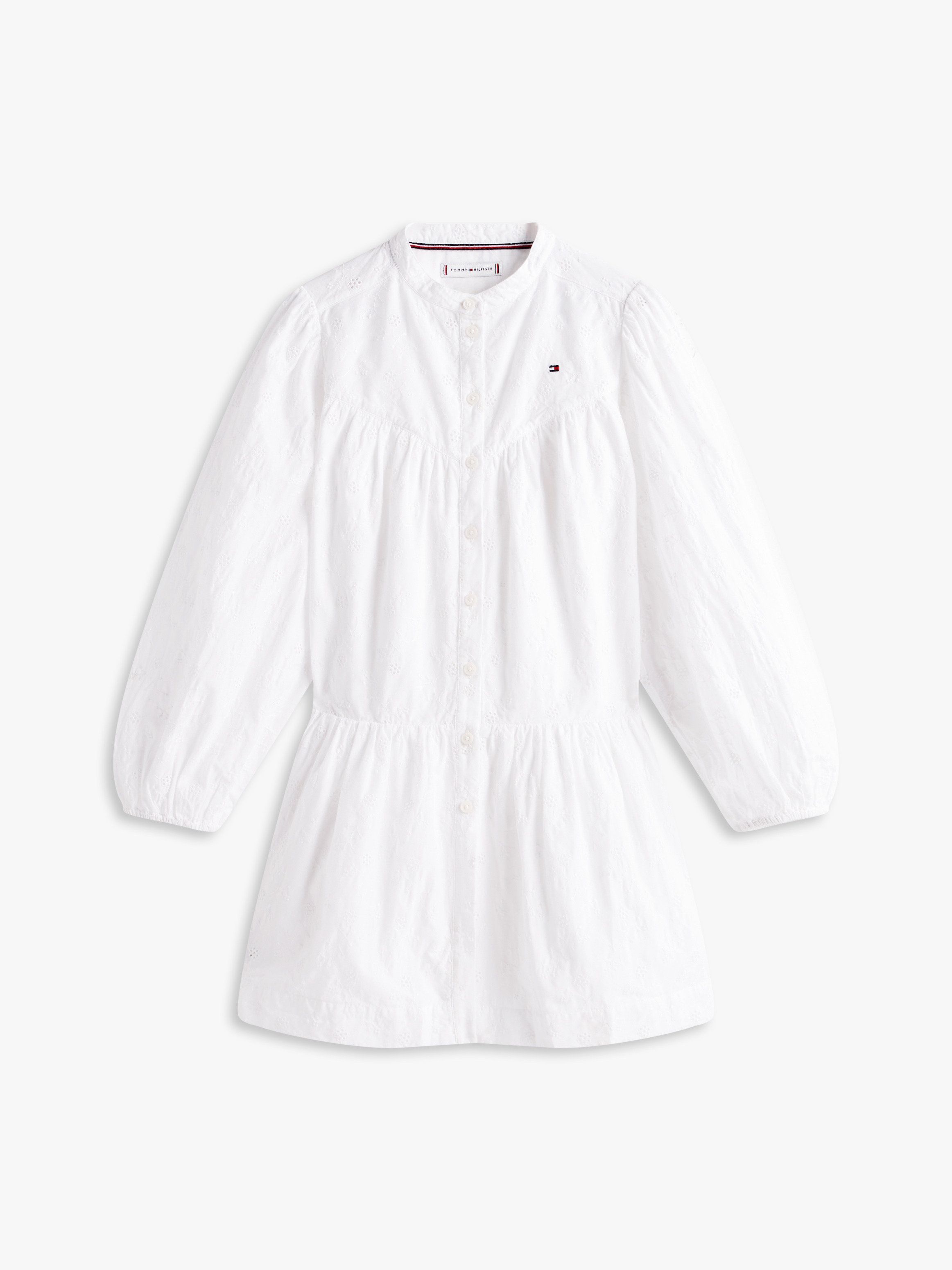 This pure cotton shirt dress is ideal for transitional weather days, with its airy broderie anglaise design and voluminous gathered long sleeves.