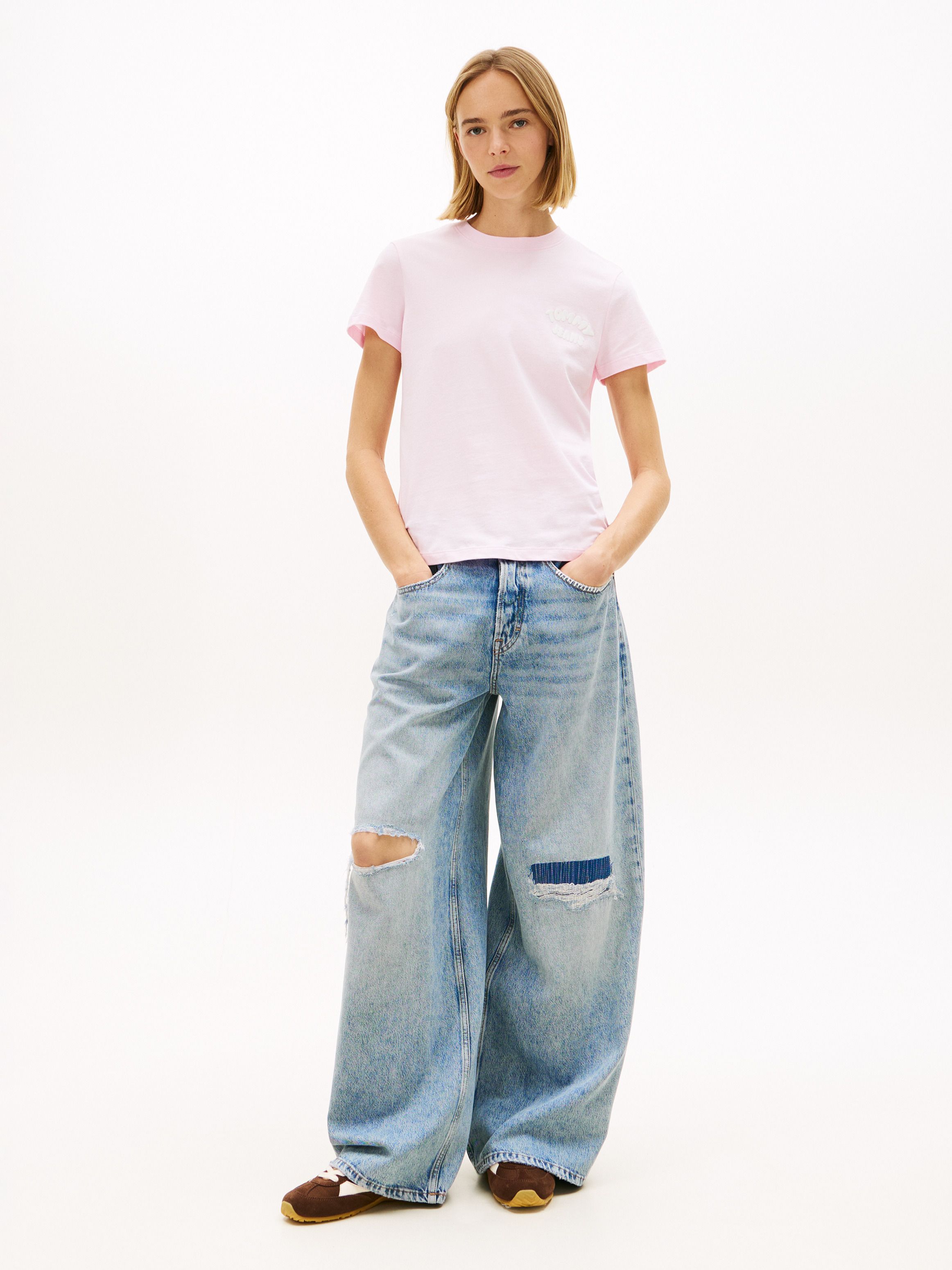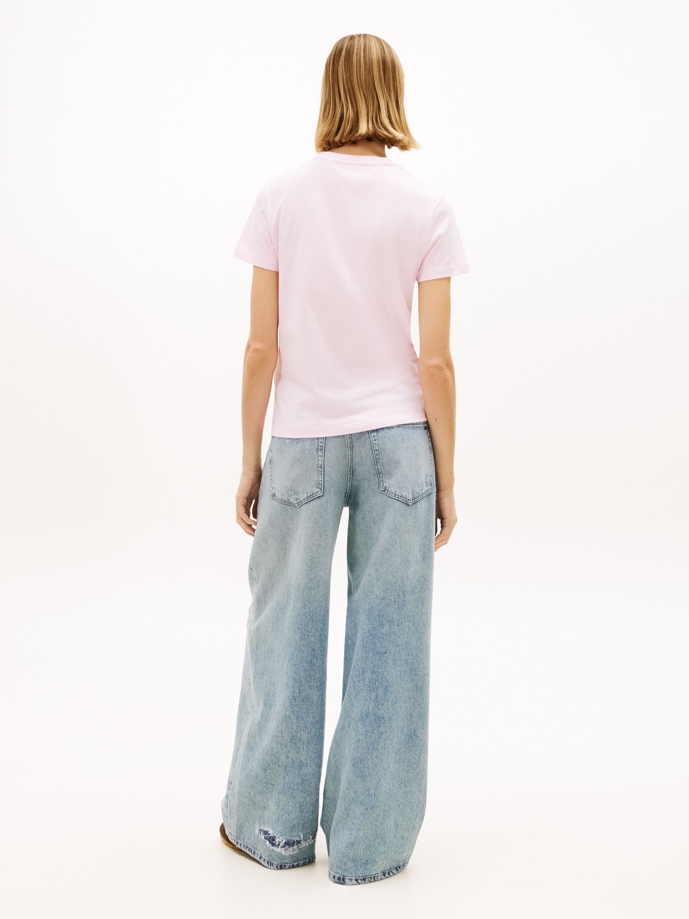 • Pure cotton jersey • Crew neck • Tommy Jeans bubble logo on chest • Tommy badge inside neckline • Tommy Jeans branding • Tommy flag embroidery on sleeve