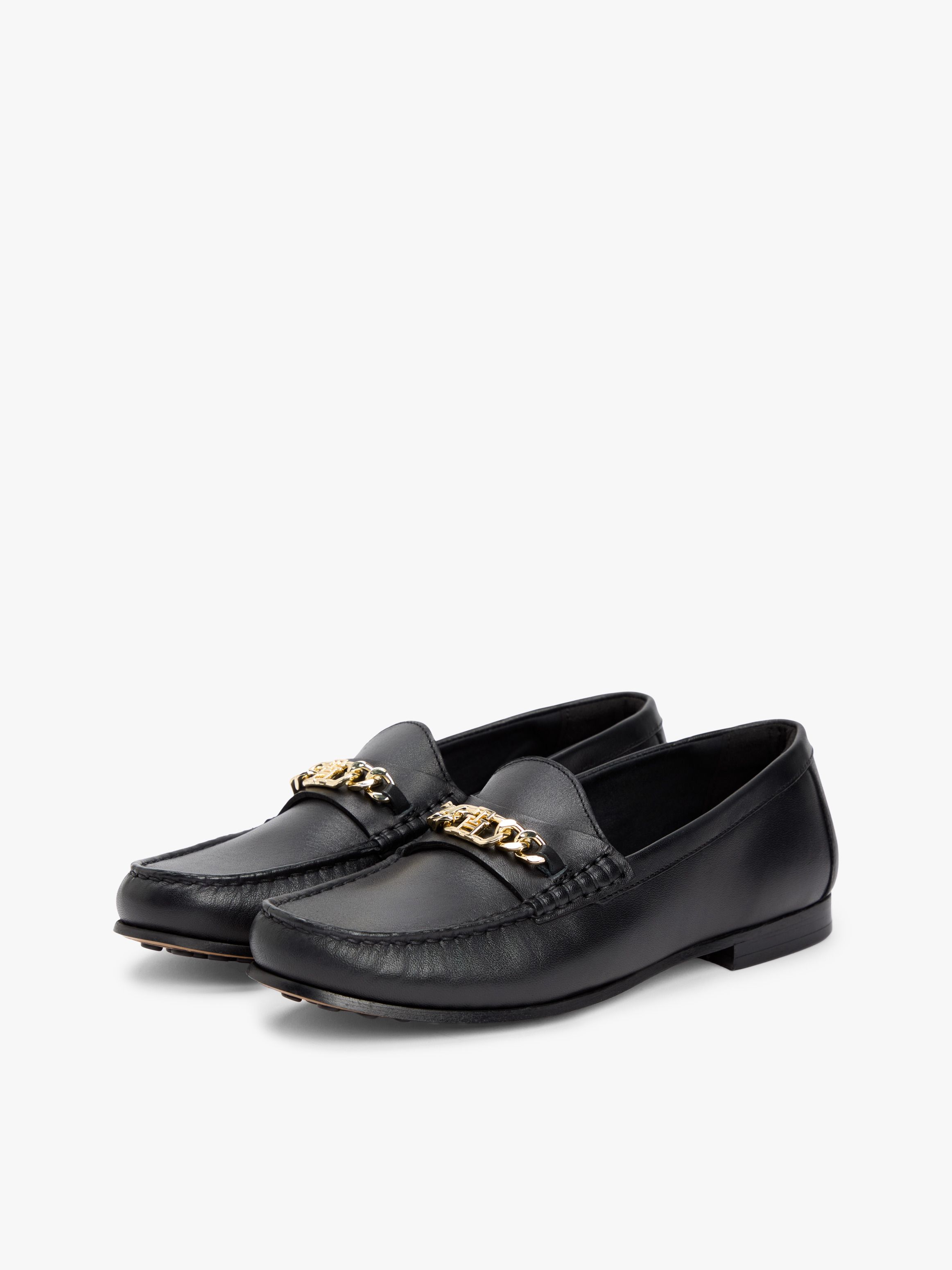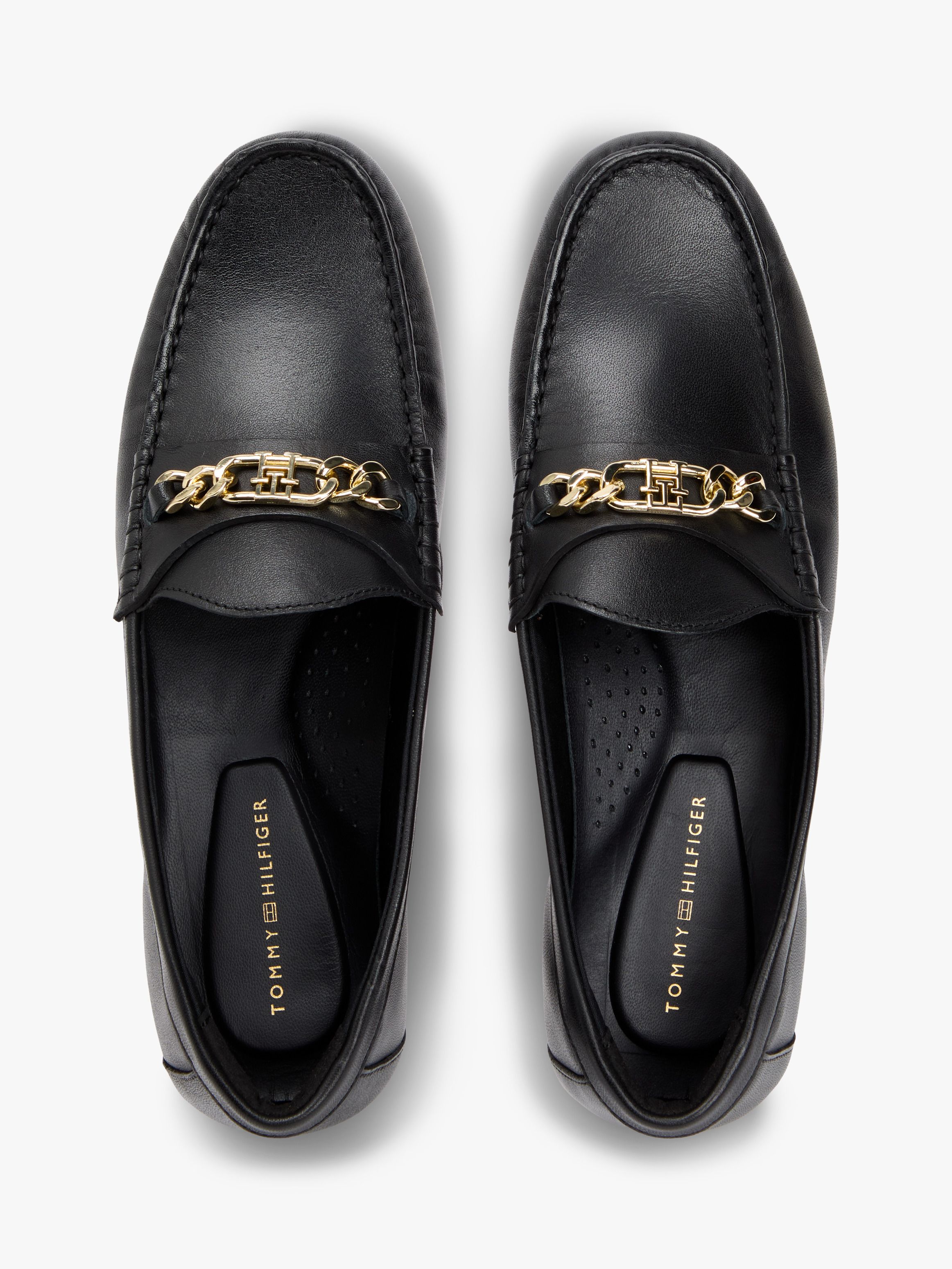 • Leather upper • Leather, cotton, polyurethane and nylon lining • Polyurethane insock • Thermoplastic rubber and TPU outsole • Gold-tone metal chain horsebit on front • Topstitch detailing on upper • Tommy Hilfiger branding