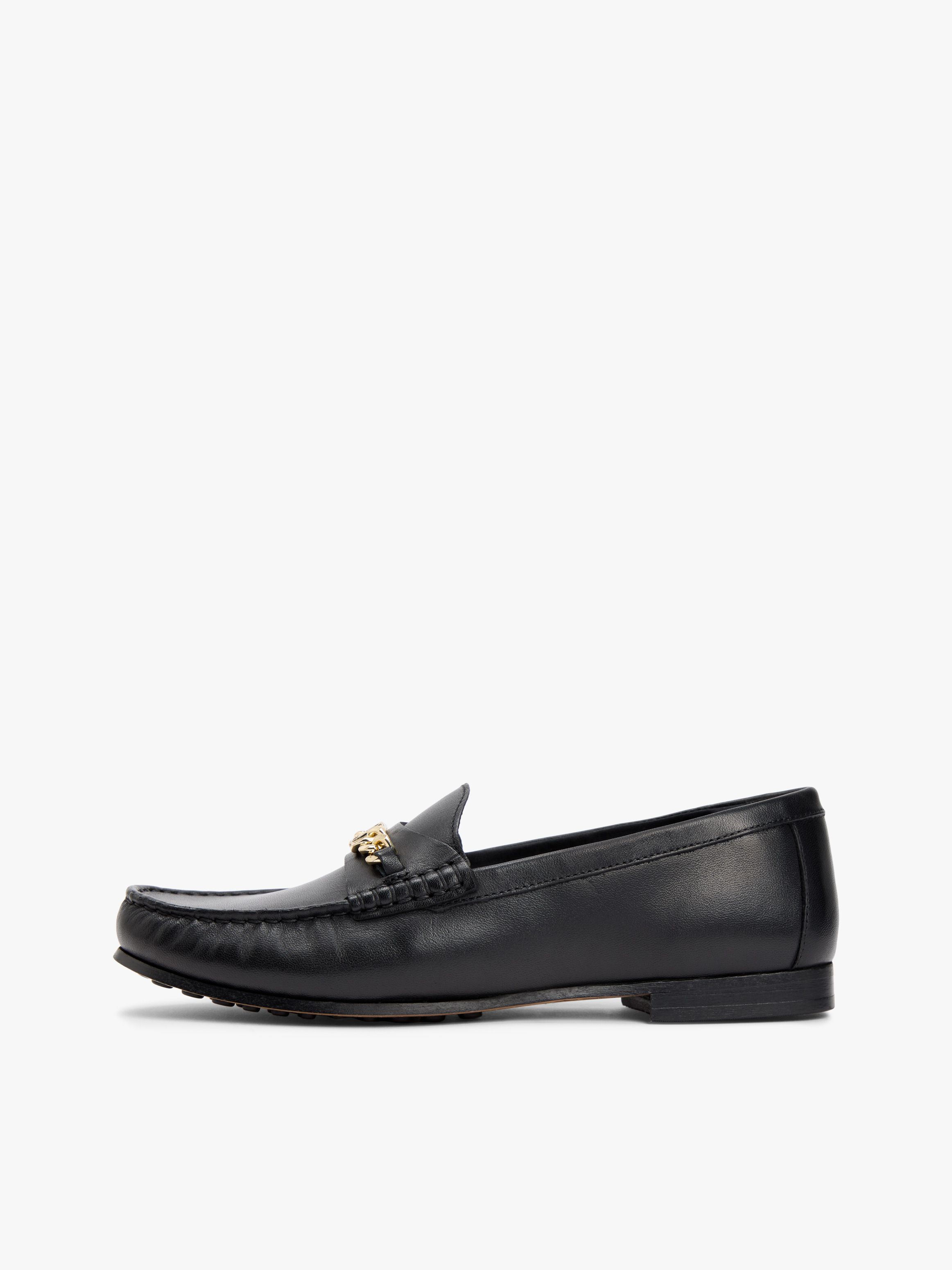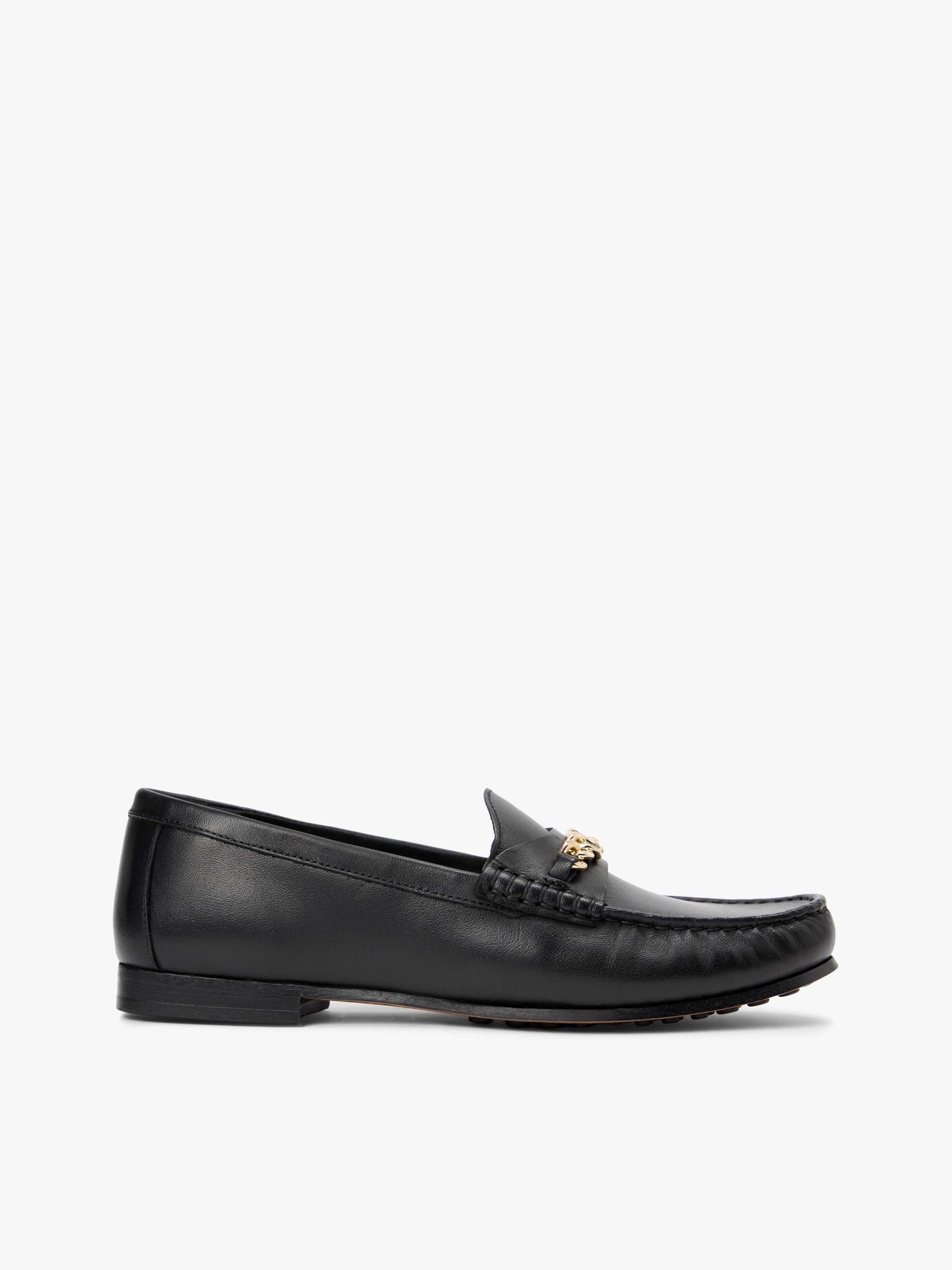 The polished chain across the upper adds a contemporary vibe to these smart slip-on leather loafers, featuring classic topstitching around the toe.