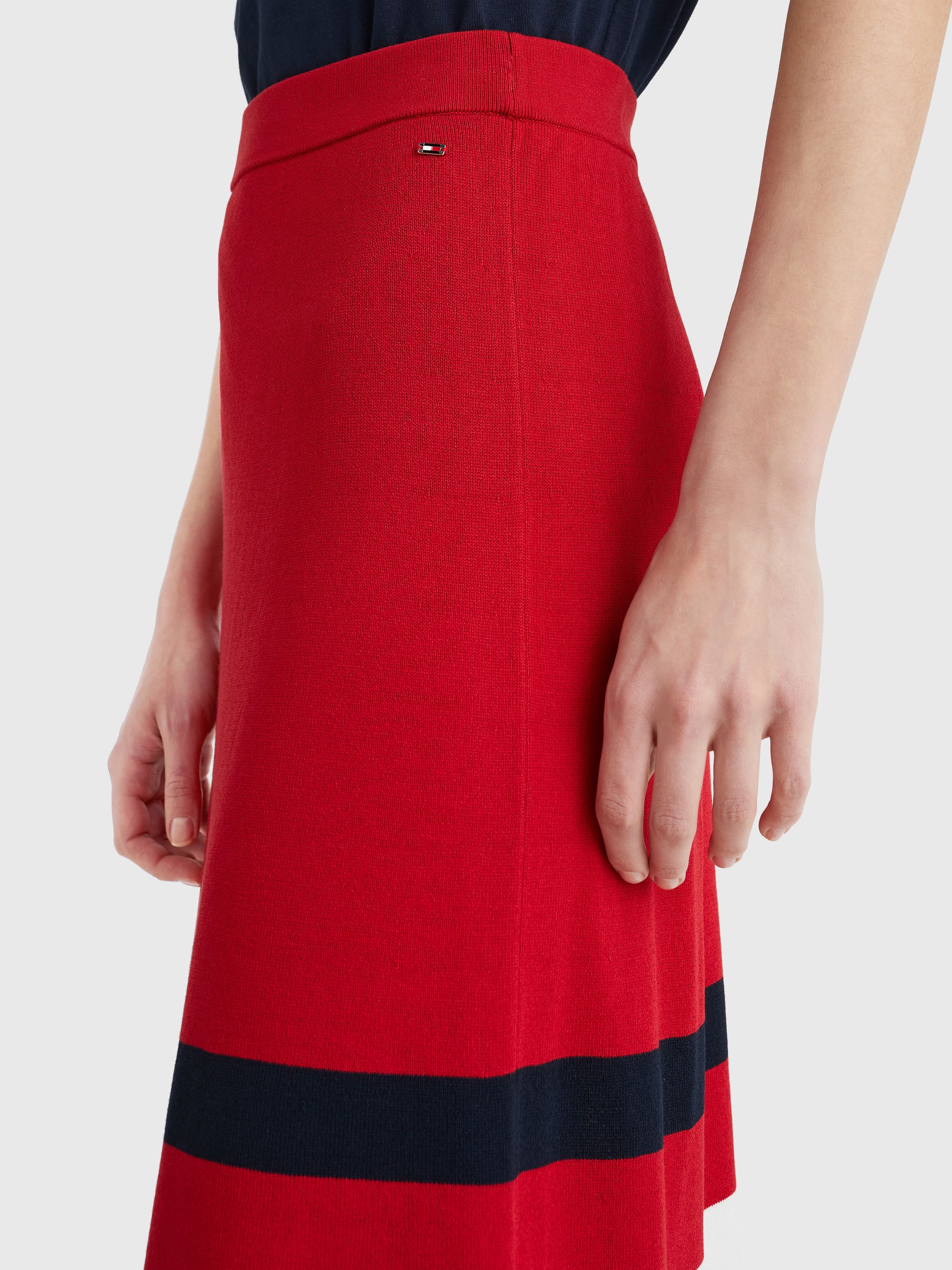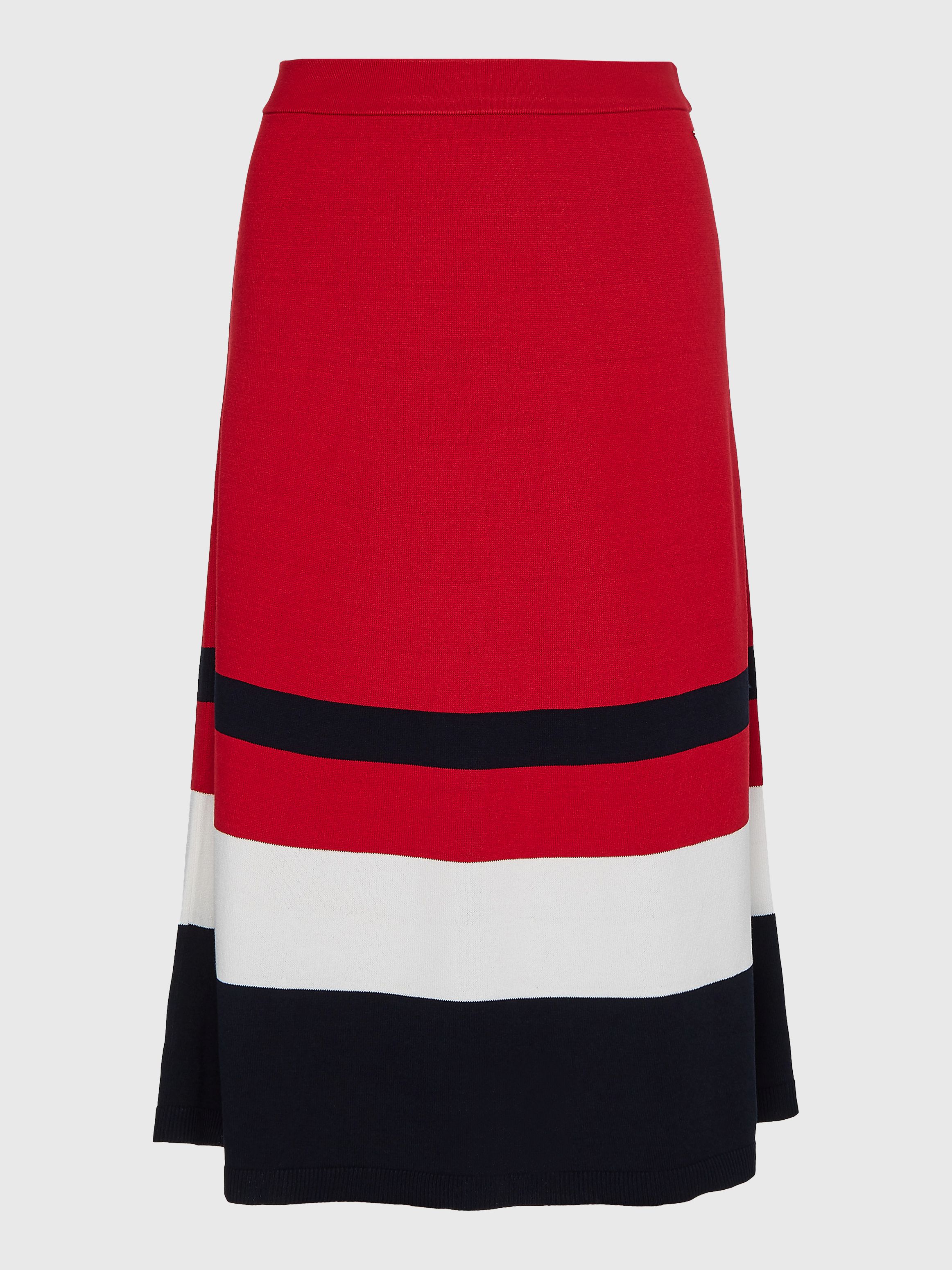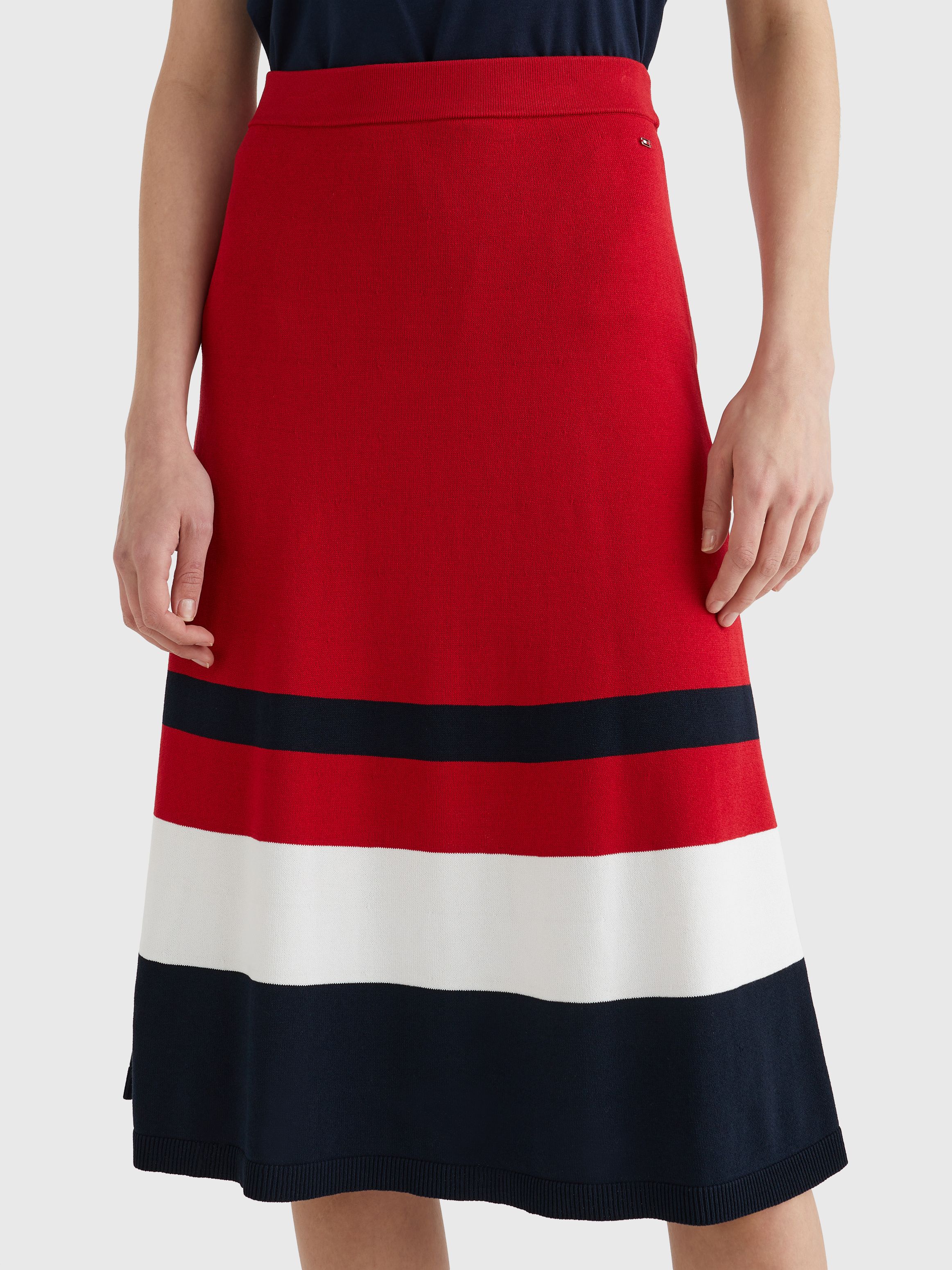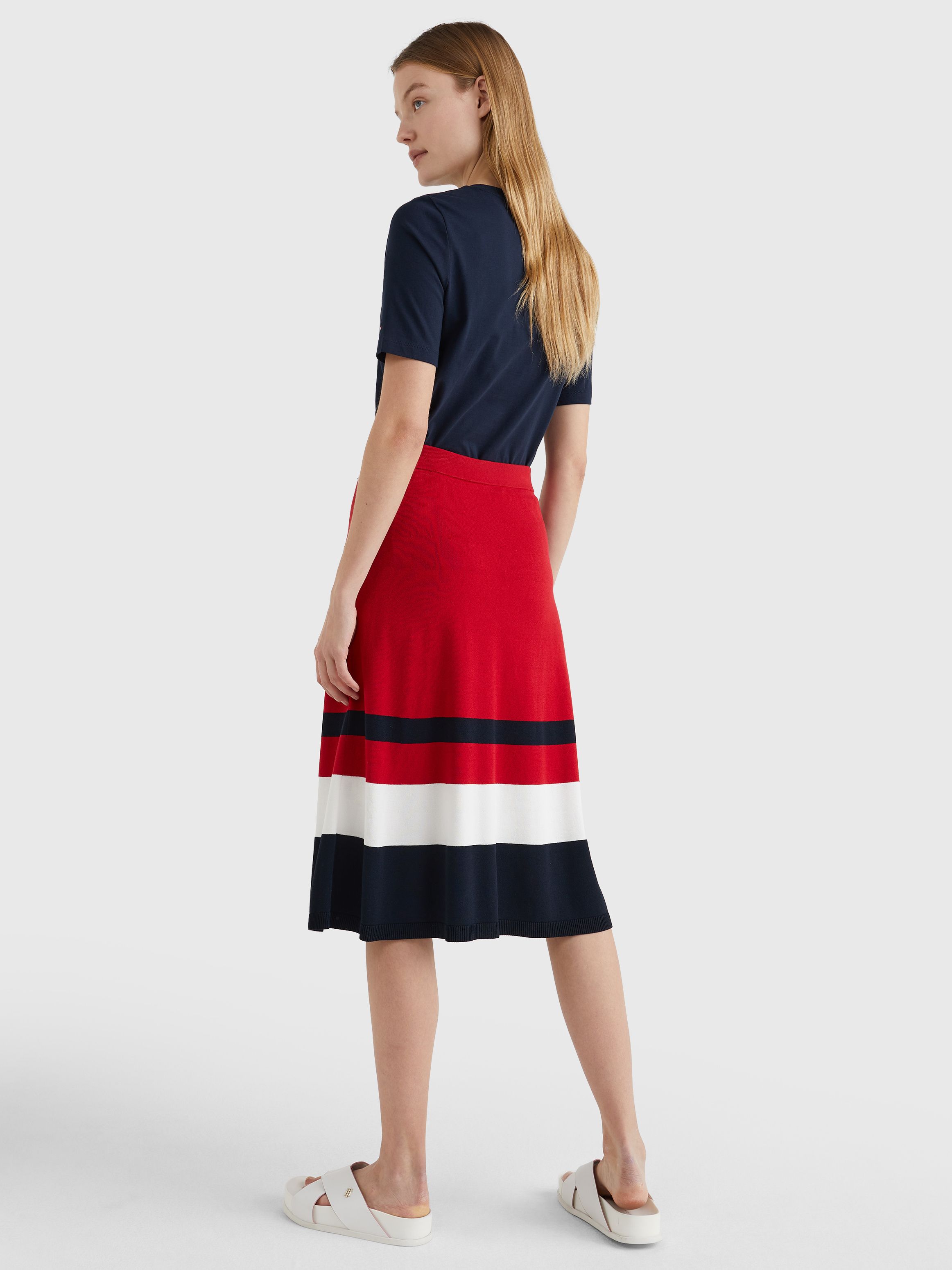 With its flared fit and midi length, this colour-blocked skirt nails the balance between smart and casual for work or play.