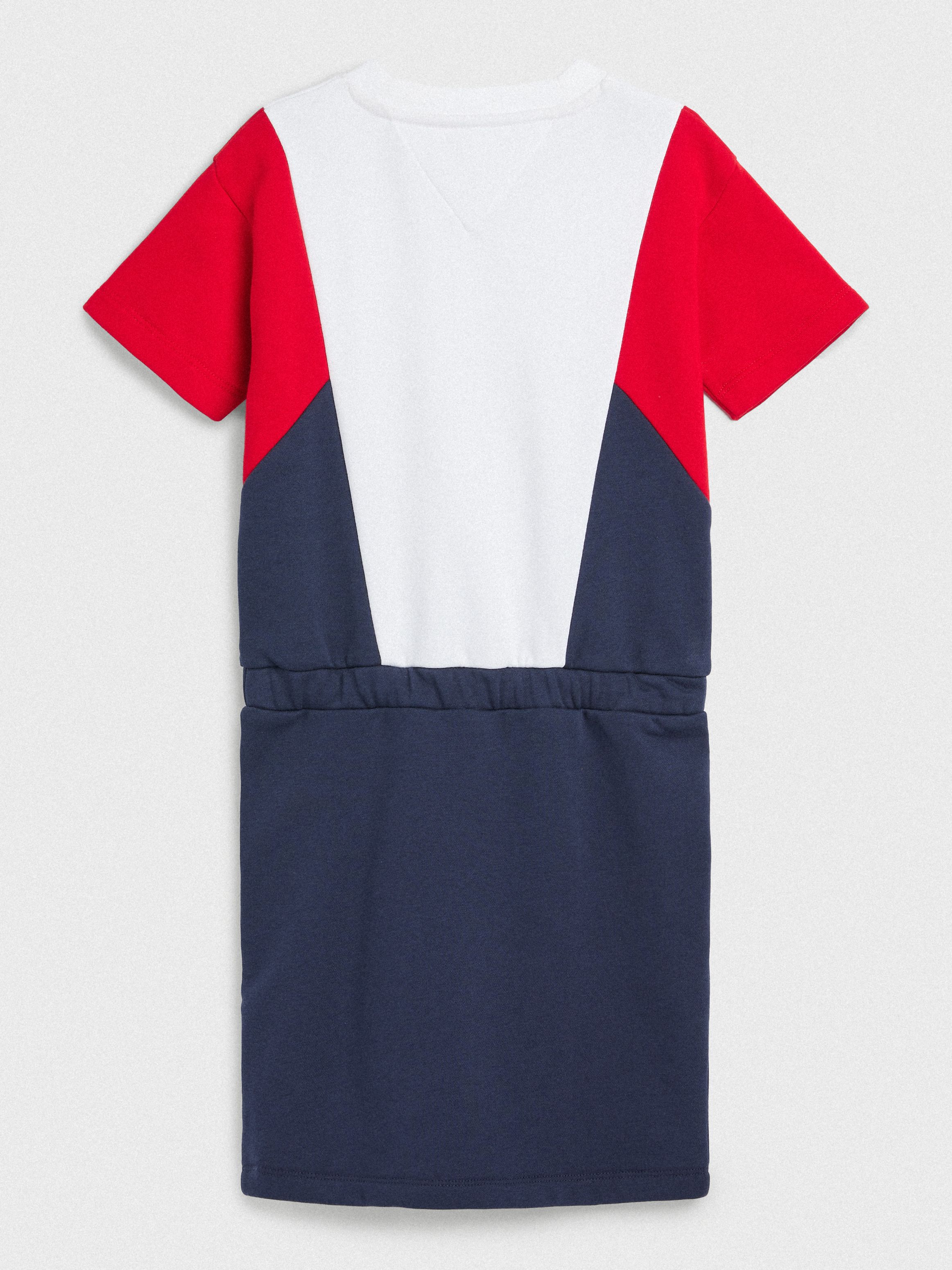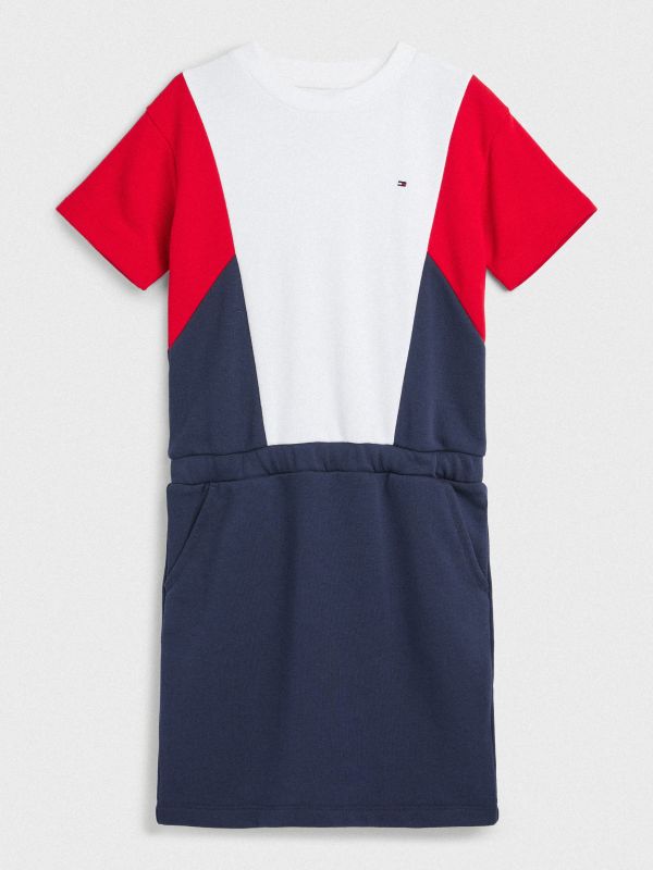 This sporty colour-blocked dress has a simple silhouette and features a comfy elasticated waist plus discreet Tommy Hilfiger flag embroidery.