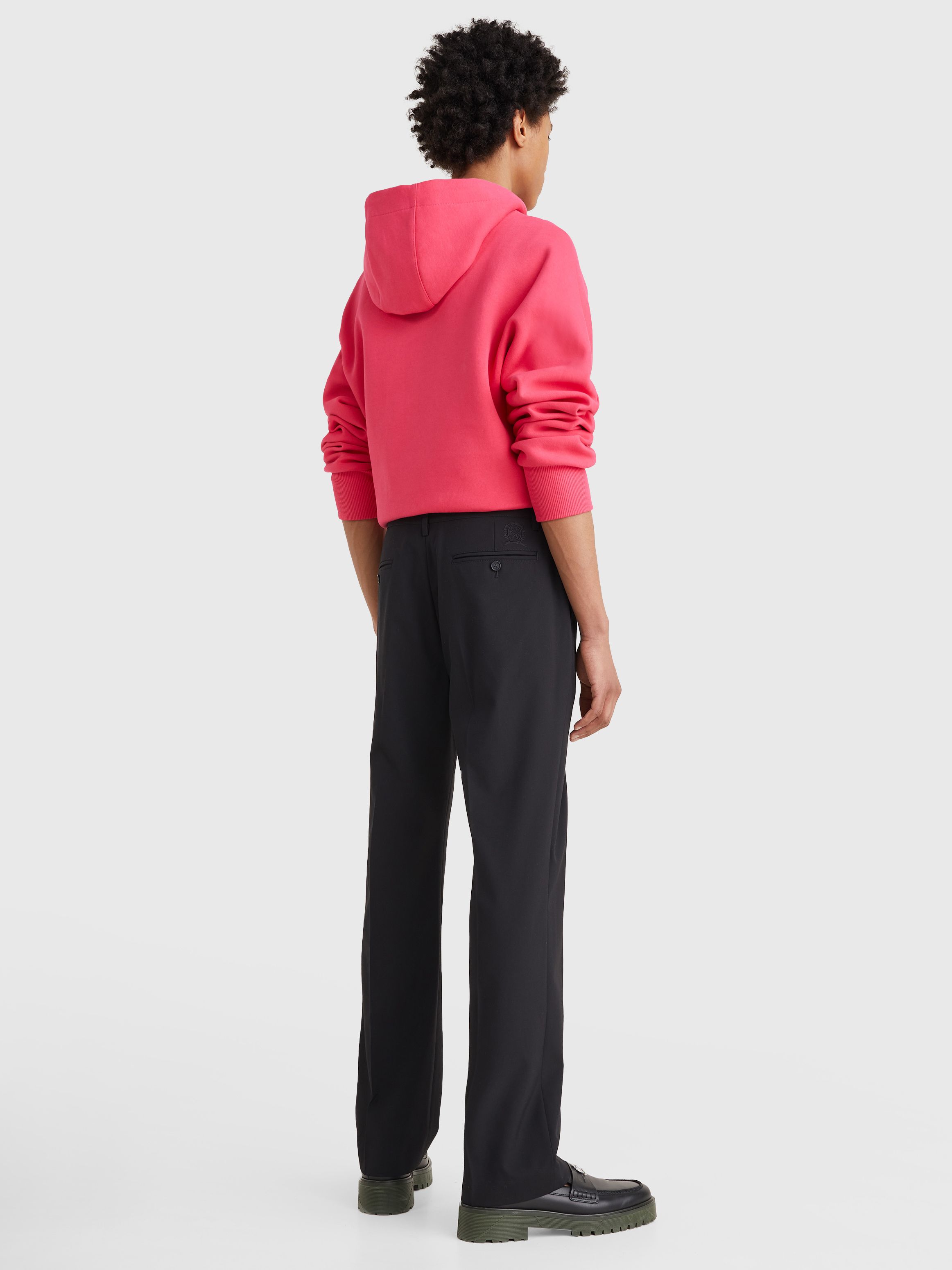 • Stretch virgin wool blend • Zip with button closure • Two waist angled pockets • One back buttoned pocket • THC crest embroidery on back • TH Collection branding