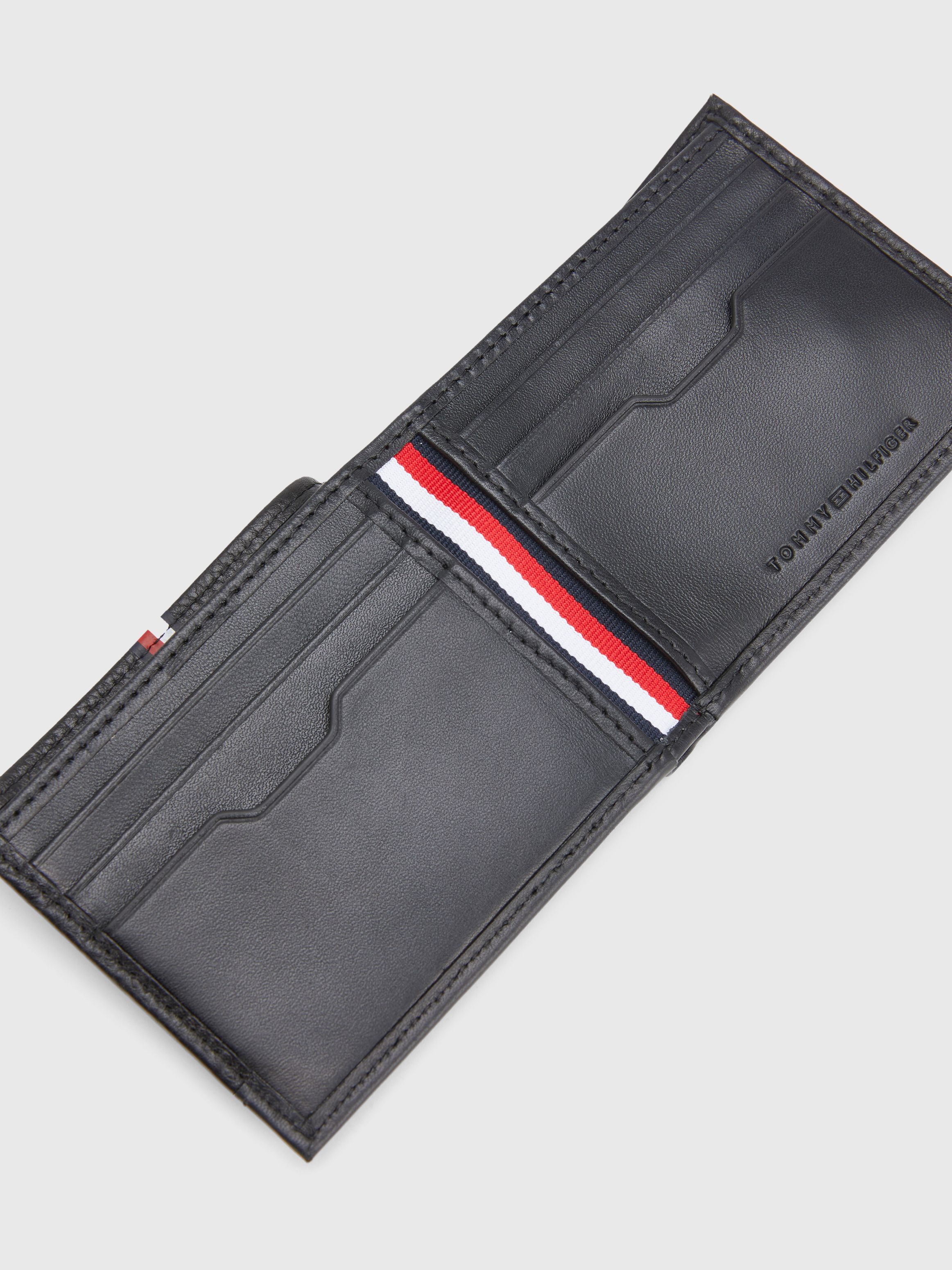 • Leather • Recycled polyester lining • Smooth and pebble grain finish • Multiple interior card slots • One interior billfold pocket • Signature detailing on front and interior • Silver-foil Tommy Hilfiger logo on front • Tommy Hilfiger branding