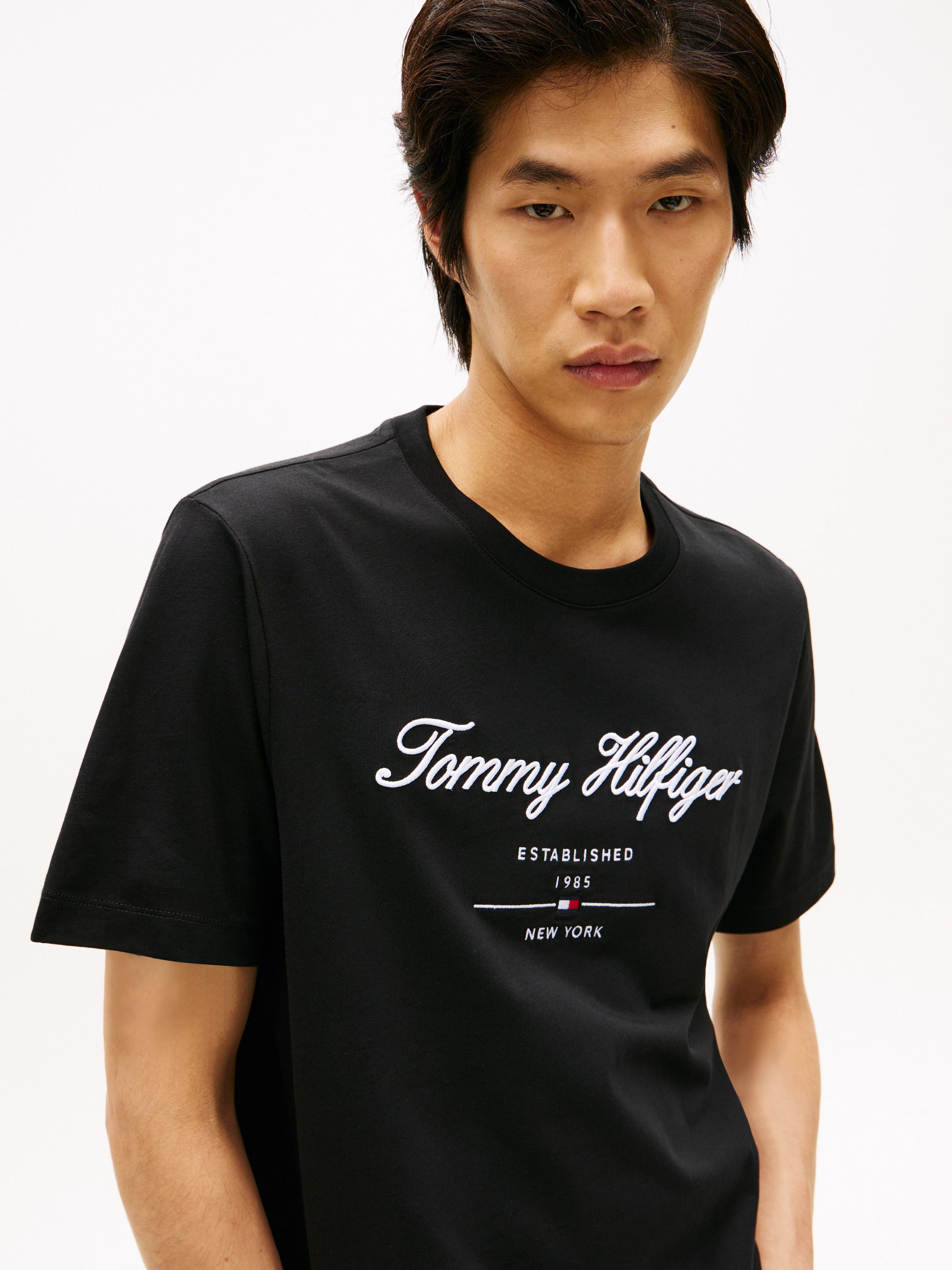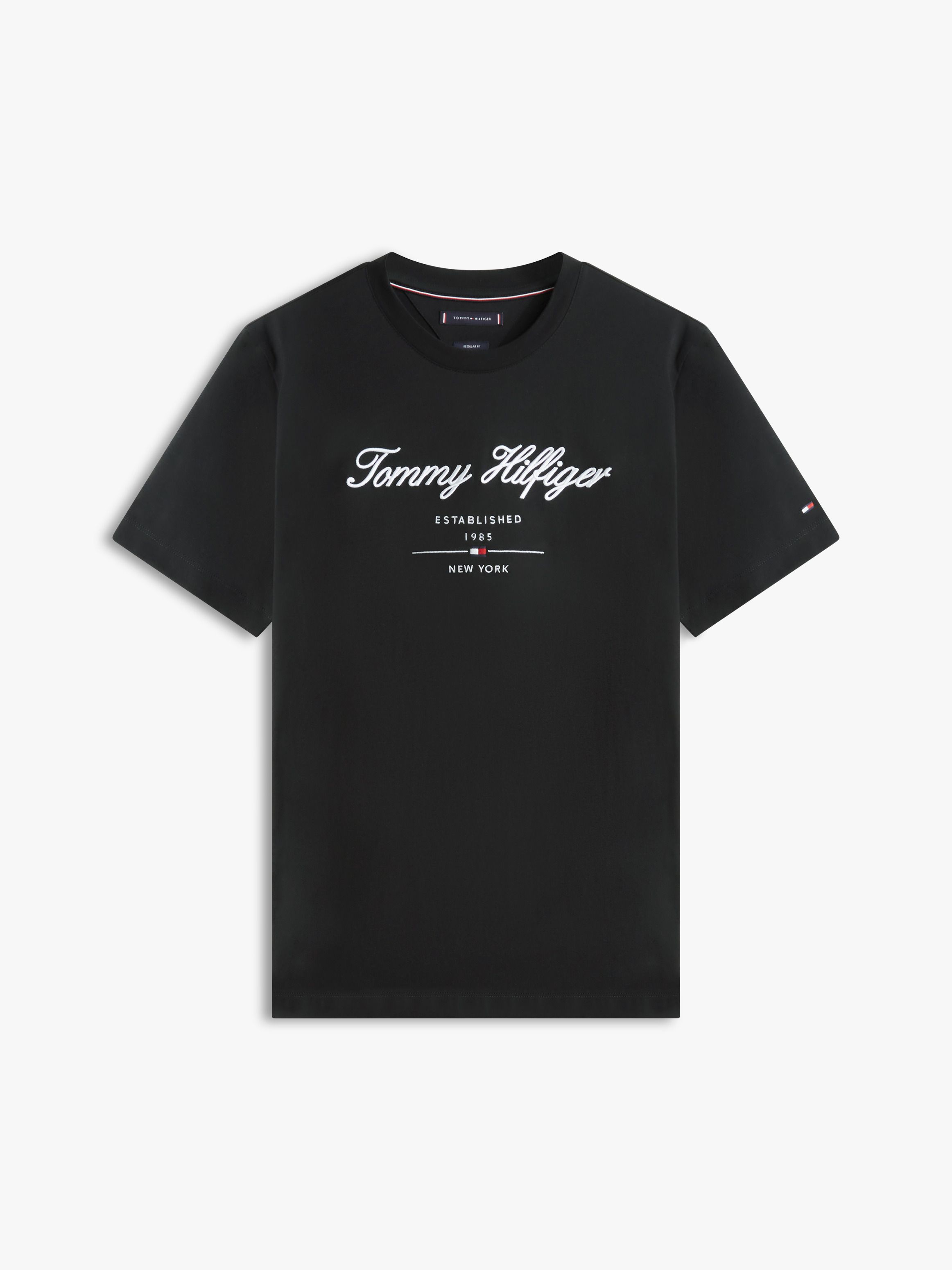 • Pure cotton • Tommy Hilfiger script logo embroidery on chest • Crew neck • Signature tape on nape • Tommy Hilfiger branding • Tommy Hilfiger flag embroidery on sleeve