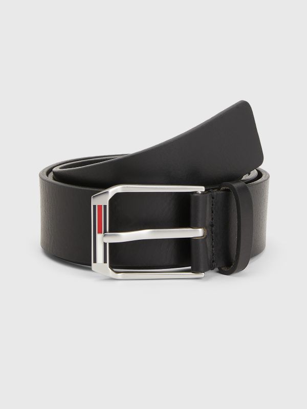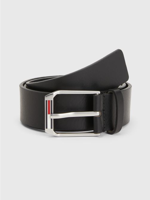 It's all in the detail with this leather belt that features an angled polished metal buckle decorated with an enamel flag.