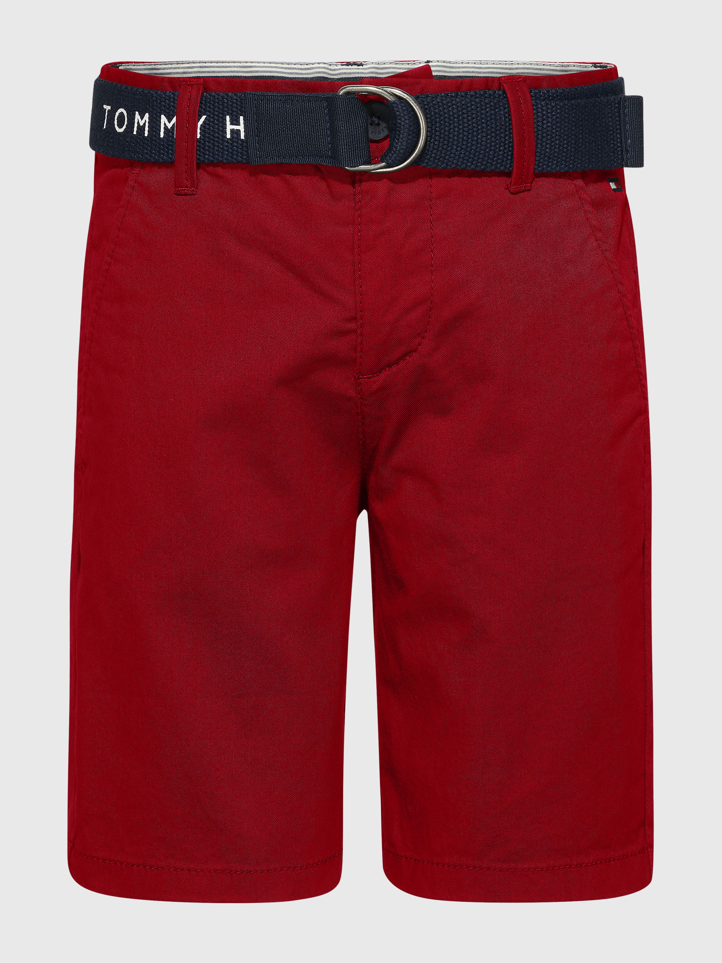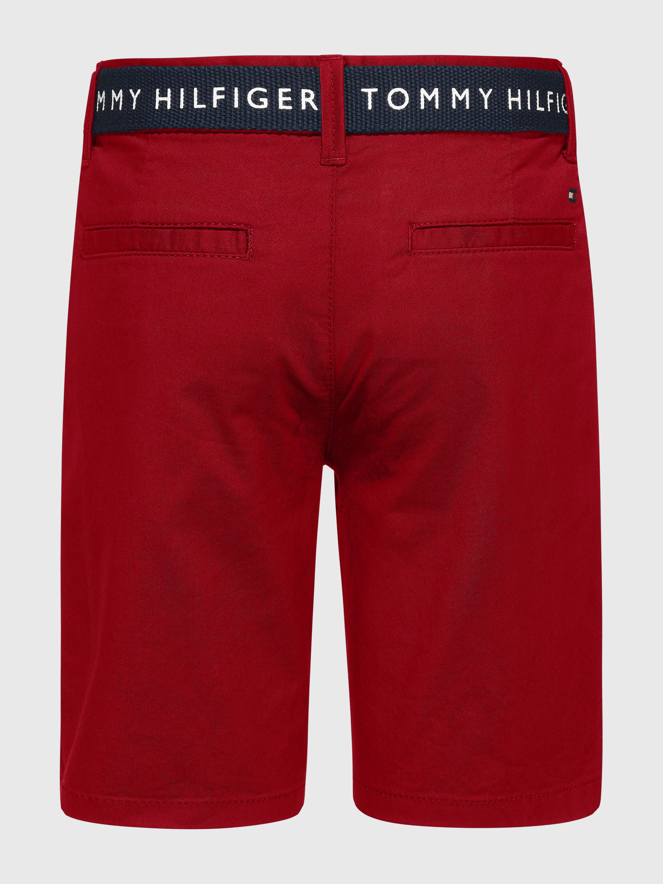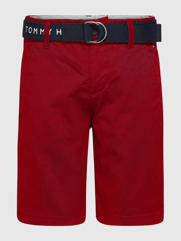 • Stretch organic cotton • Tommy Hilfiger repeat logo belt with double D-ring buckle • Zip with button closure • Two waist angled pockets • Two back welt pockets • Tommy Hilfiger branding • Tommy Hilfiger flag embroidery at back and hip