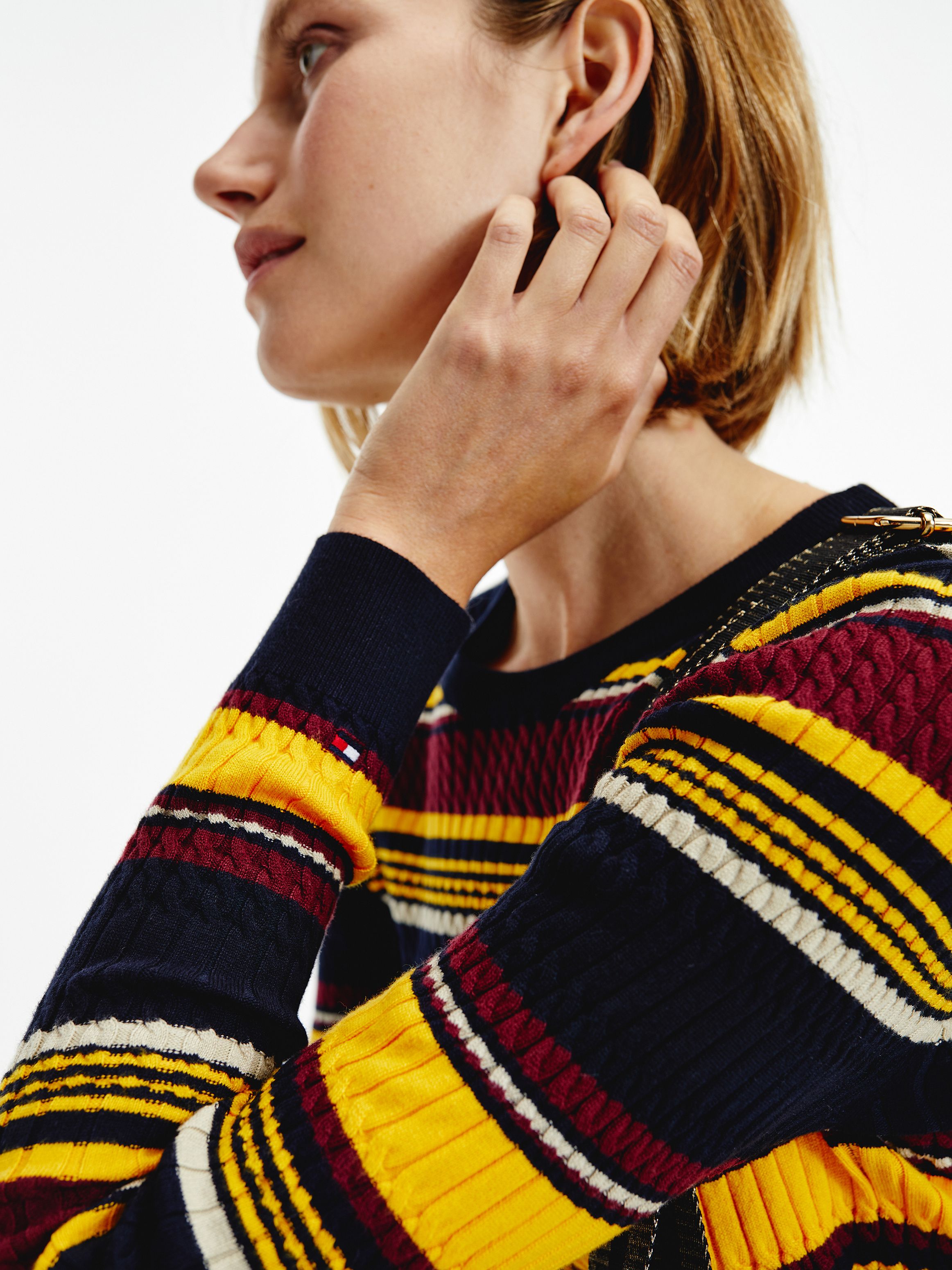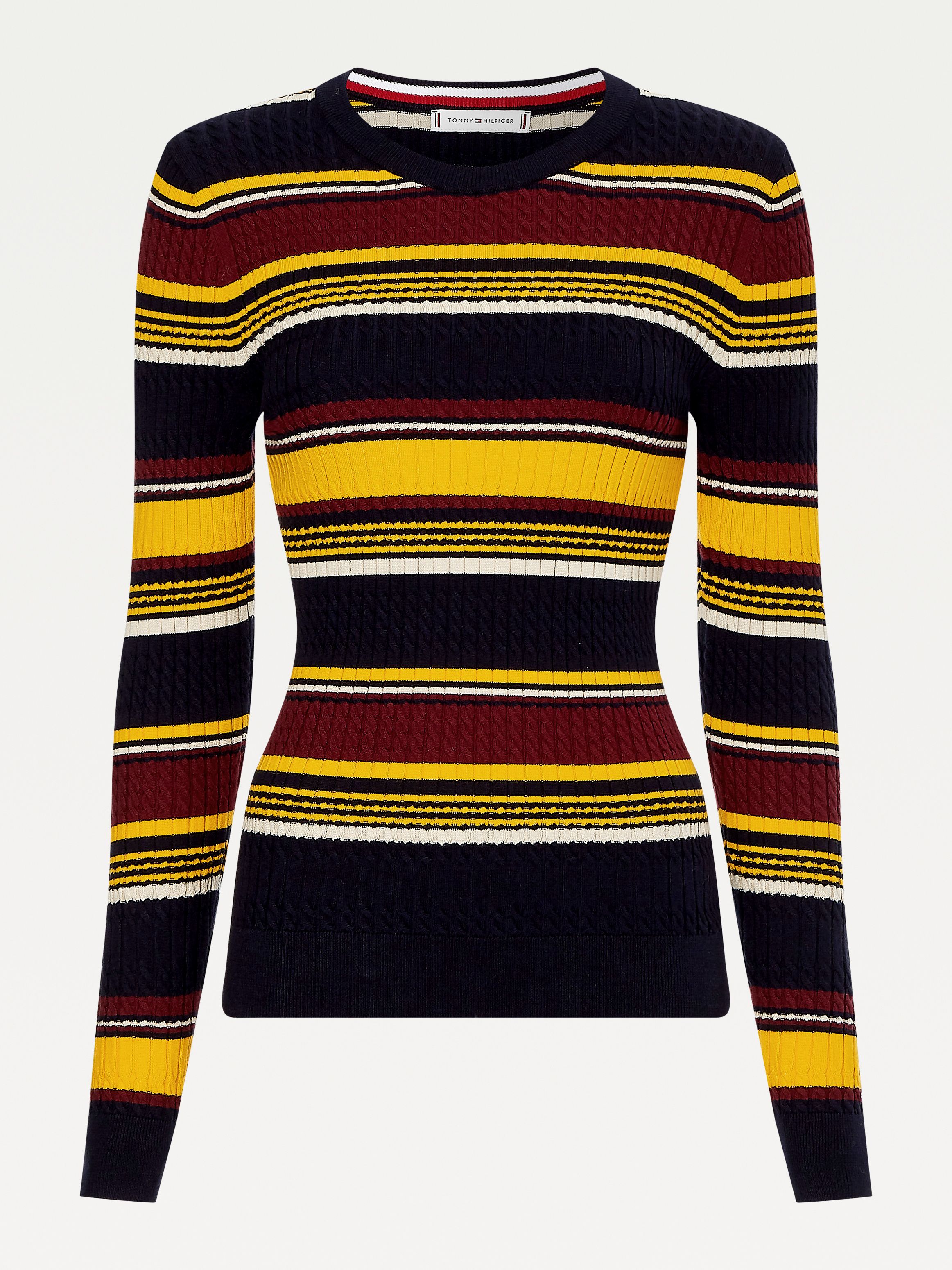 A Scandinavian style staple, this classic cable-knit jumper has been given a modern update with a sleek slim fit shape.