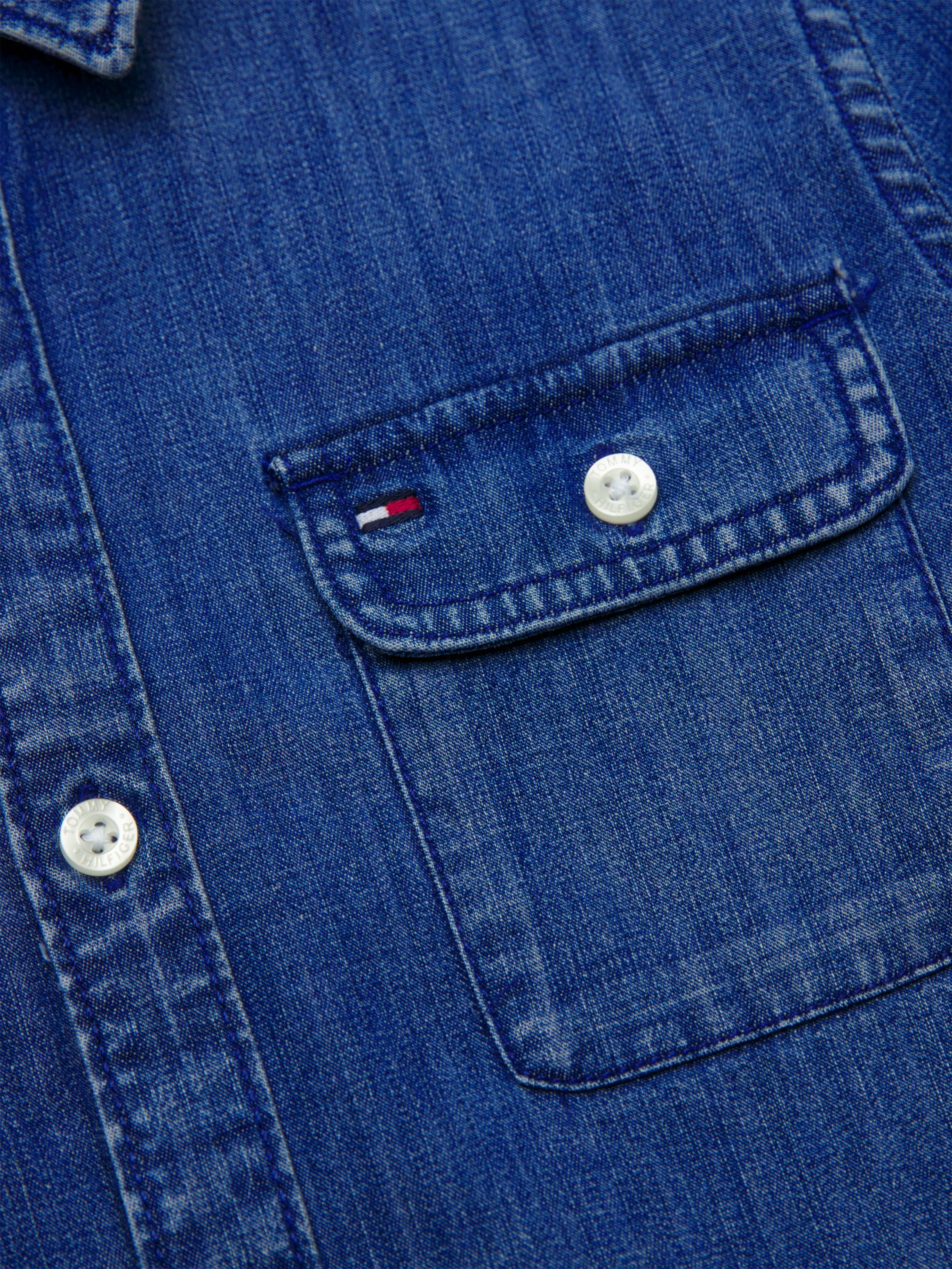 Denim fabric and a pair of chest pockets bring a cowboy-inspired vibe to this shirt, which has a little stretch for comfort.