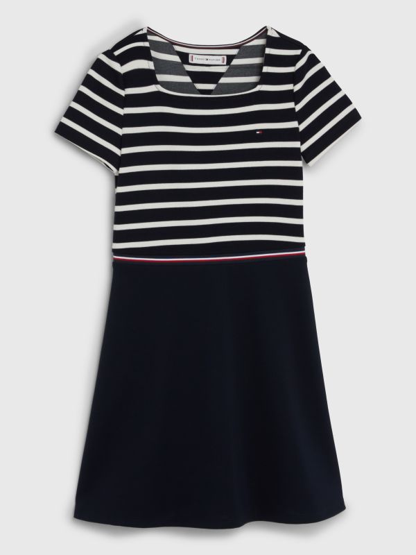 Update weekend wardrobes with this square-neck skater dress crafted from punto di Roma fabric for a twirl-ready fit.