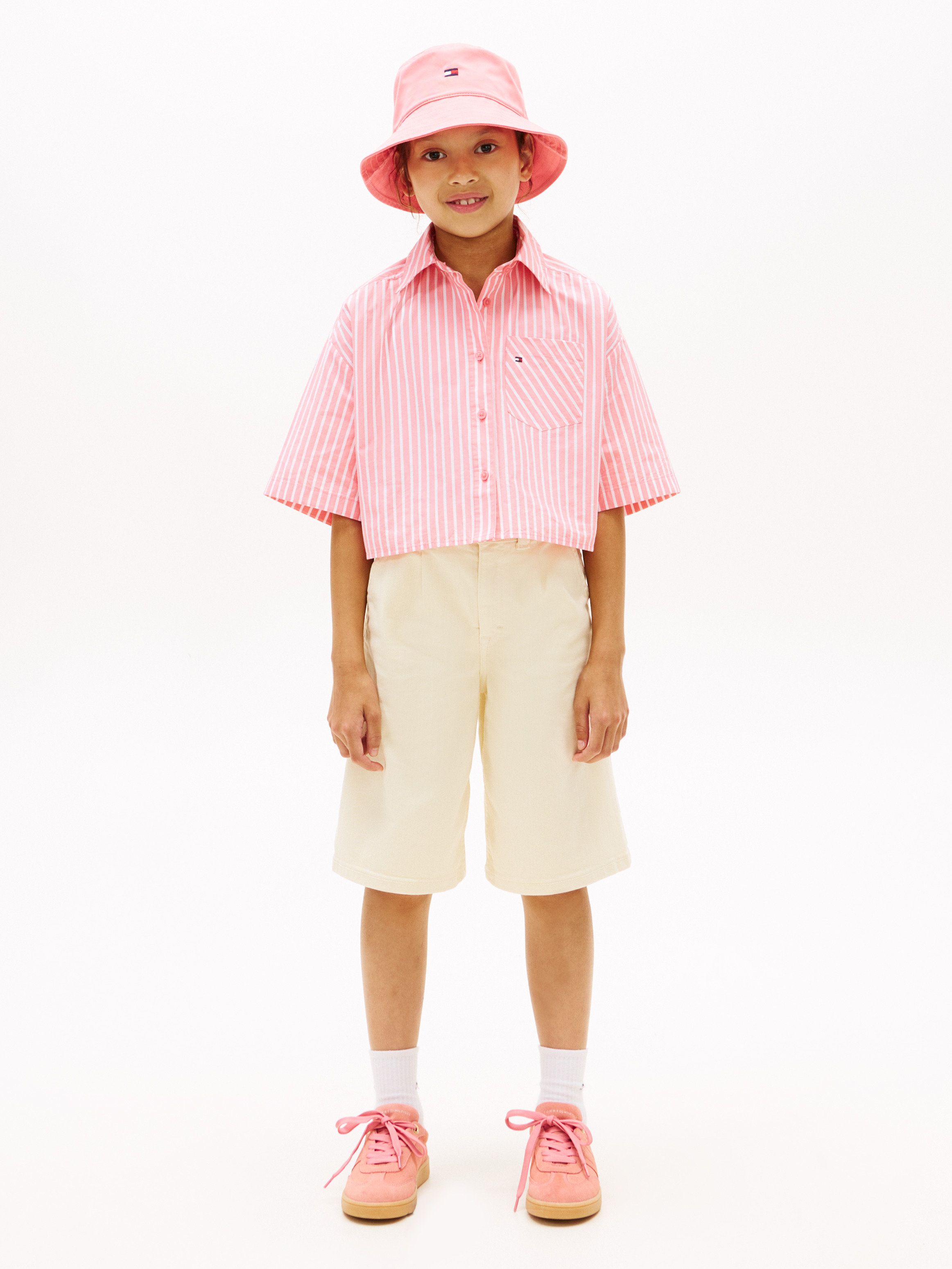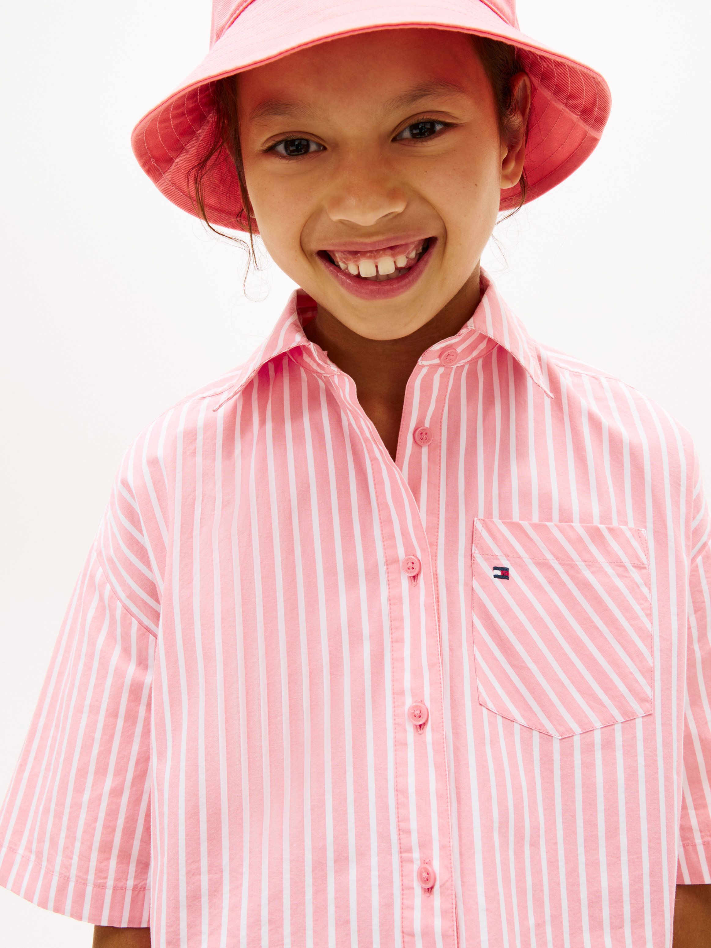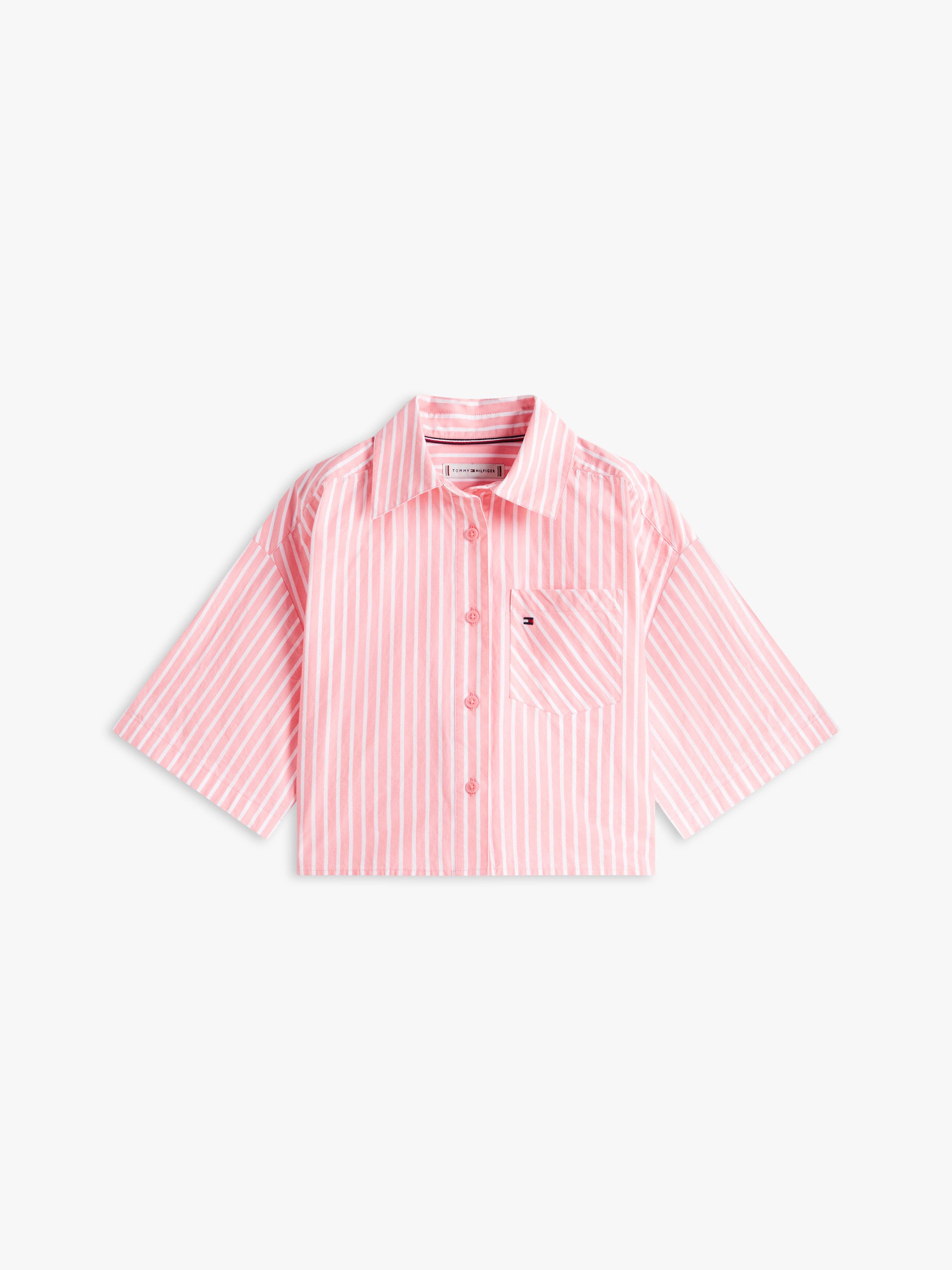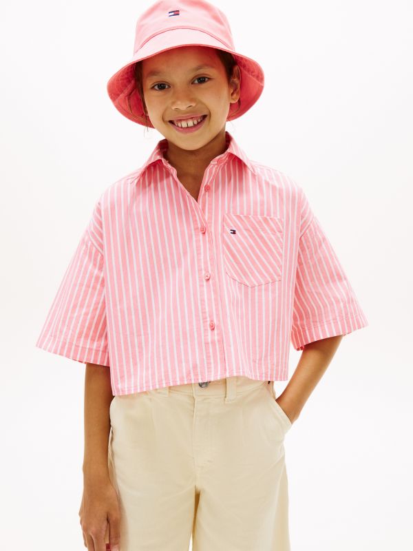 Bring a pop of pattern to outfits with this striped shirt, featuring wide short sleeves and dropped shoulders for an easy-breezy look.