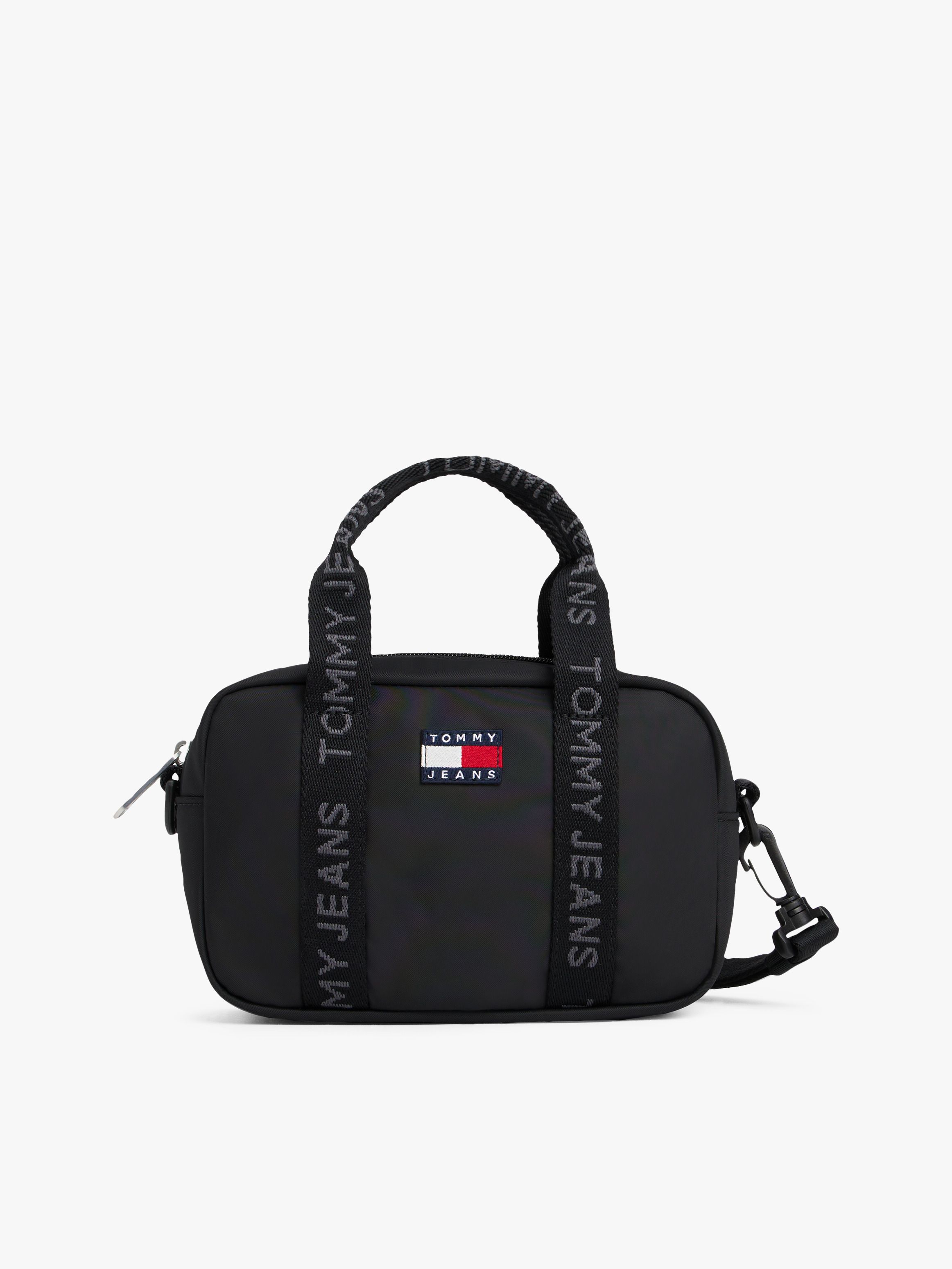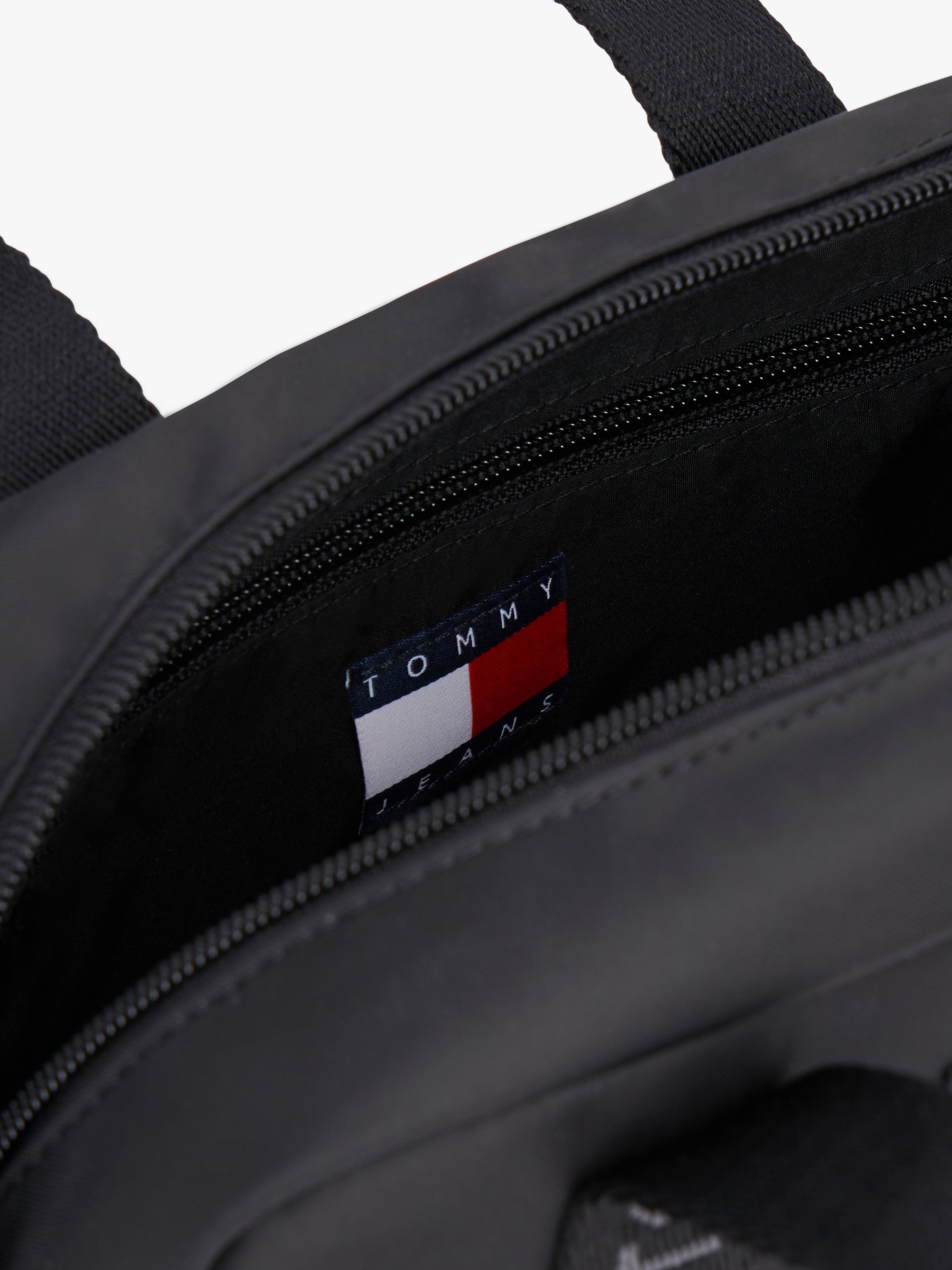 • Textured finish • Zip closure • Two top handles • Adjustable removable crossbody webbing strap • One main compartment • One interior zipped pocket • Tommy Jeans repeat logo on handles • Tommy badge on front and inside • Tommy Jeans branding