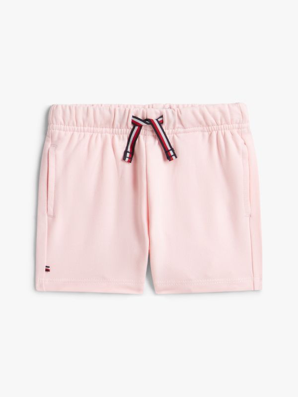 • Stretch cotton baby terry • Signature tape drawstring waist • Two side slip pockets • One back patch pocket • Signature tape on side • Tommy Hilfiger branding • Tommy Hilfiger flag embroidery on back pocket