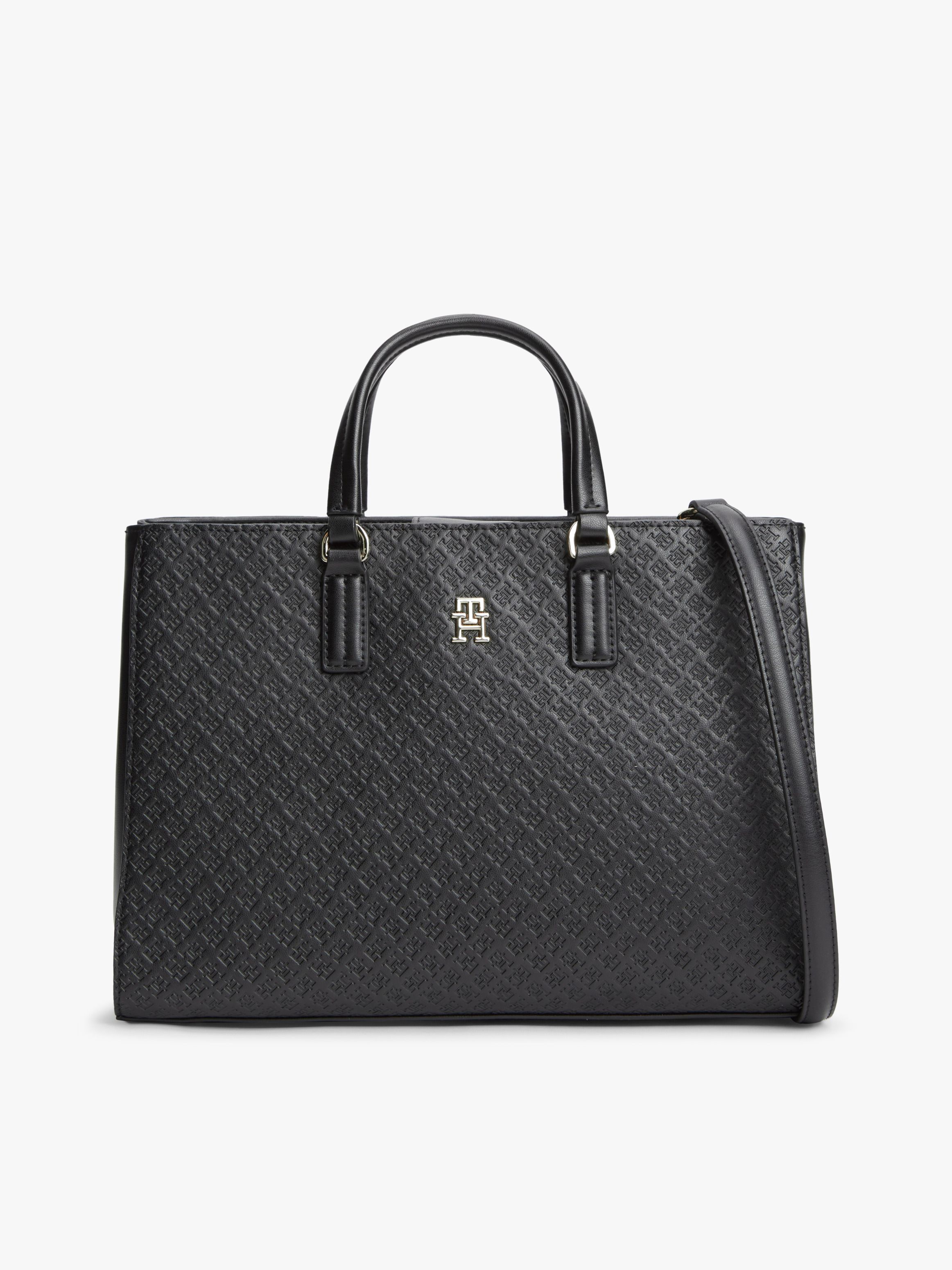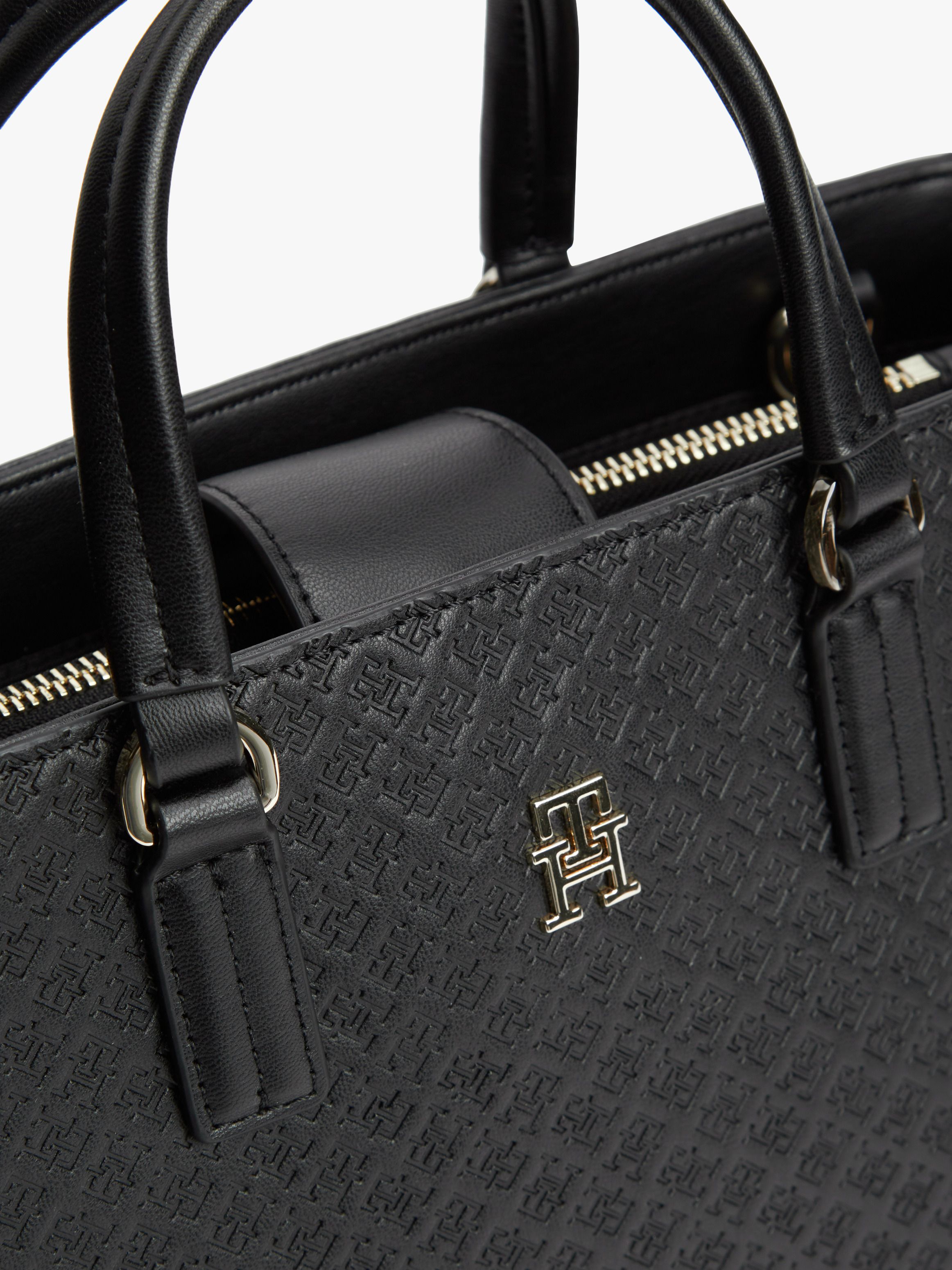 Assert your style with this spacious crossbody satchel that is perfect for professional engagements, celebrating the TH monogram through an all-over design.
