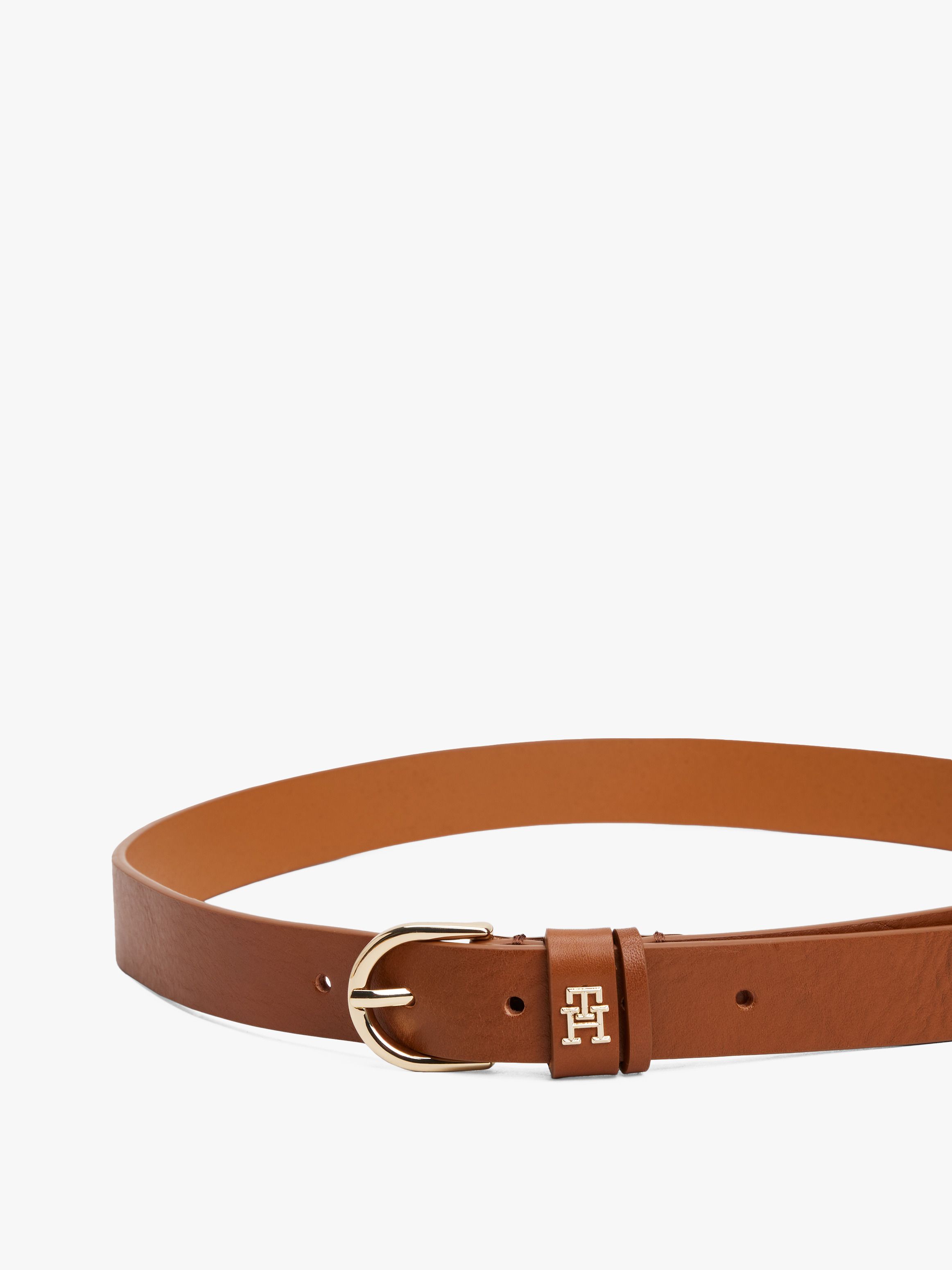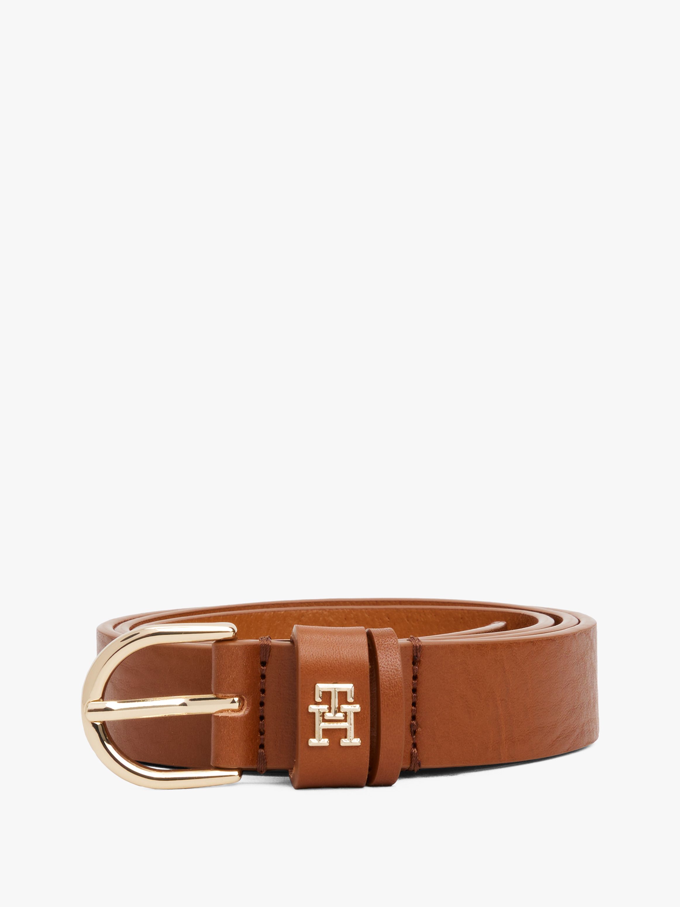 This understated leather belt brings a luxurious feel to your outfits, with a gleaming rounded buckle and matching TH monogram plaque.