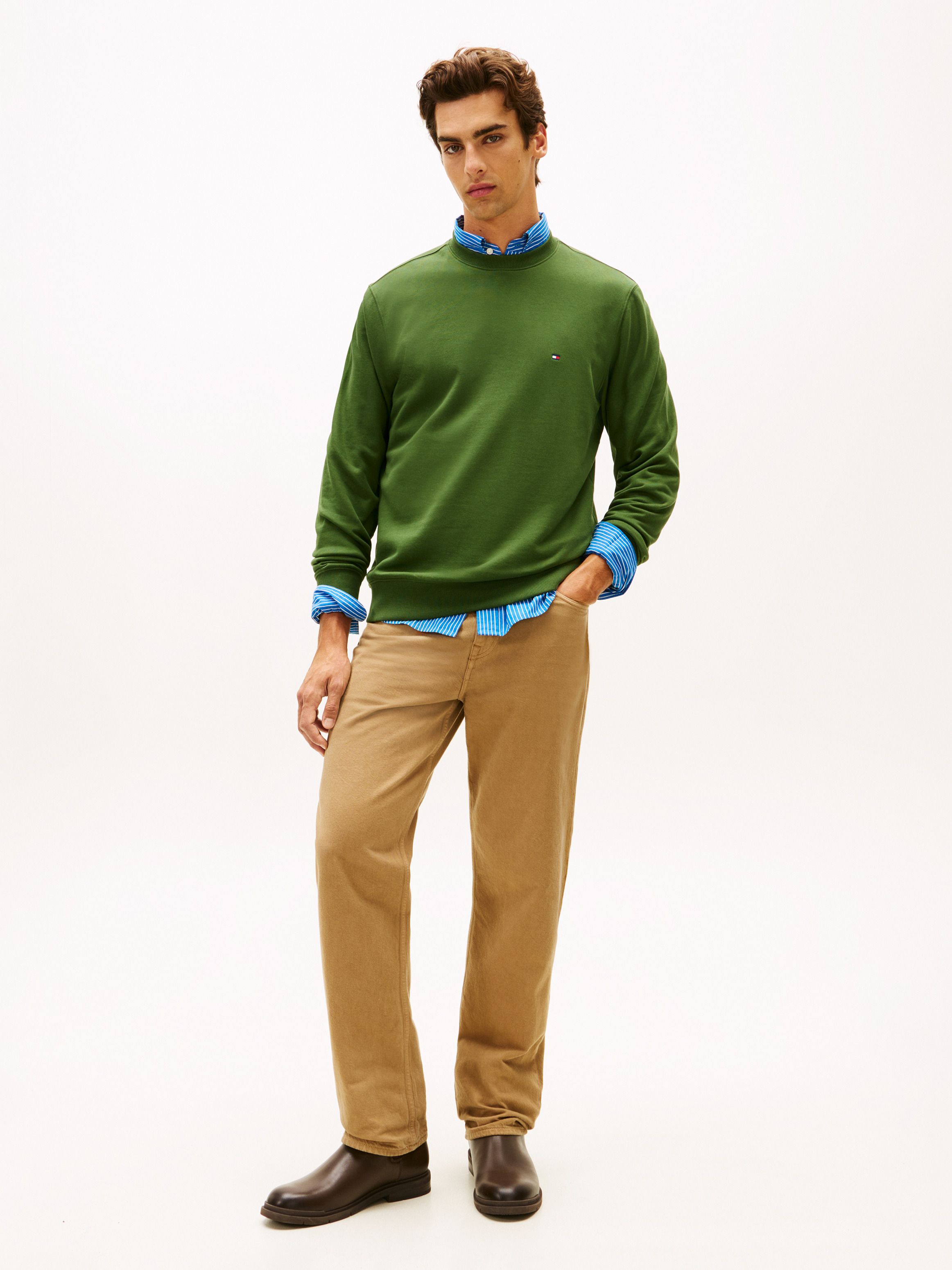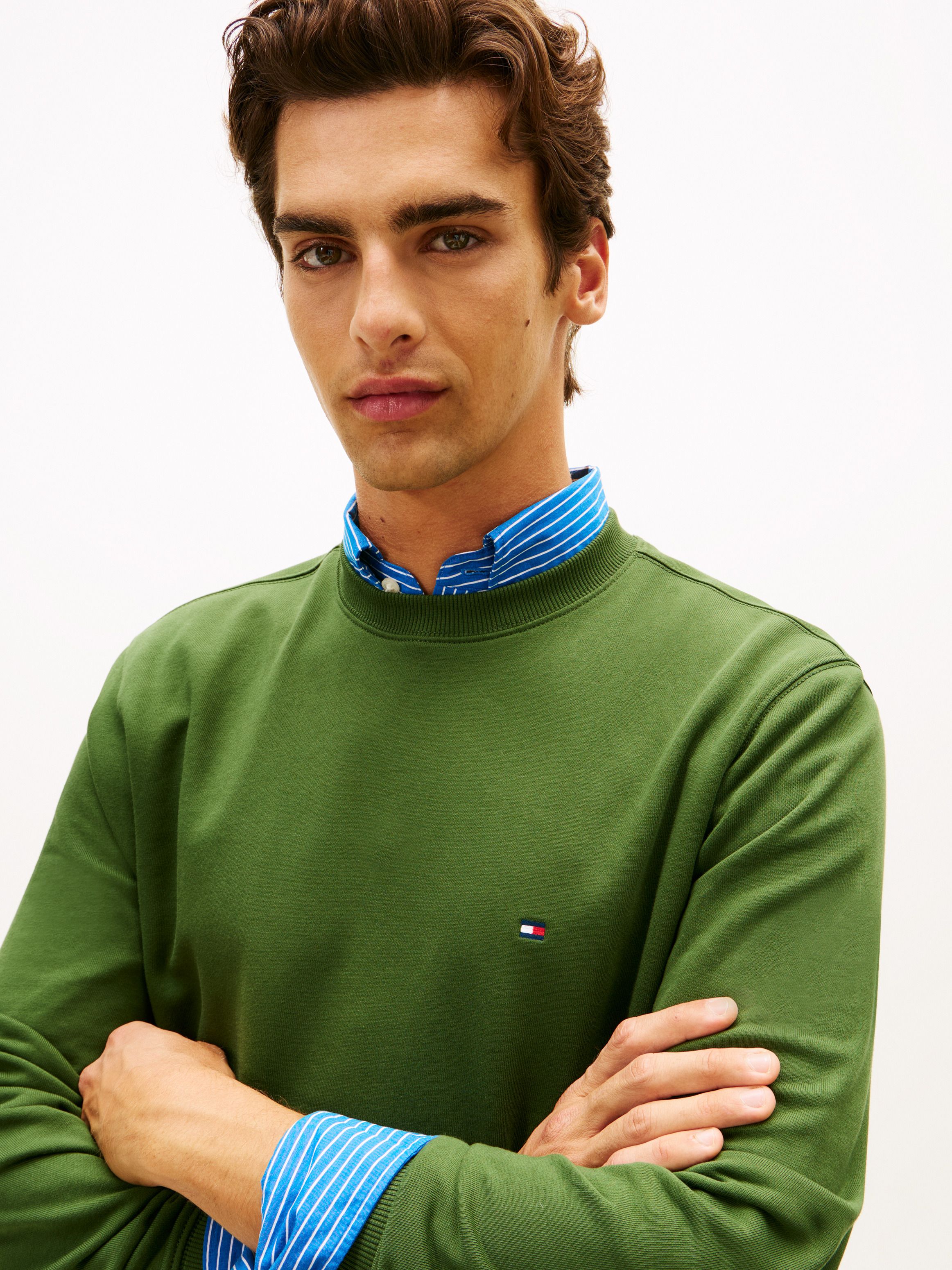 • Pure cotton terry • Crew neck • Rib-knit collar, cuffs and hem • Signature tape inside neckline • Tommy Hilfiger branding • Tommy Hilfiger flag embroidery on chest