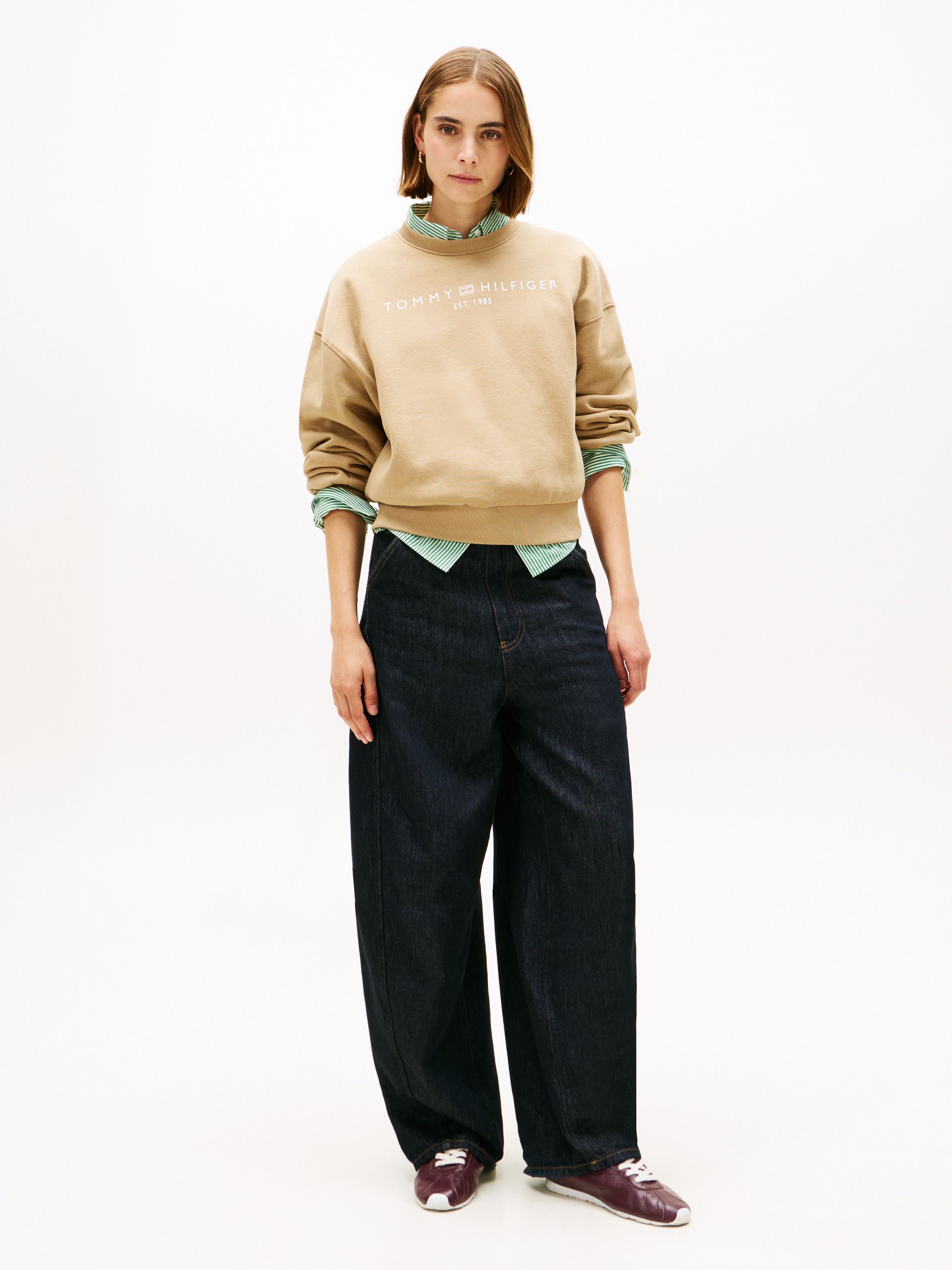 Cosy up in this crew-neck sweatshirt, in a relaxed-fit design made from cotton-blend flex fleece with a signature logo.