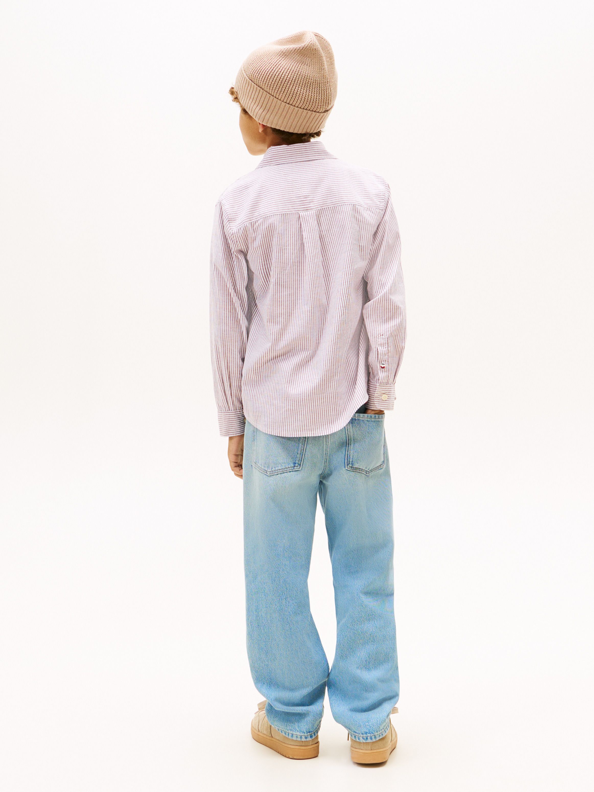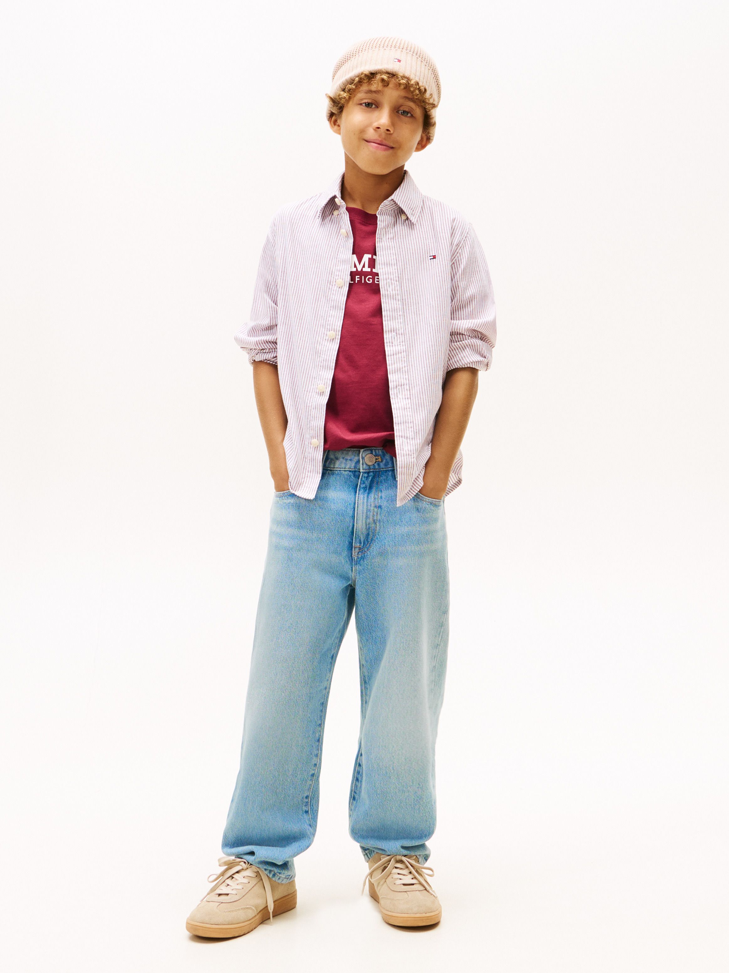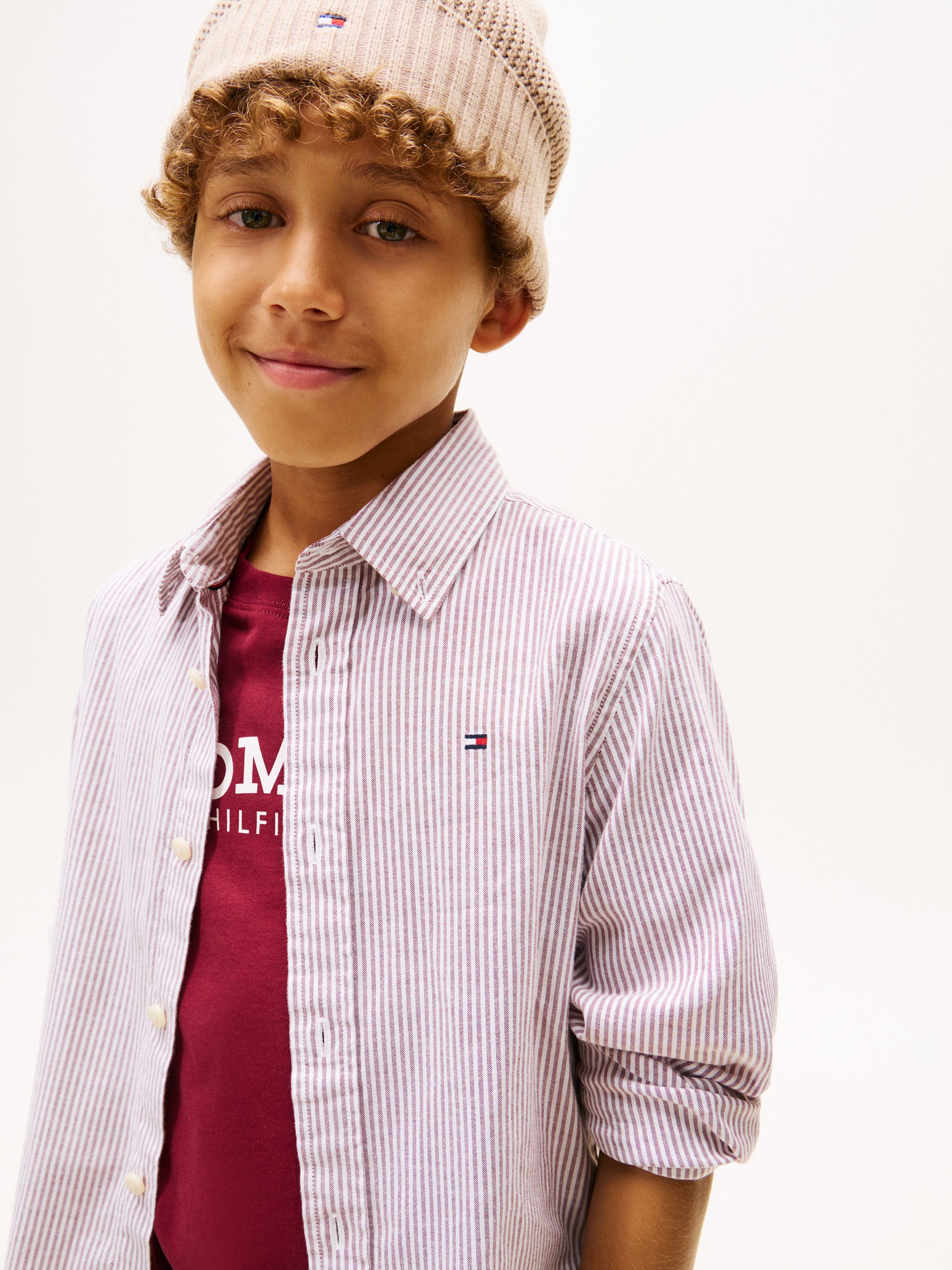 Looking sharp and feeling comfortable is a cinch with this all-over Ithaca stripe shirt made using Tommy Hilfiger flex technology.