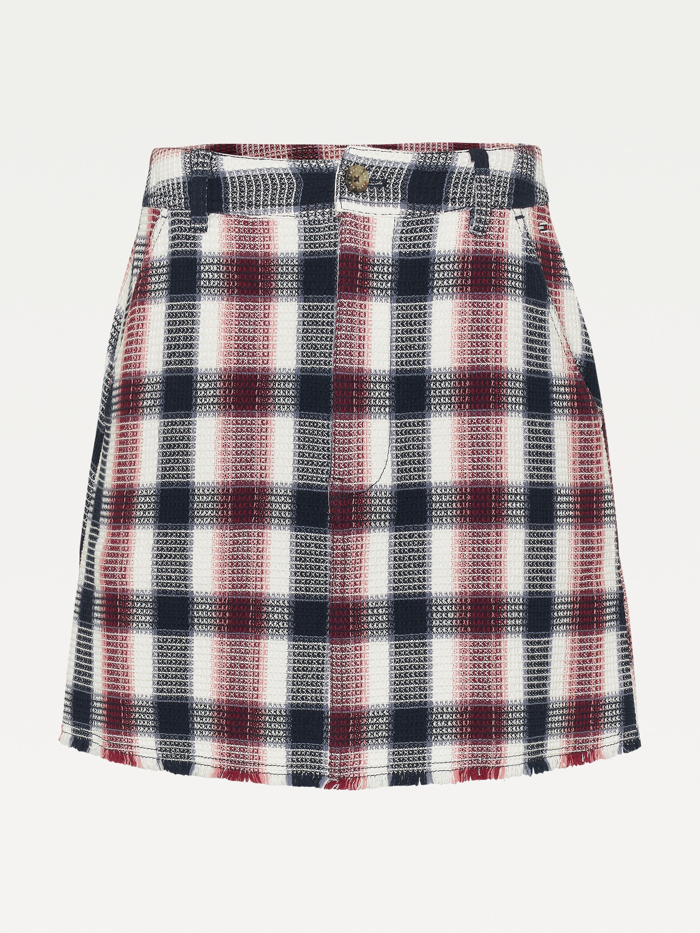 With its comfy organic cotton fabric and mini length, this gingham check skirt is made for those easy, sun-kissed days.