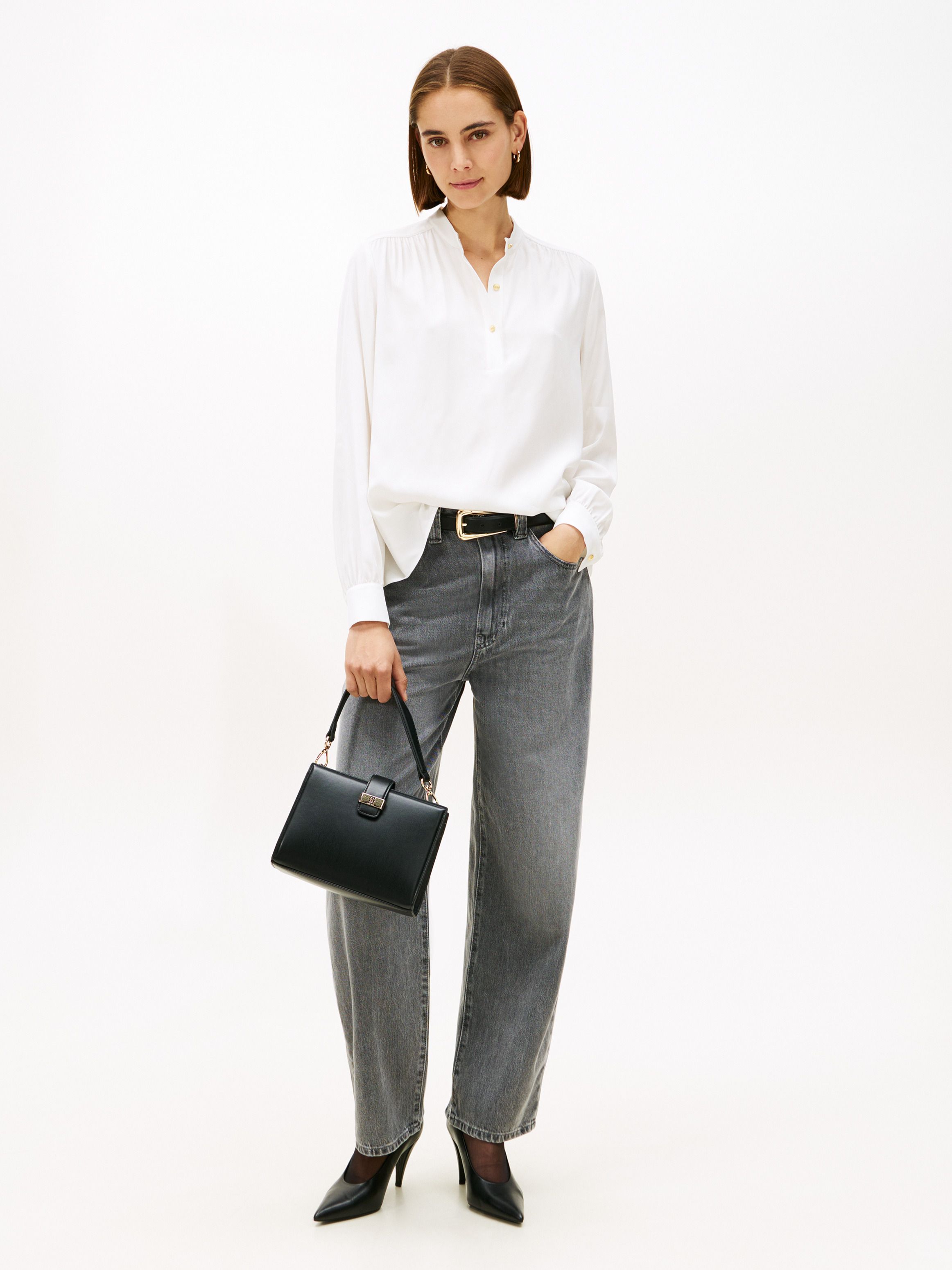 • Gold-Tone Button Relaxed Twill Blouse