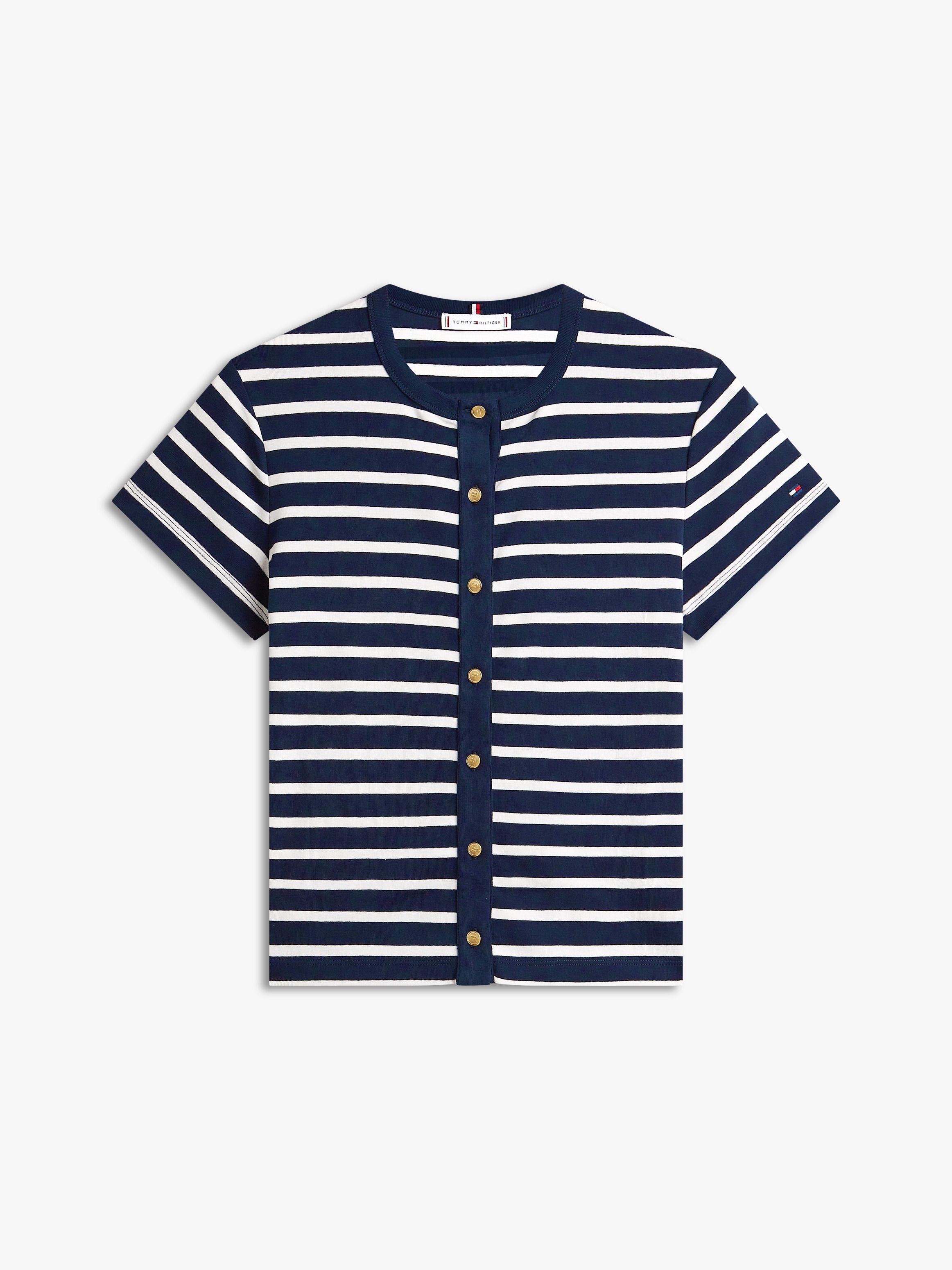 Add a luxe touch to your look with this slim-fit T-shirt, elevated with chic gold-tone buttons, each featuring embossed flag detailing.