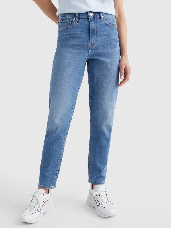 • Stretch cotton denim • Fading on waist, knees, thighs and back • Tommy Hilfiger branding • Tommy Hilfiger flag embroidery on back