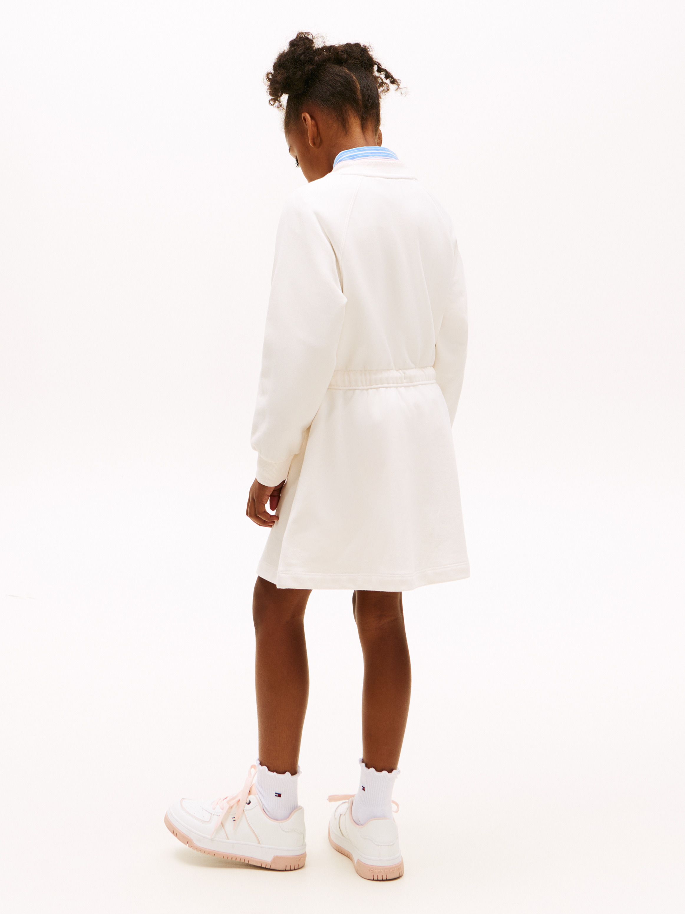 This comfy sweatshirt dress features sweet heart logo embroidery and a contemporary drawstring waist to enhance the silhouette.