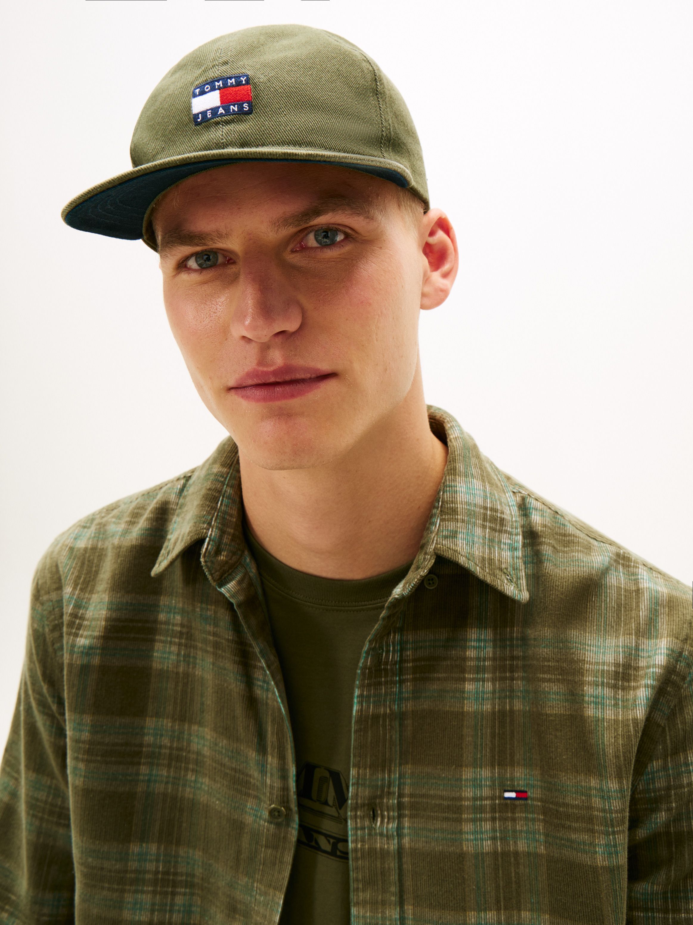 • Pure brushed cotton twill • Washed finish • Button on crown • Ventilation eyelets • Textured stitching on brim • Metal adjuster on back • Tommy badge embossed on adjuster • Tommy badge on front • Tommy Jeans logo embroidery on back • Tommy Jeans branding