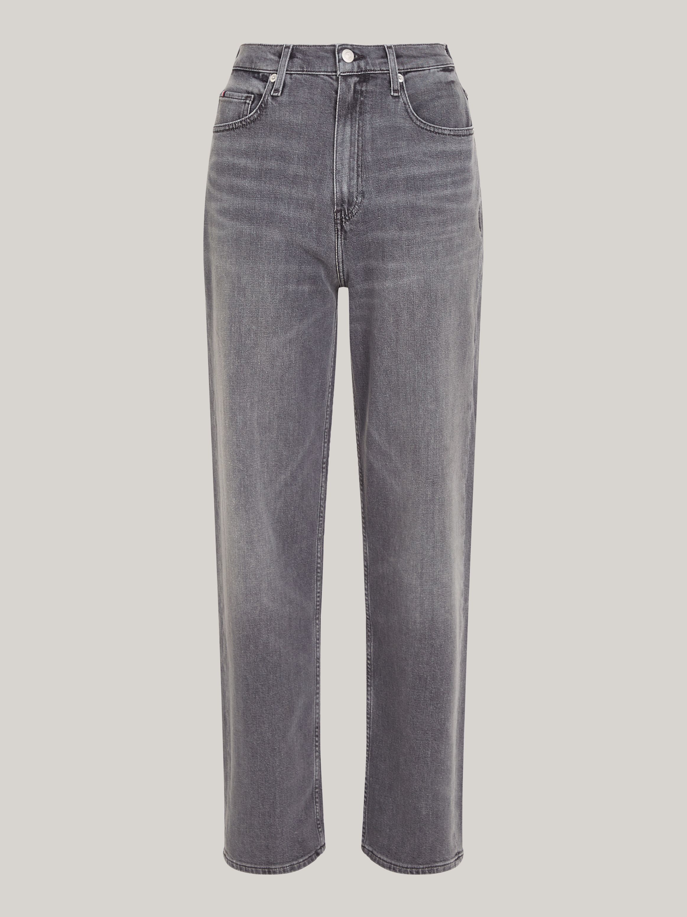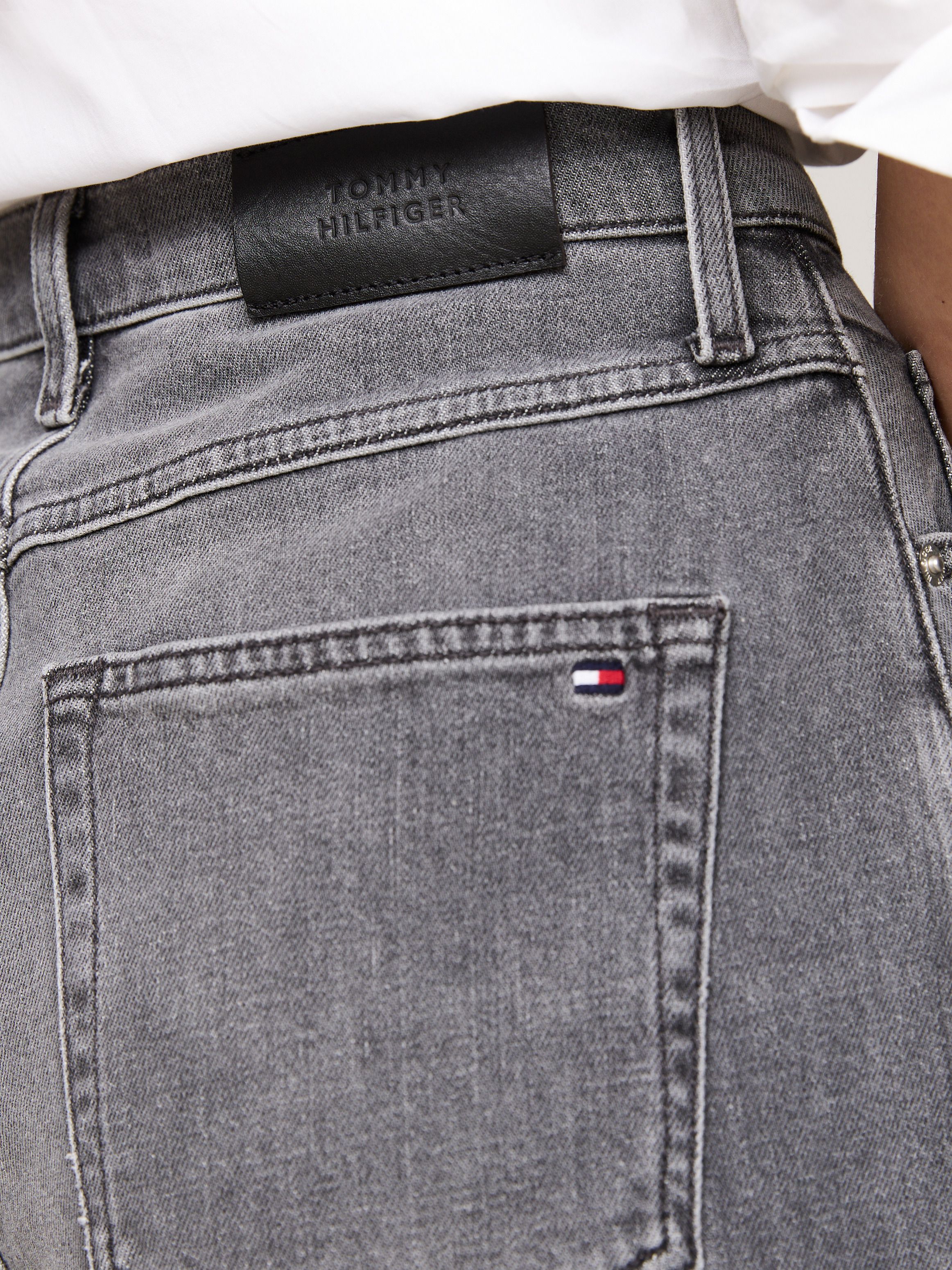 • Stretch cotton blend denim • Sourced with the Better Cotton Initiative • All-over fading • Whiskering on front • Zip with button closure • Five-pocket styling • Tommy Hilfiger branding • Tommy Hilfiger flag embroidery on back