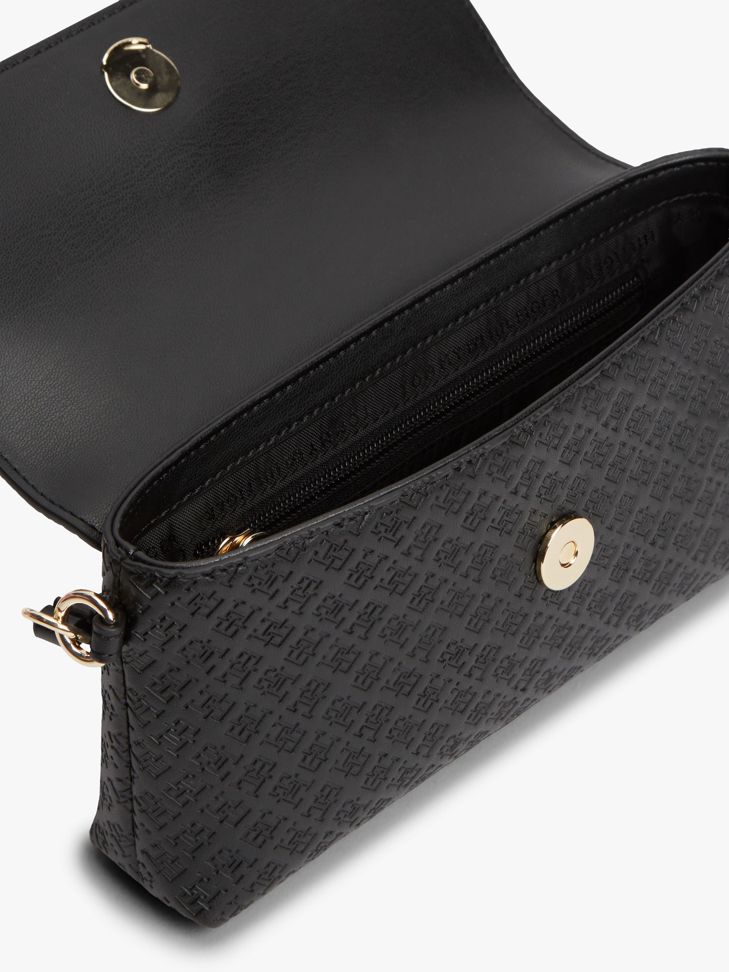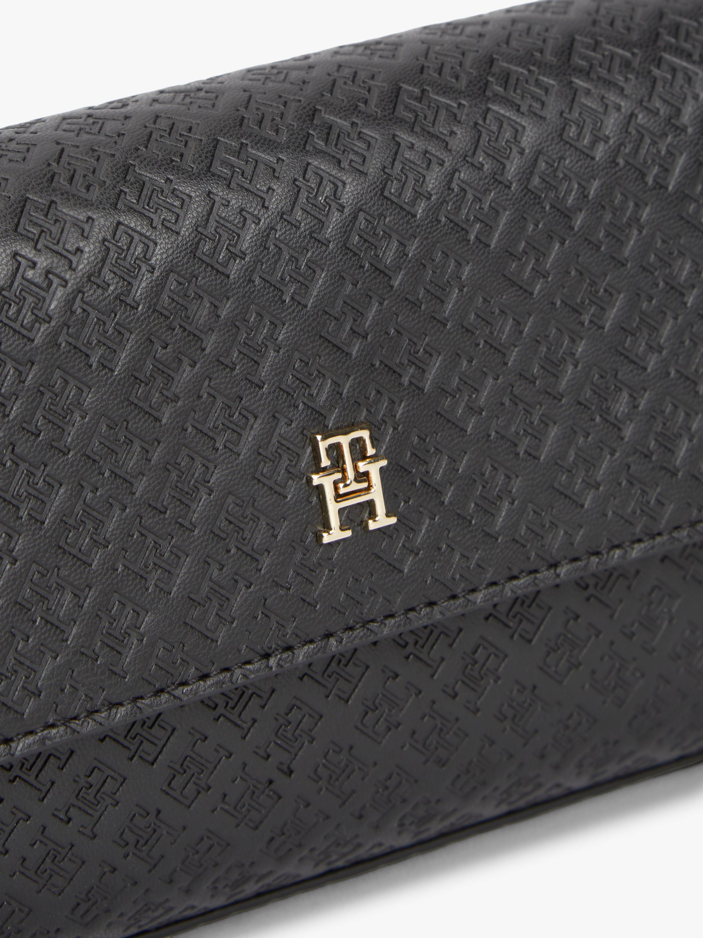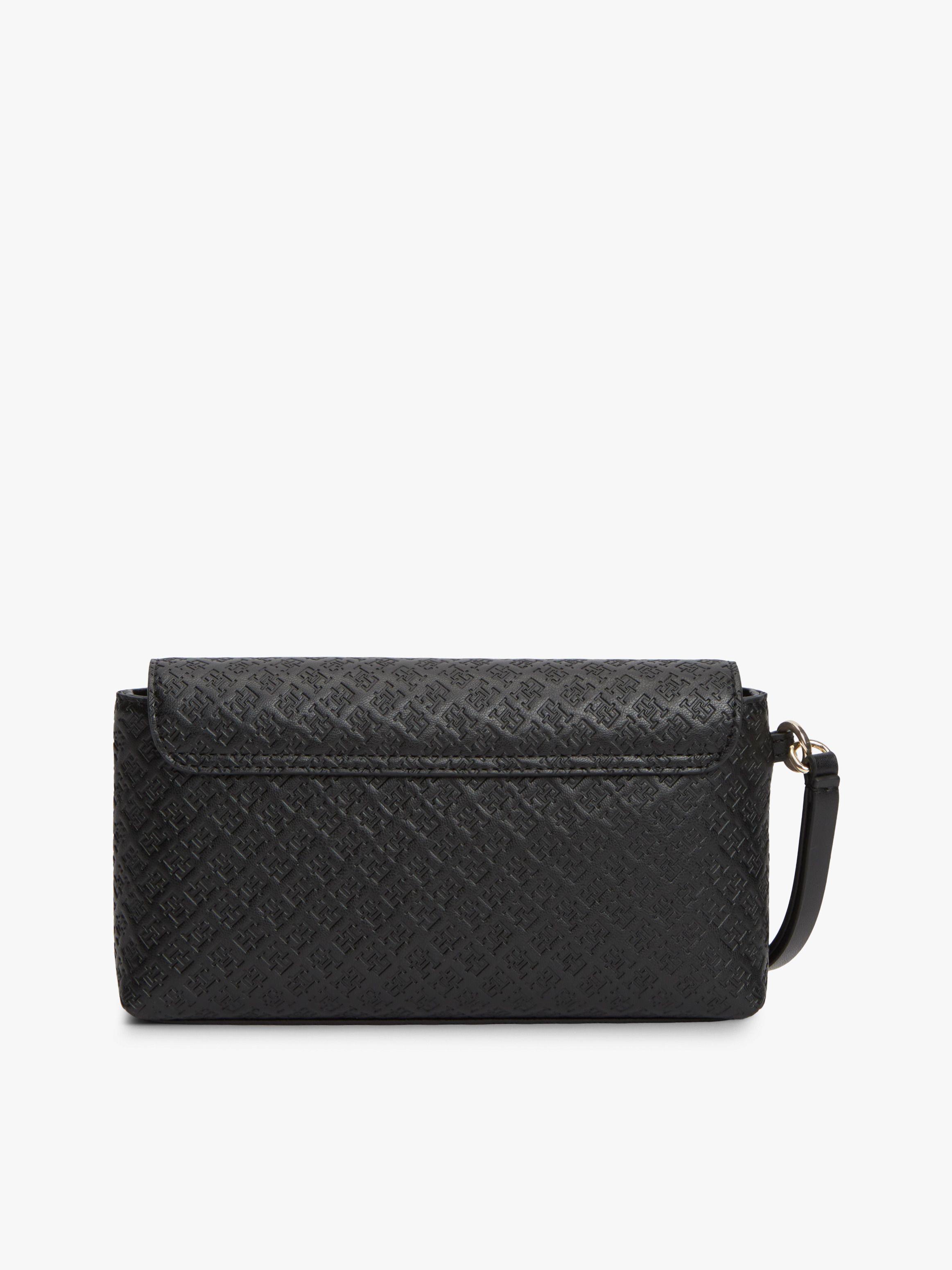 • Textured finish • All-over debossed TH monogram pattern • Magnetic flap closure • Wrist strap • One main compartment • One interior zipped pocket • TH monogram plaque on front • Tommy Hilfiger branding