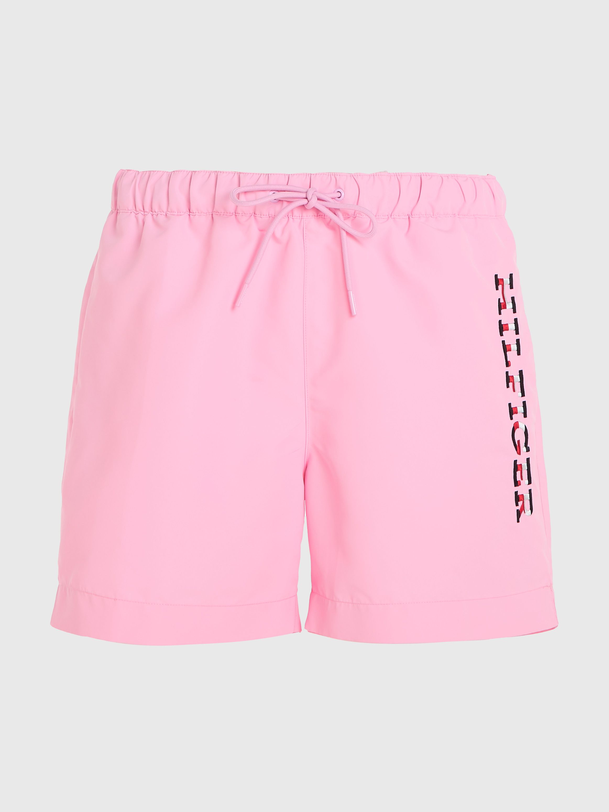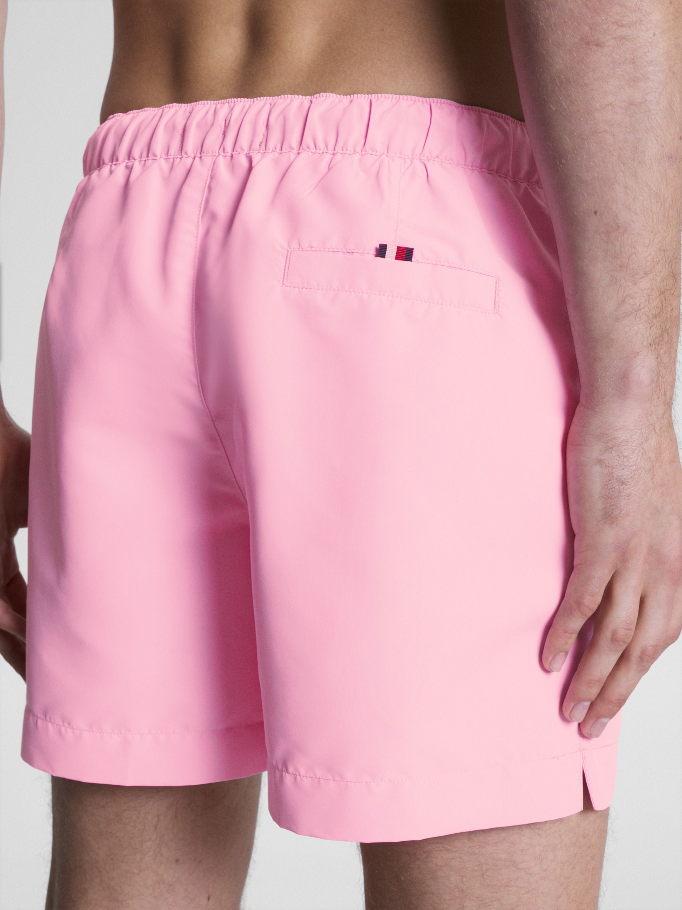 • Recycled polyester swim fabric • Elasticated drawstring waist • One back welt pocket • Tommy Hilfiger branding • Tommy Hilfiger flag embroidery on side