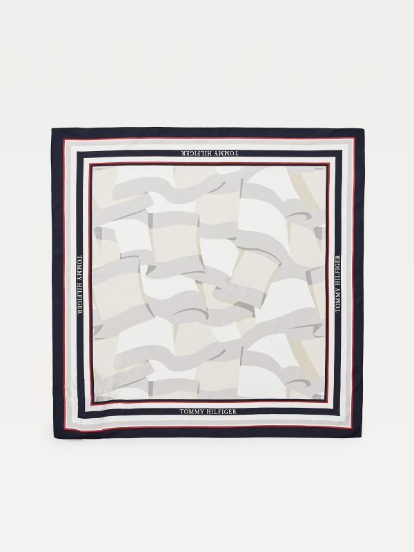 A silk bandana with a twist, this scarf has a tonal motion flag print in the centre and the Tommy Hilfiger logo.