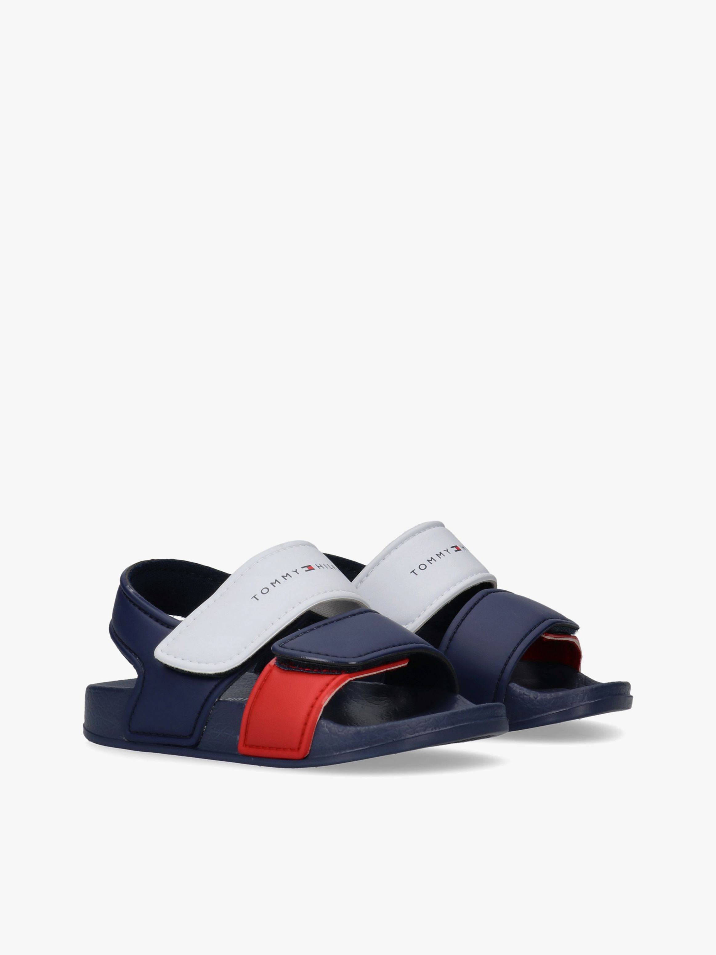 A sporty take on summer essentials. These kids’ pool sandals combine a classic color block design with double velcro straps and a lightweight molded sole, finished with iconic Tommy Hilfiger details.