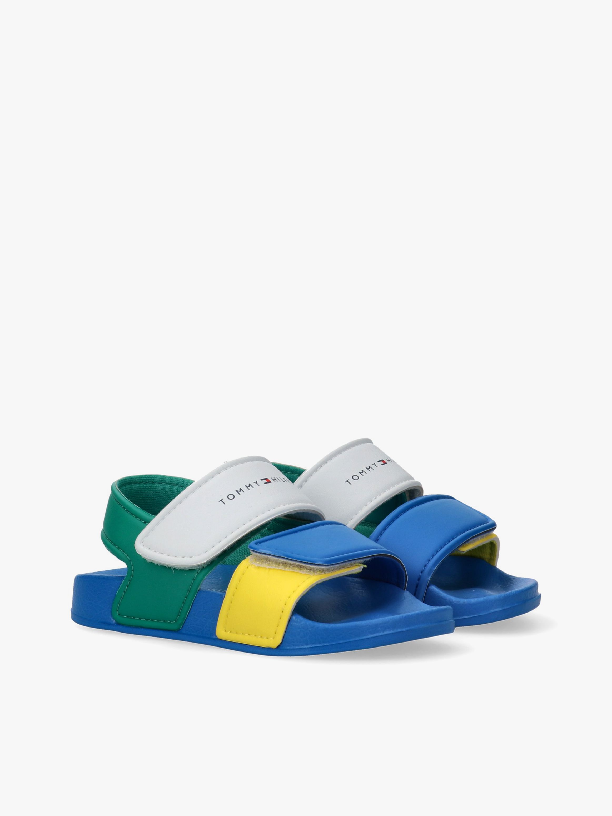 Designed for water-side adventures, these kids’ pool sandals feature a bold color block design, double velcro straps and a lightweight molded sole. Easy to wear and comfortable all day, finished with Tommy Hilfiger branding.