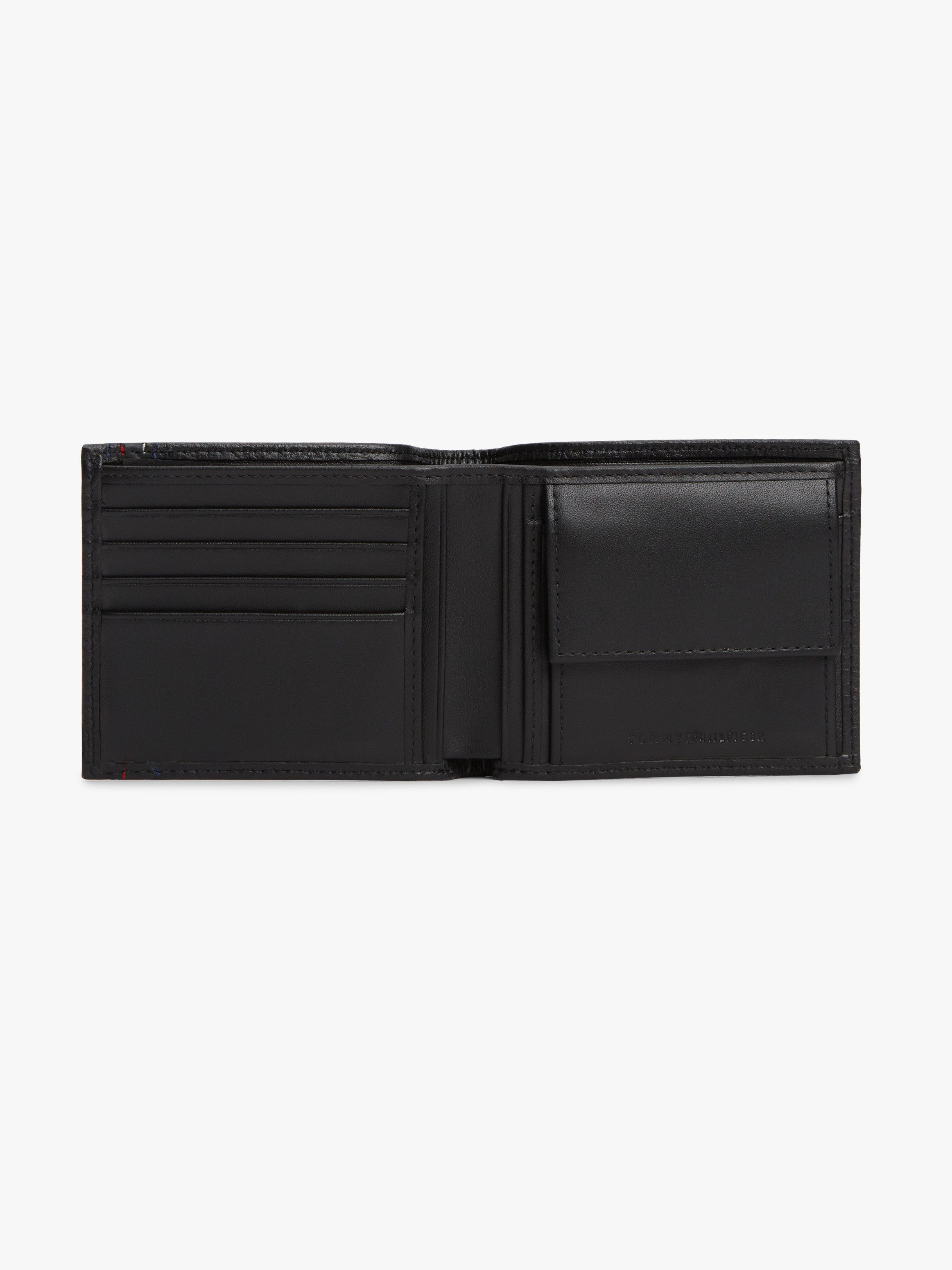 Upgrade your everyday accessories with this leather bifold card and coin holder, featuring a timeless pebble-grain finish and signature detailing.