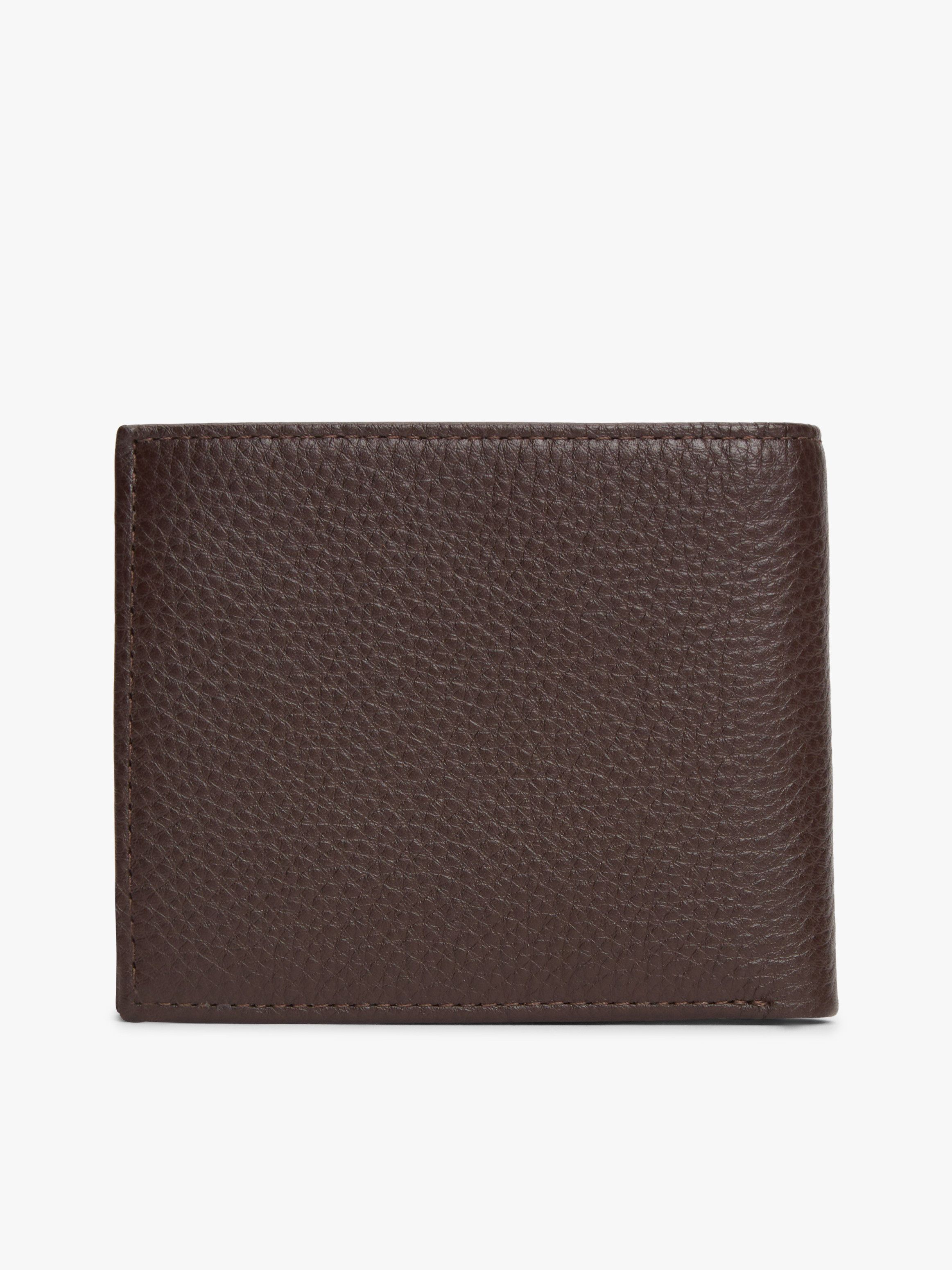 Upgrade your everyday accessories with this leather bifold card and coin holder, featuring a timeless pebble-grain finish and signature detailing.