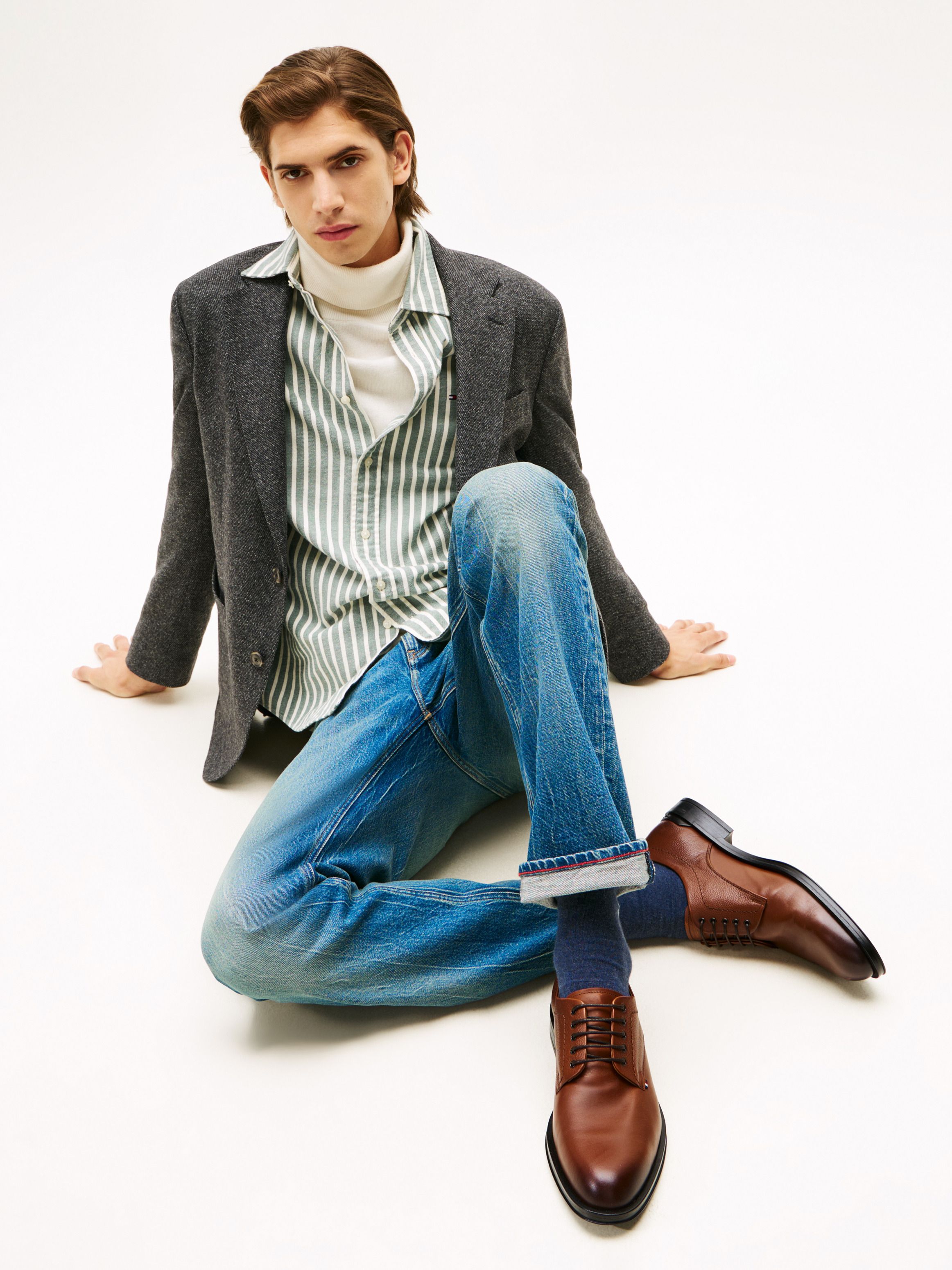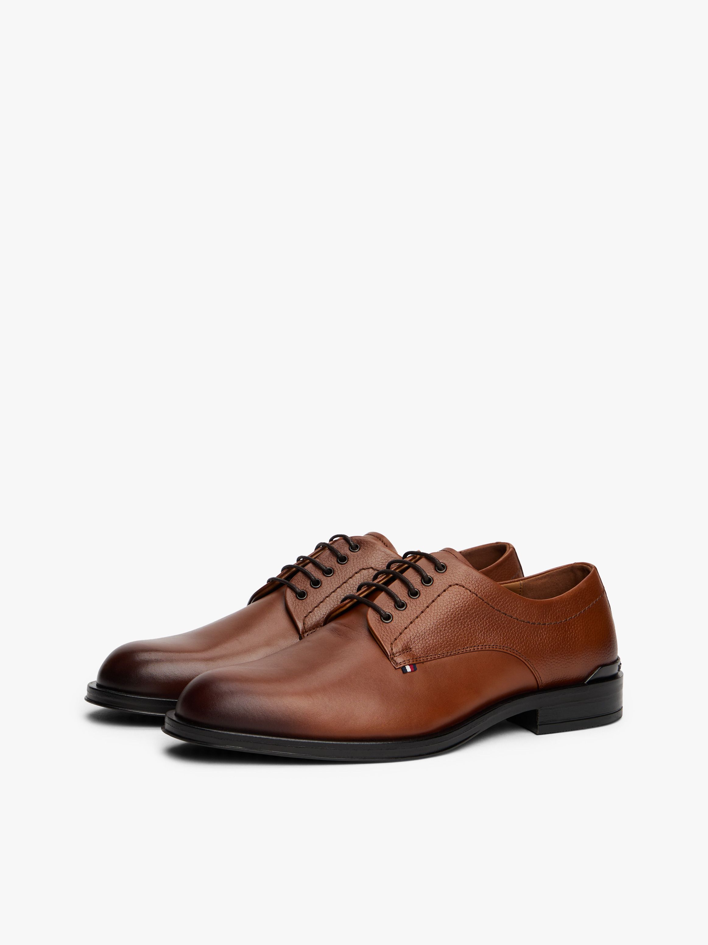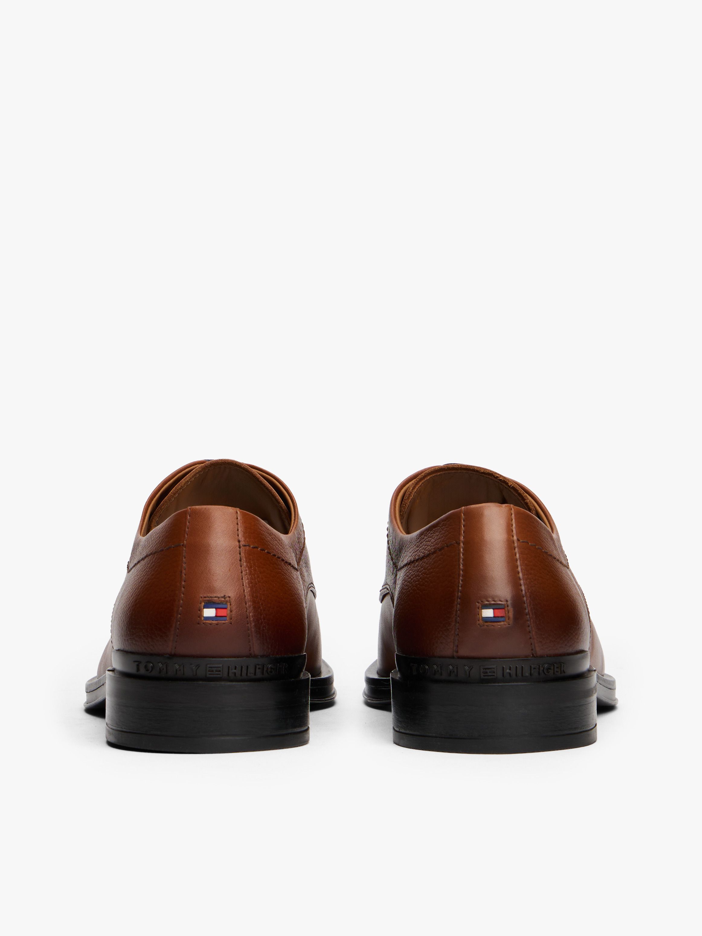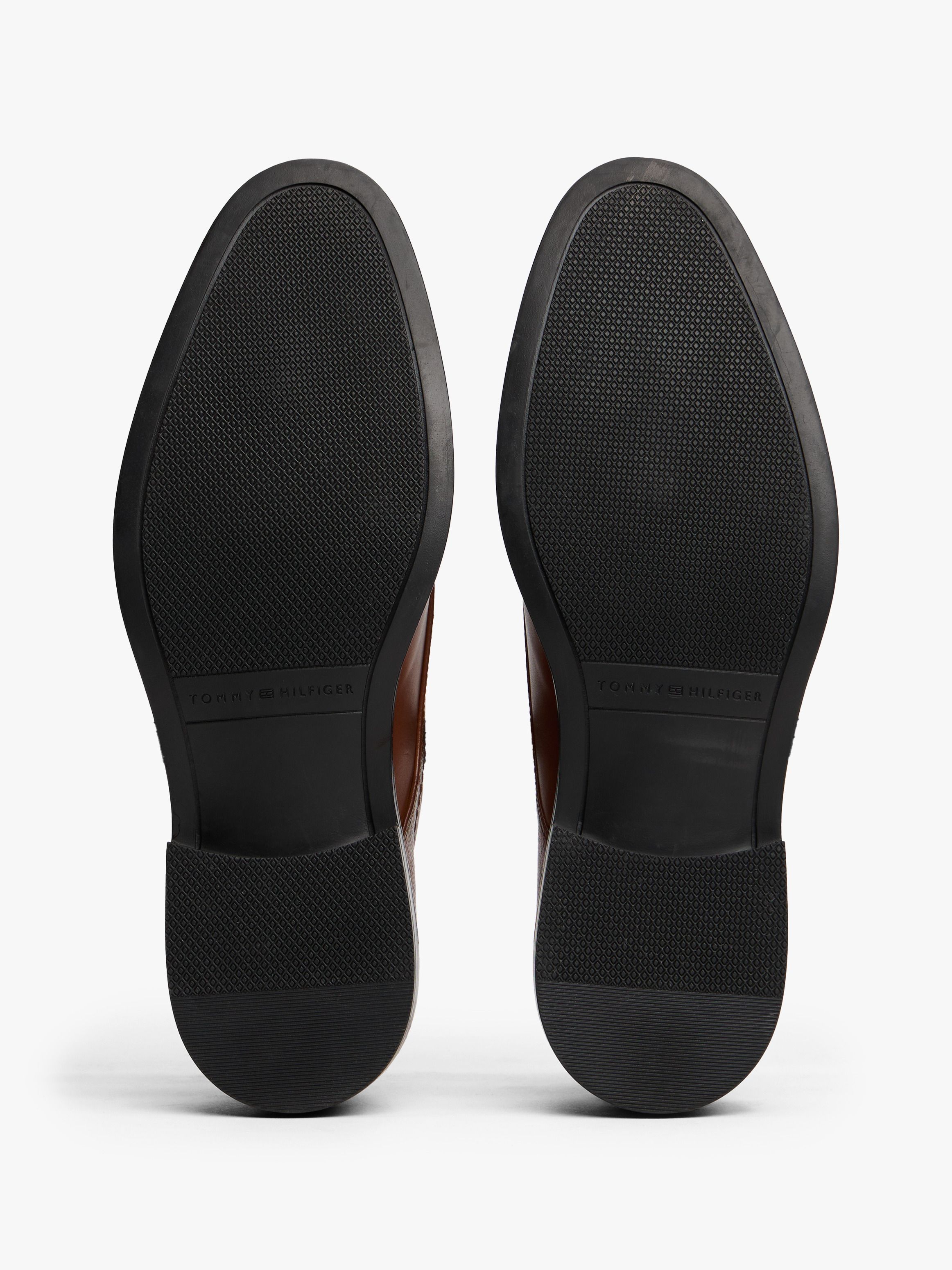 • Leather upper • Leather lining • Polyurethane insock • Thermoplastic rubber, leather and paper outsole • Smooth finish • Pebble grain finish panel on upper • Signature detailing on side • Tommy Hilfiger logo embossed on midsole • Tommy Hilfiger branding