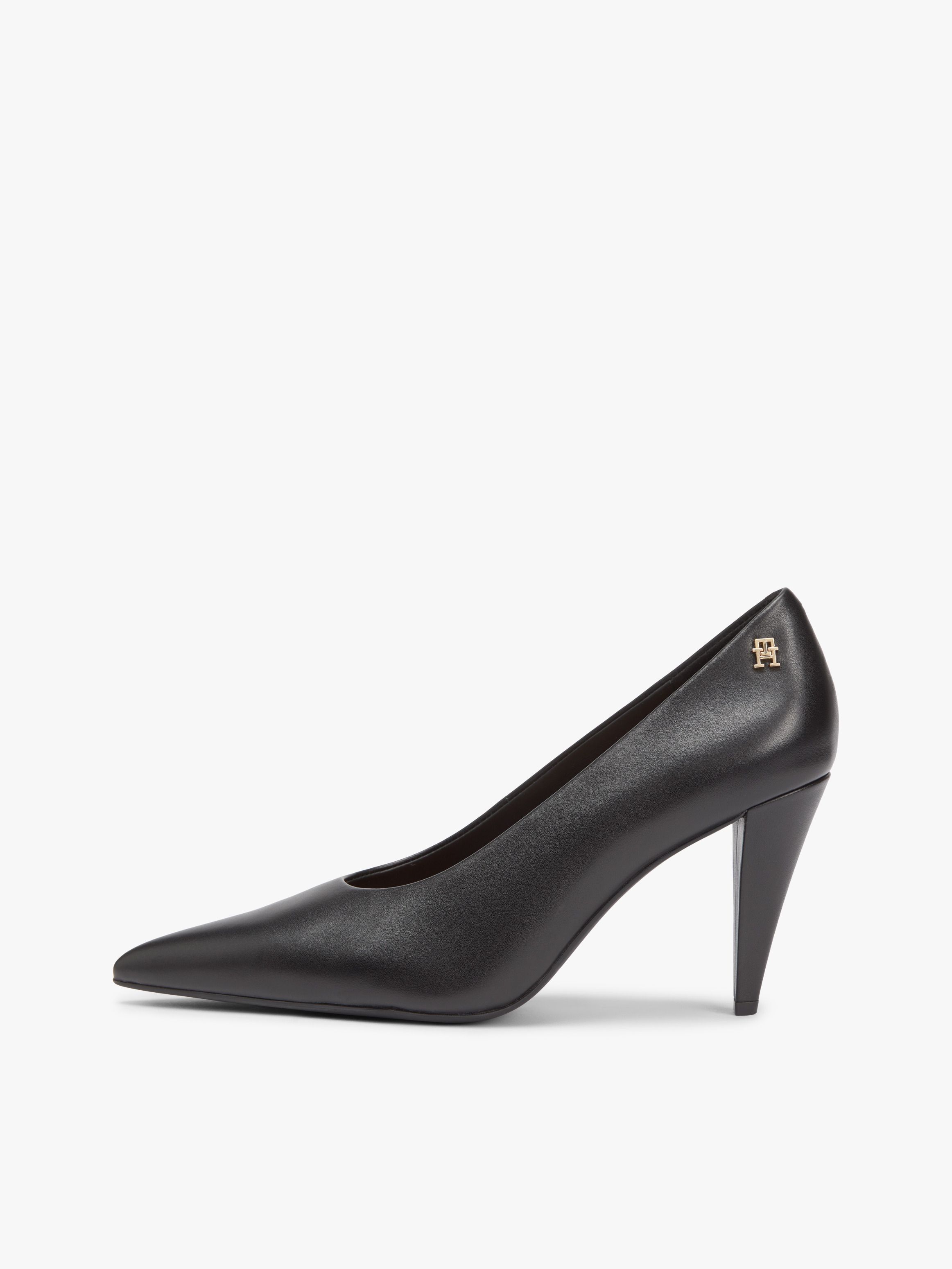 These smooth leather high heels with a feminine pointed toe and glinting TH monogram plaque will effortlessly elevate your favourite party outfits.