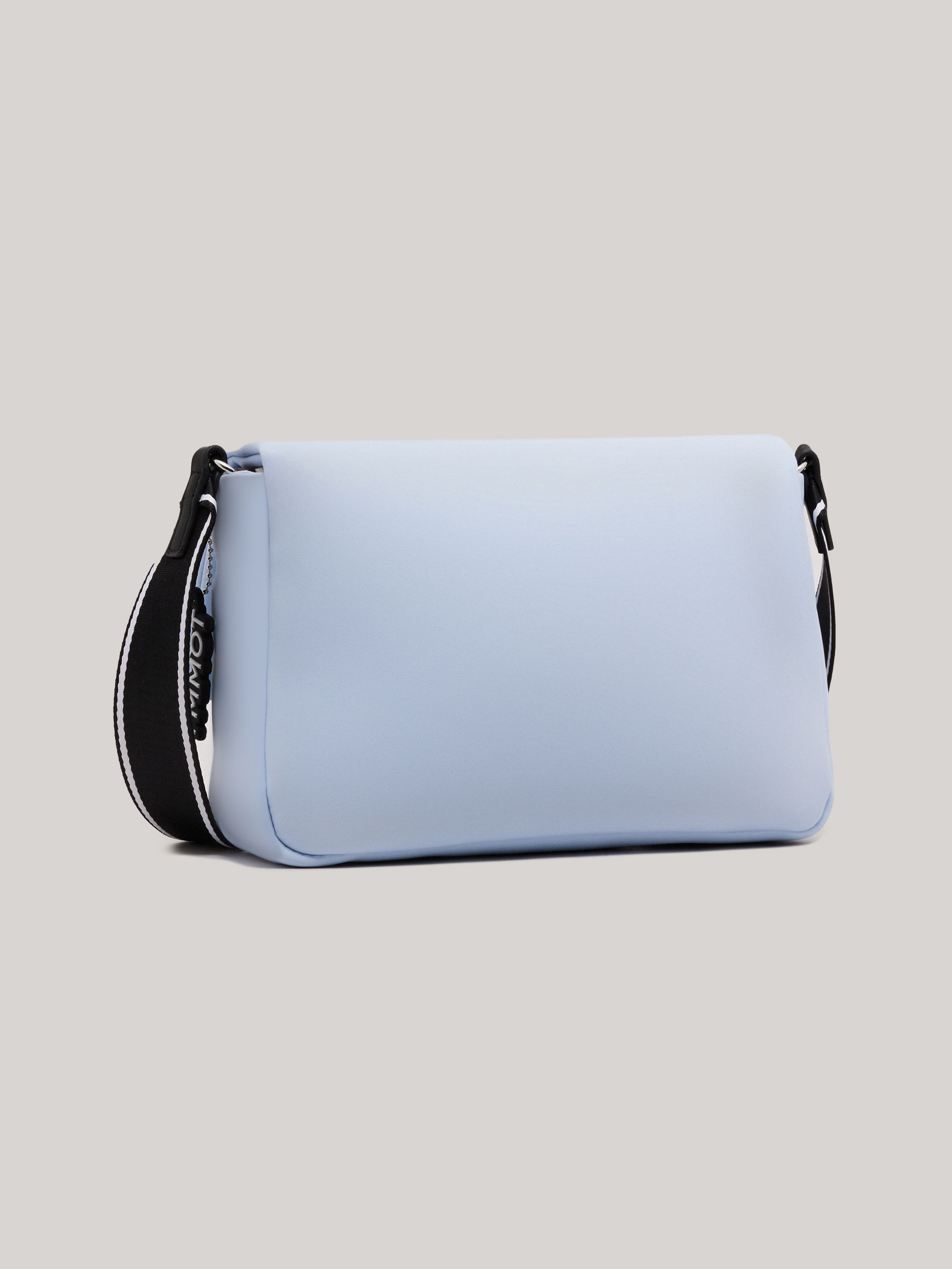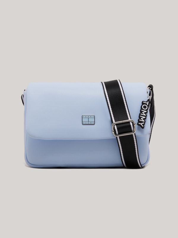 • Smooth finish • Flap closure • Adjustable crossover strap • Contrast stripes on strap • Tommy Jeans logo charm on strap • Tommy badge plaque on front • Tommy Jeans branding