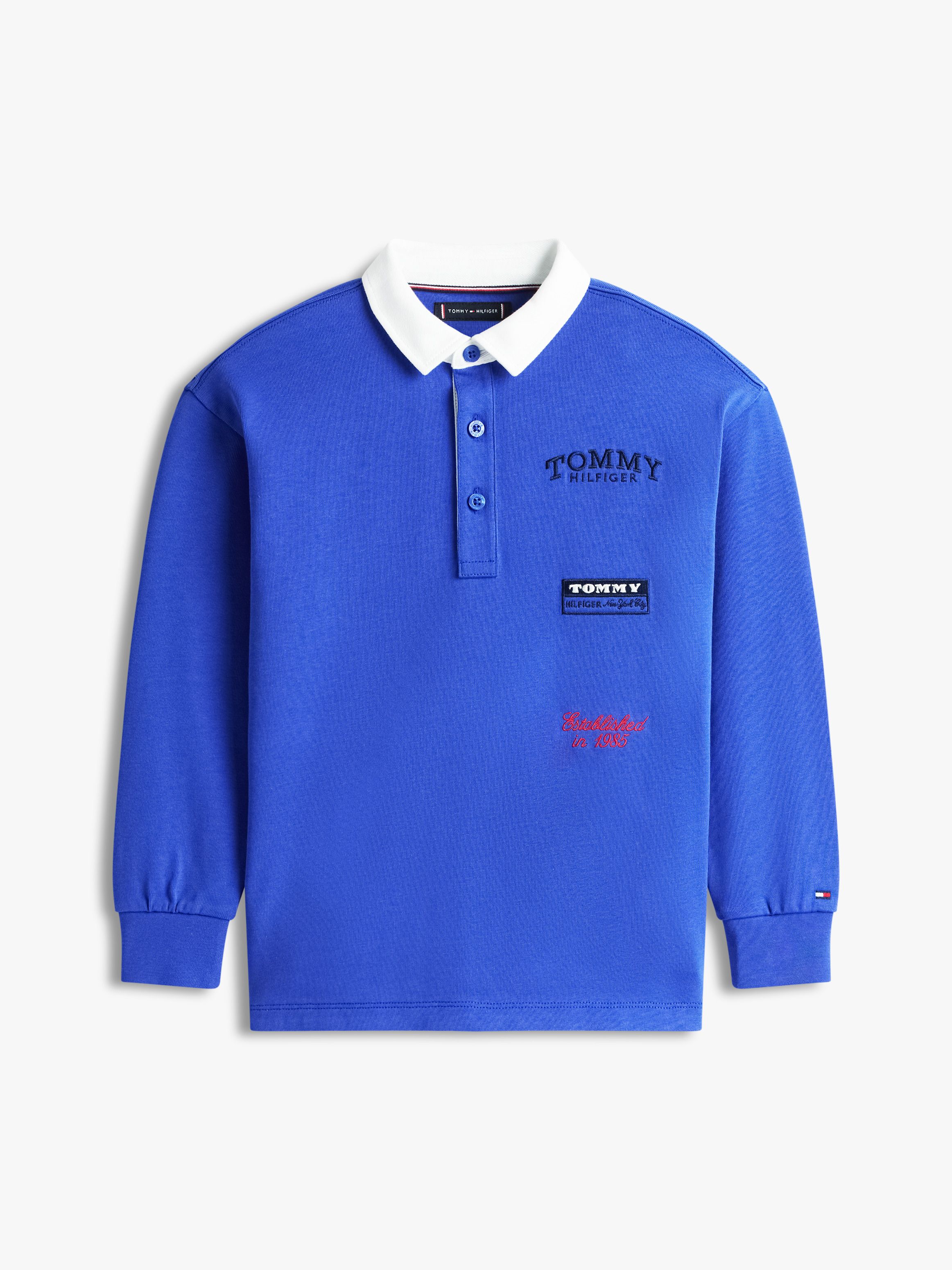 • Pure cotton jersey • Contrast polo collar • Three-button placket • Signature tape inside neckline • Tommy Hilfiger multi logo embroidery on front • Tommy Hilfiger branding • Tommy Hilfiger flag embroidery on sleeve