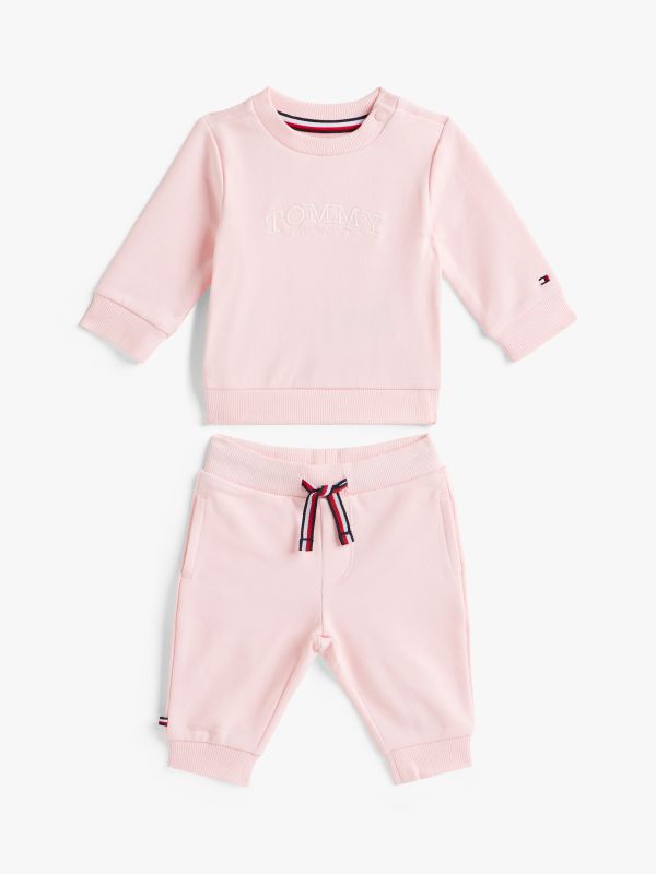 This stretch cotton terry set comprises a snuggly sweatshirt and coordinating joggers, each finished with playful signature details.