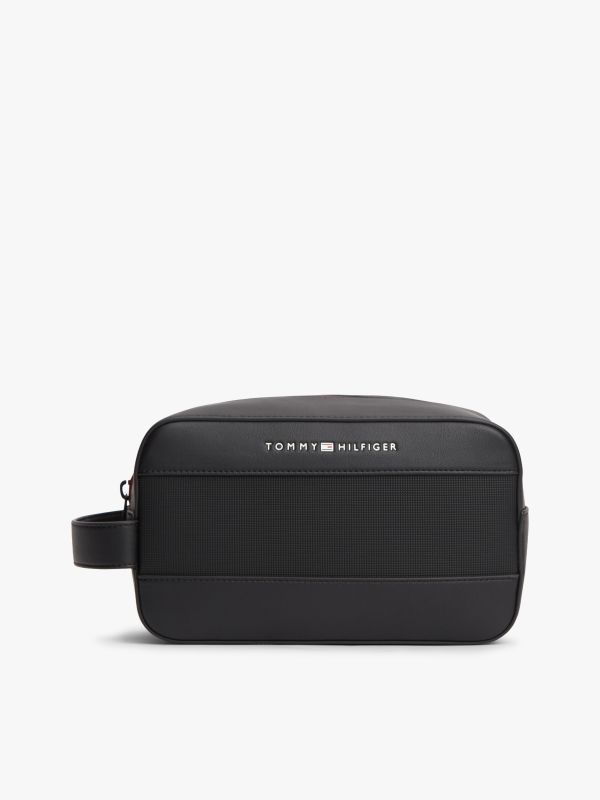 Keep your toiletries sorted in this zip-up washbag, featuring smooth and textured panels signed off by a metal logo.